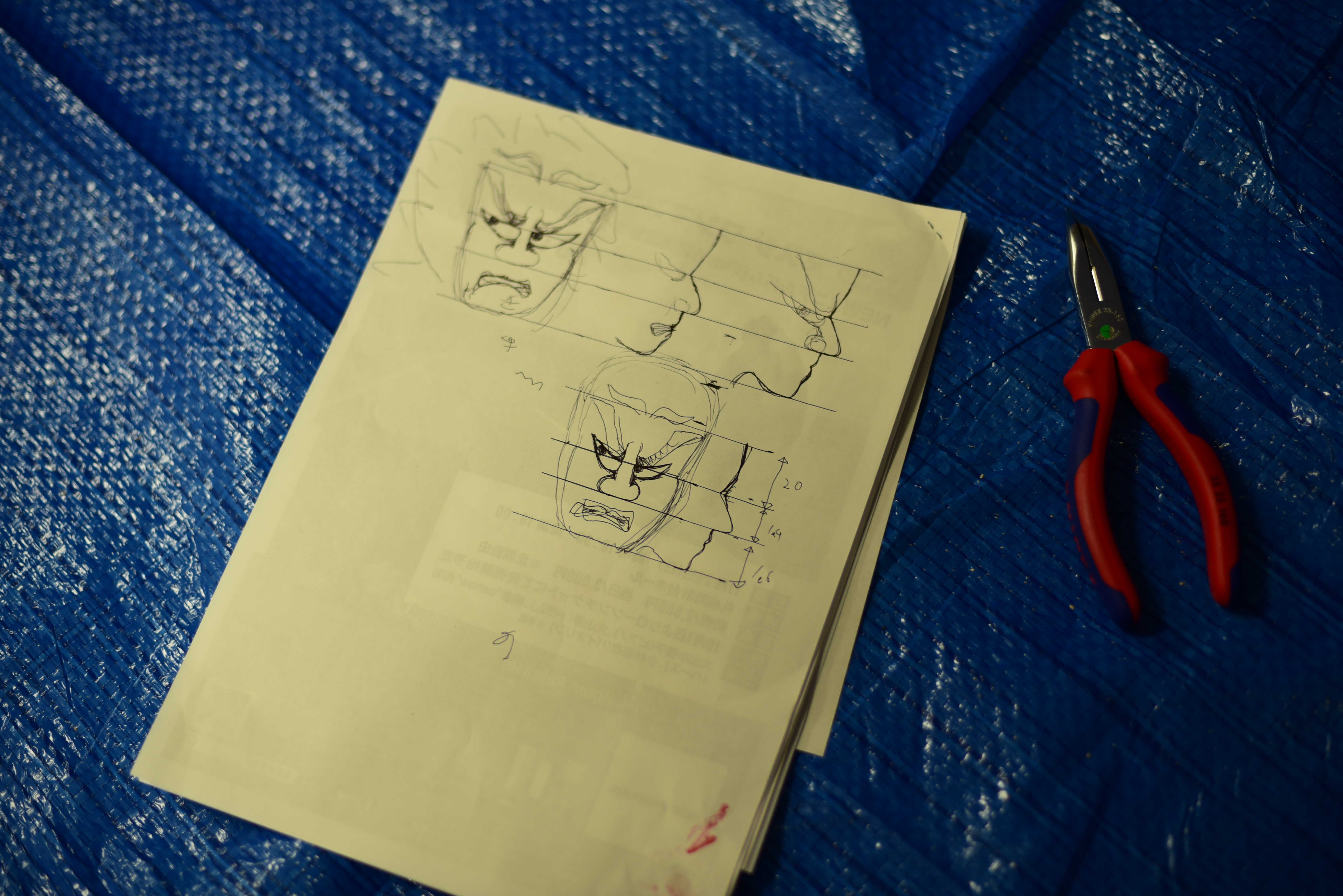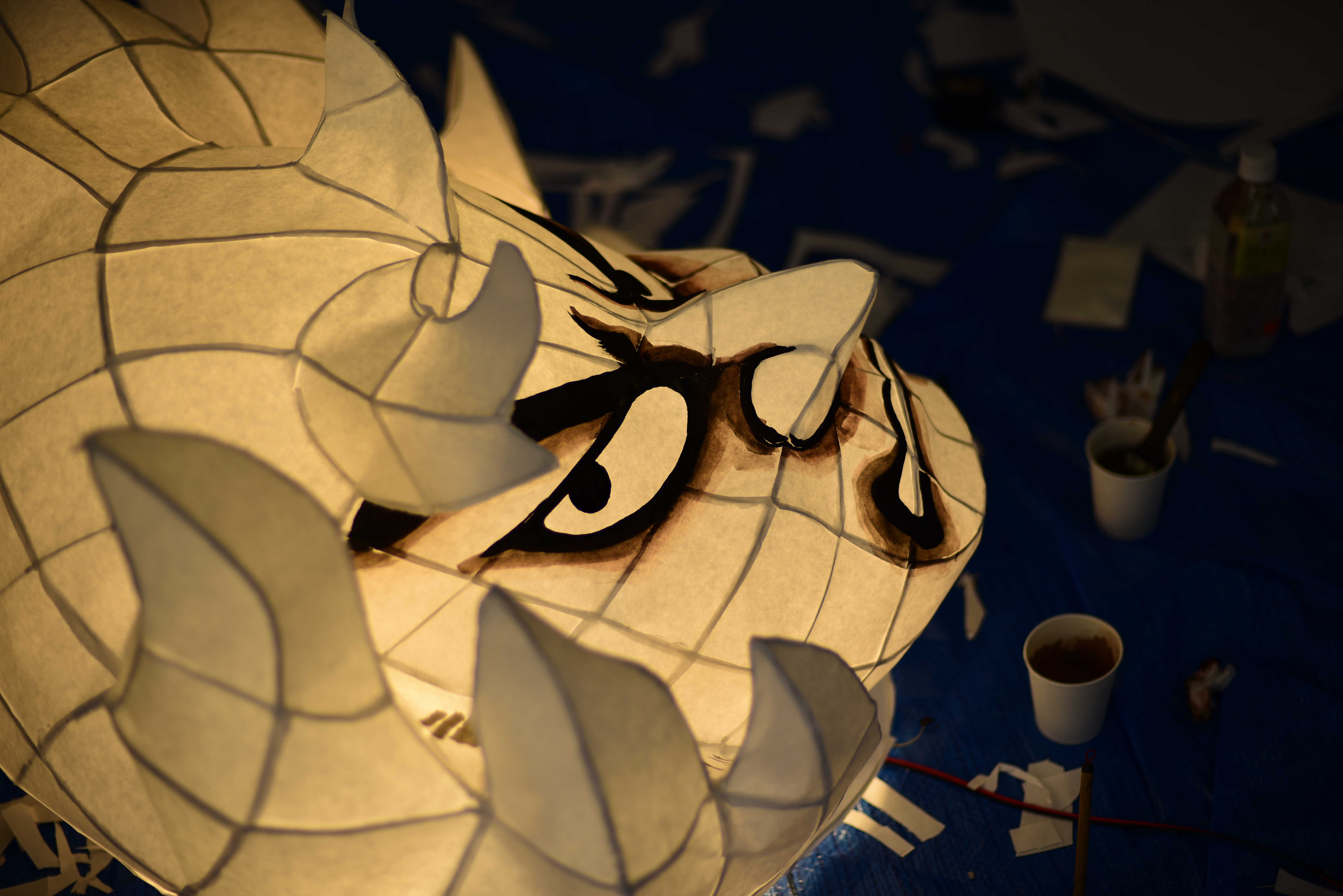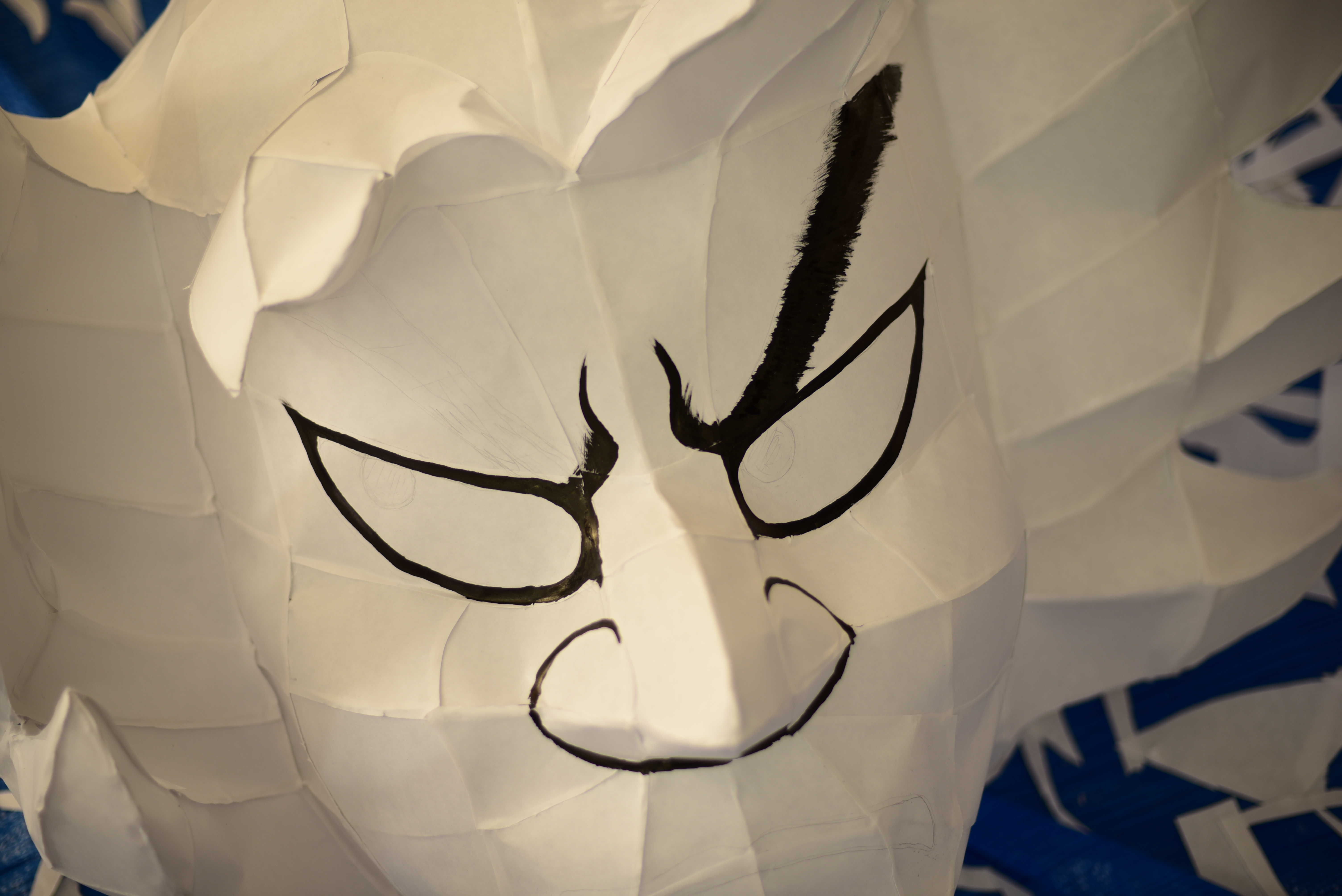 ……とする予定でしたが、2017年度の灯雪会で作った行灯『夜泣き蘇鉄』の人間 (森蘭丸) の顔の作り方を説明します。