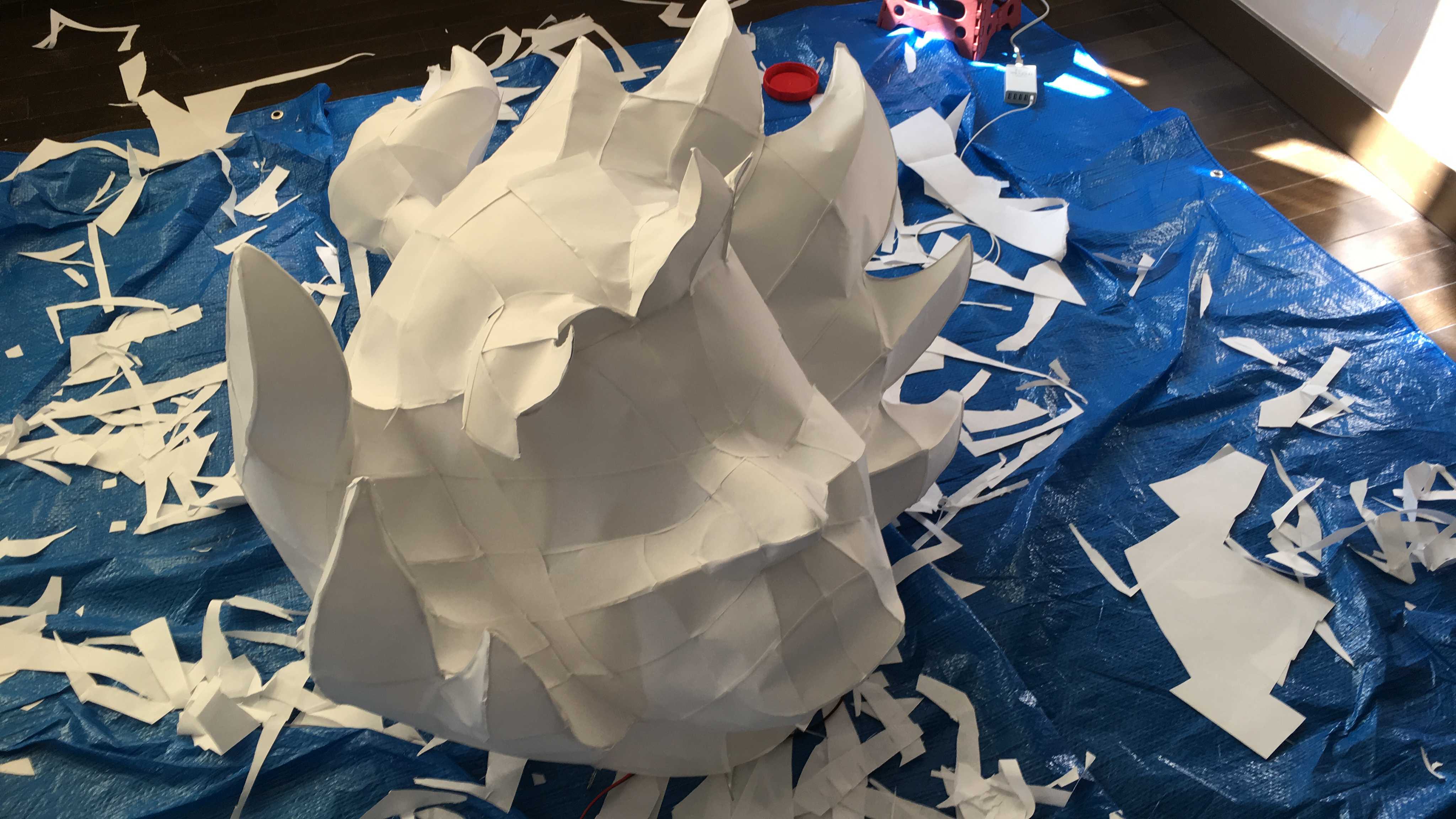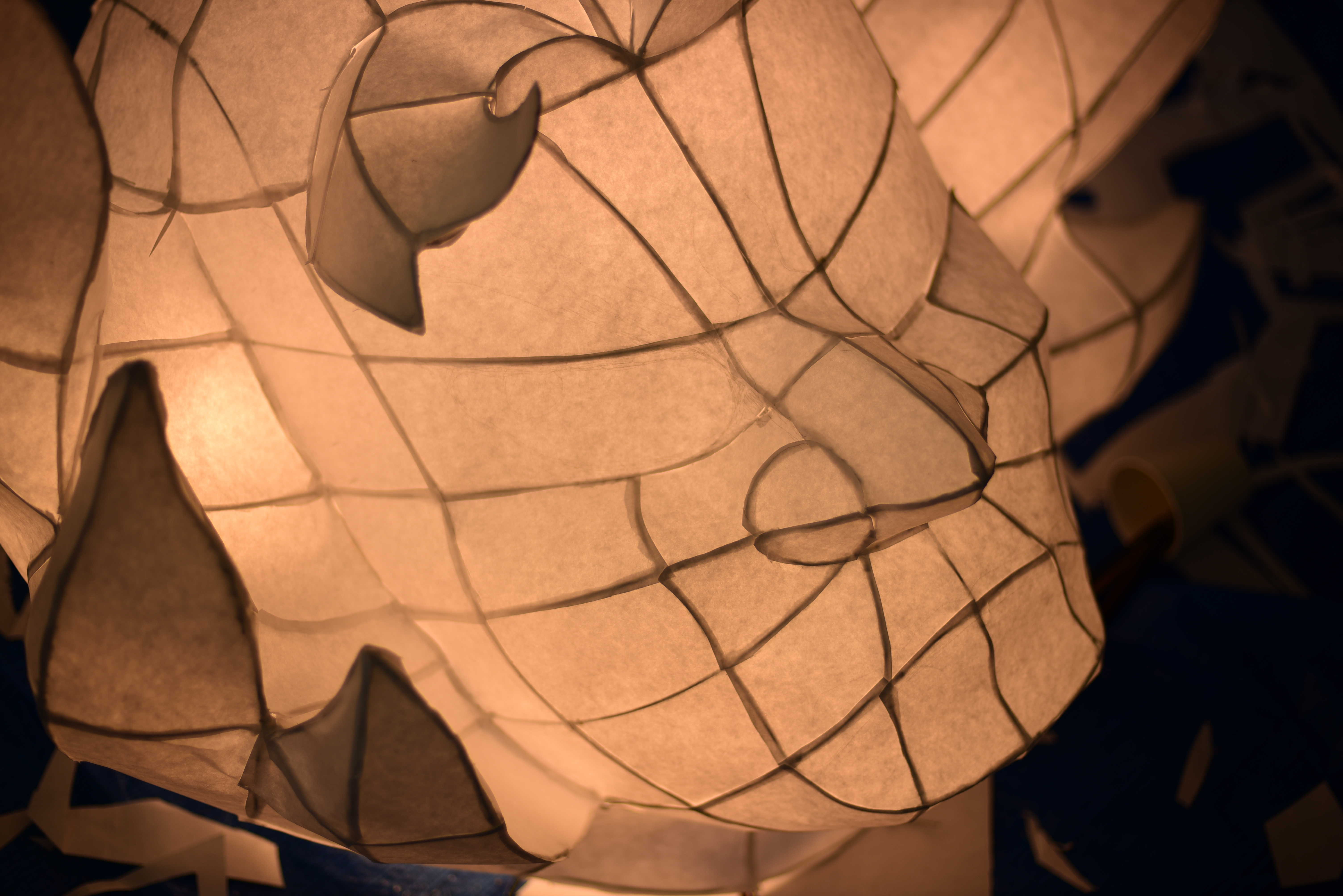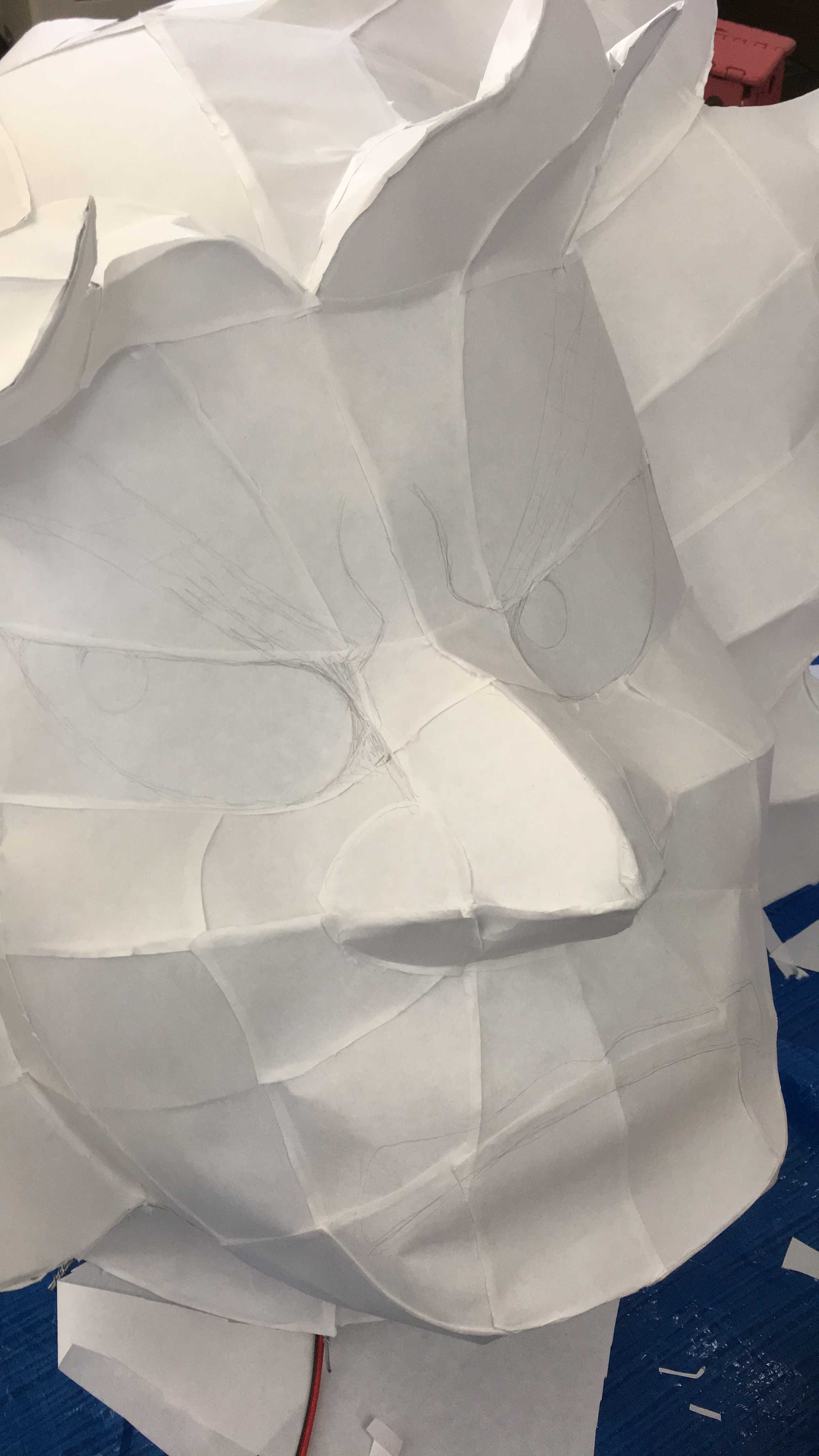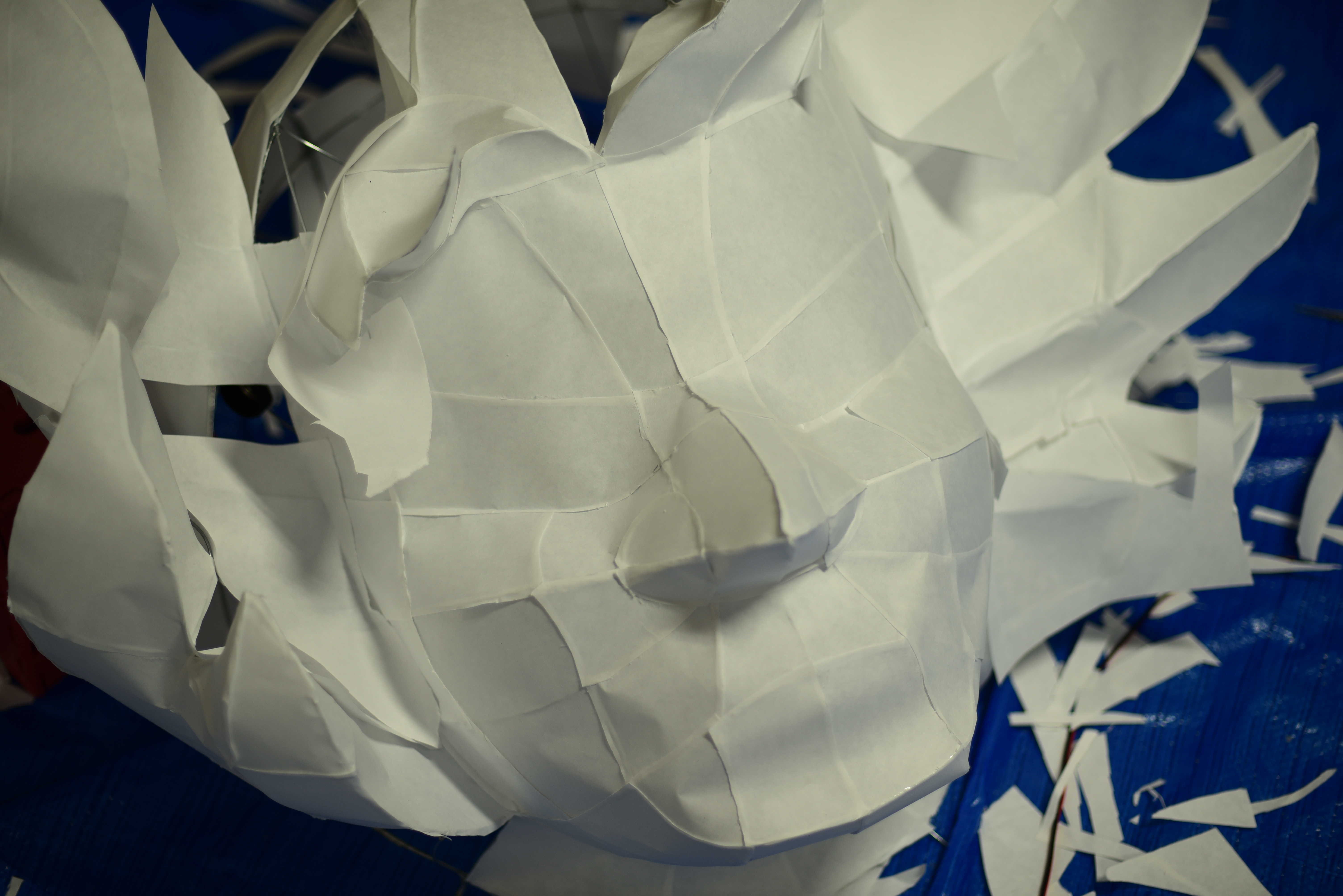 ……とする予定でしたが、2017年度の灯雪会で作った行灯『夜泣き蘇鉄』の人間 (森蘭丸) の顔の作り方を説明します。