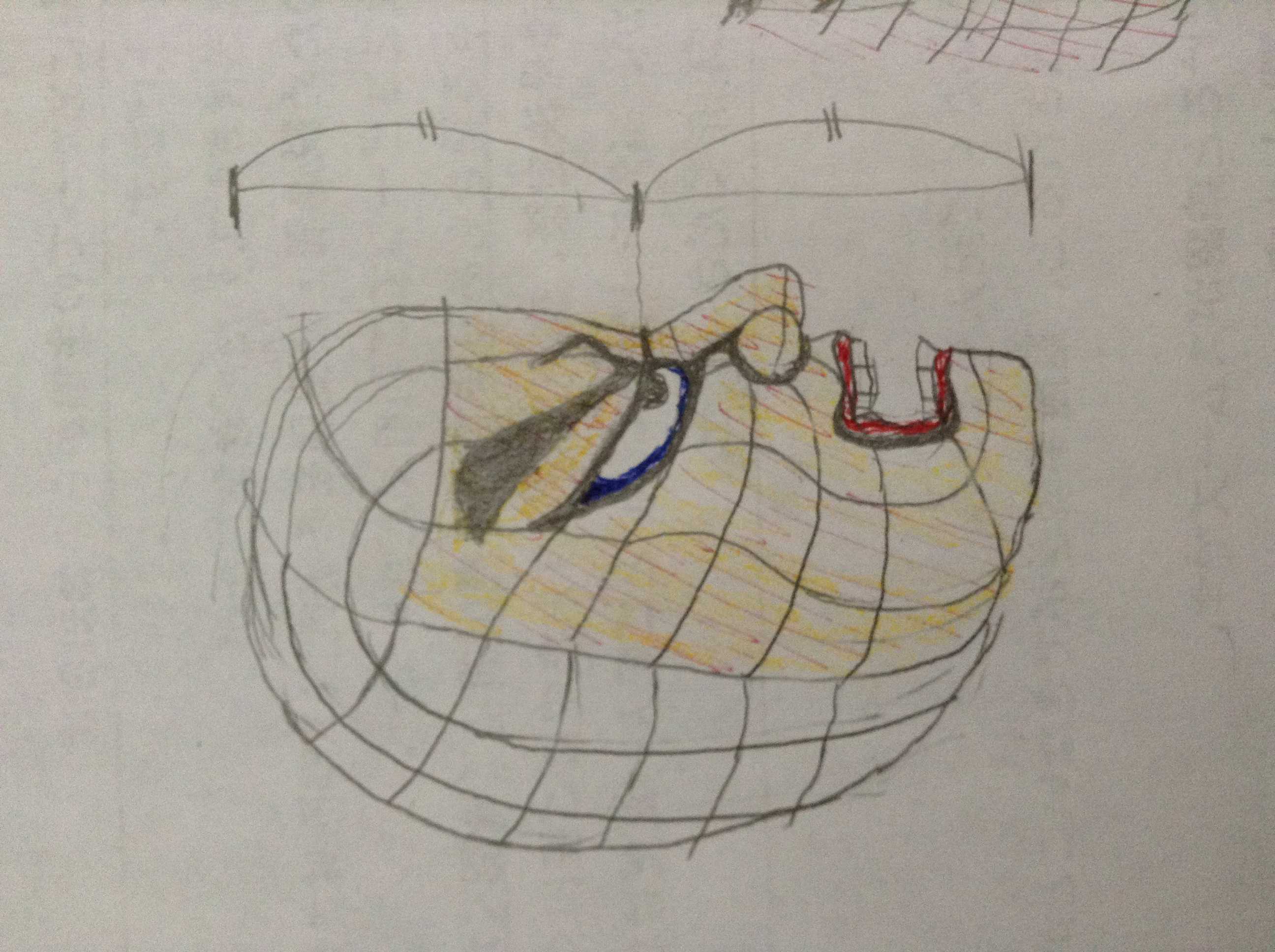 まずは面の下書きします。↓すこし見づらいですが鉛筆で下書きされています。