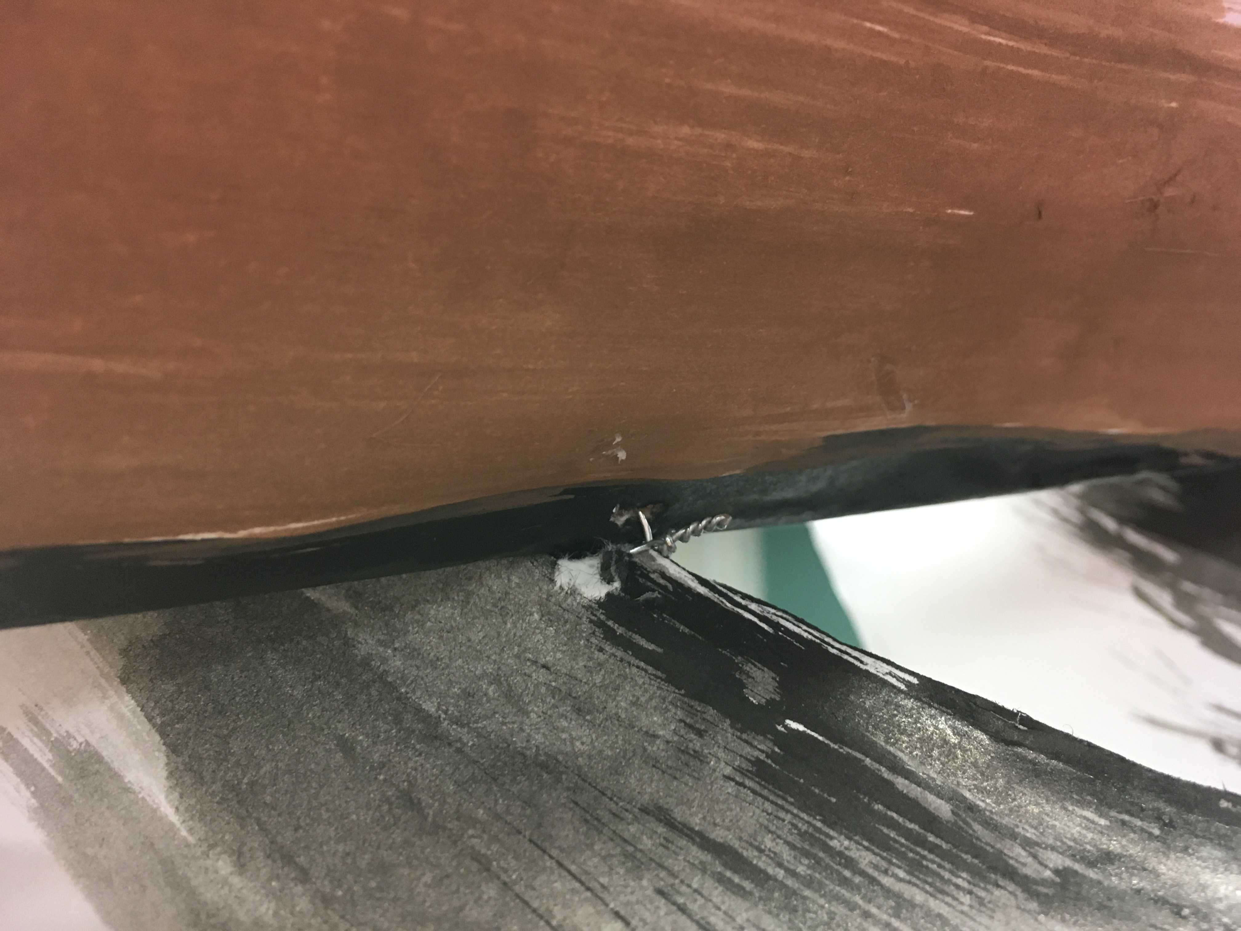 濃い茶色で塗ります。今回は茶色の色をミスりました…… (薄い気がする)。竹浪比呂央さんはニッカーポスターカラーのバントアンバーらしいので、素直にそれを使えばよかったのですが、なんでもいいかなと思いガッシュのこげ茶色でやってしまいました。