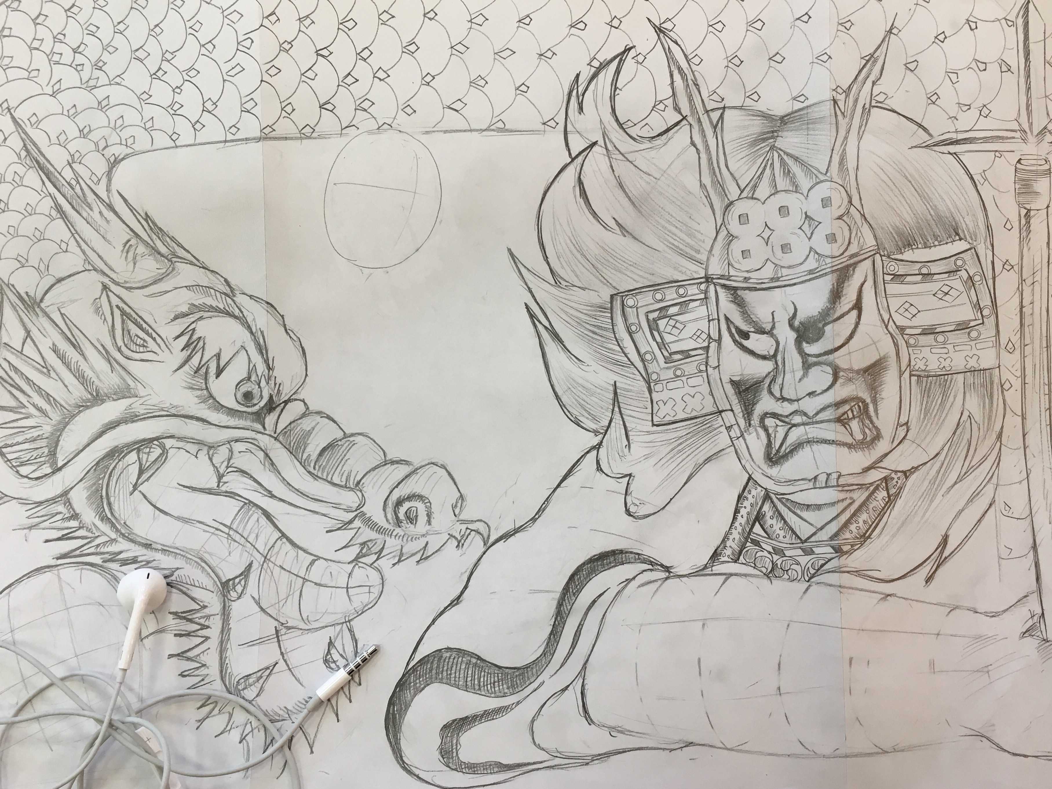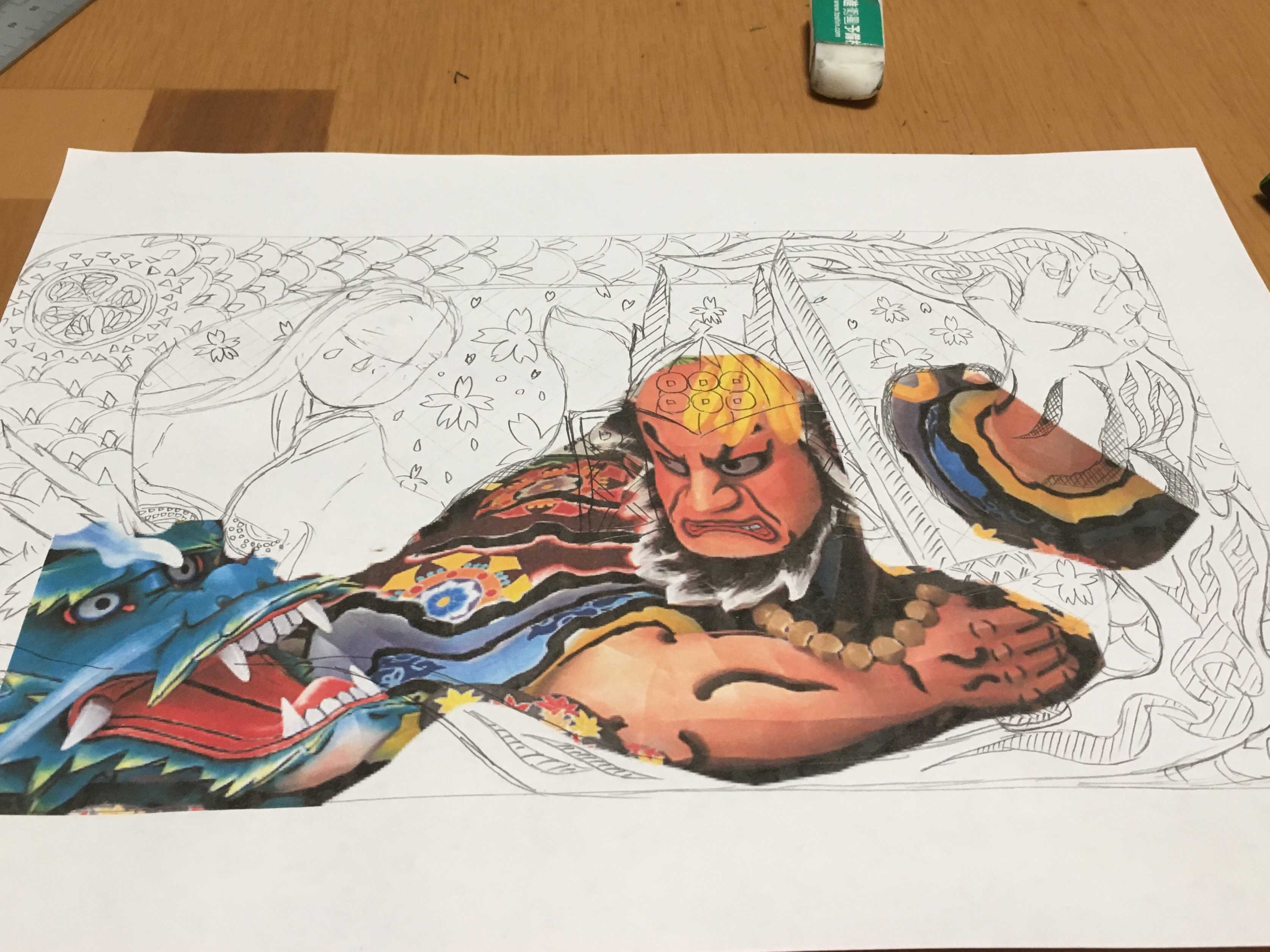 行責になったからには大賞を何が何でも勝ち取ってやる!と思い、「行灯職人への道」「ねぶた」の画像を本当にたくさん漁りました。自分のお気に入りの写真はスクショしてねぶたアルバムを作りました。ちなみに500枚くらいあると思います。そして、札駅のヨドバシカメラのマクドナルドで1日中ペンと紙を持って構図を考えました。