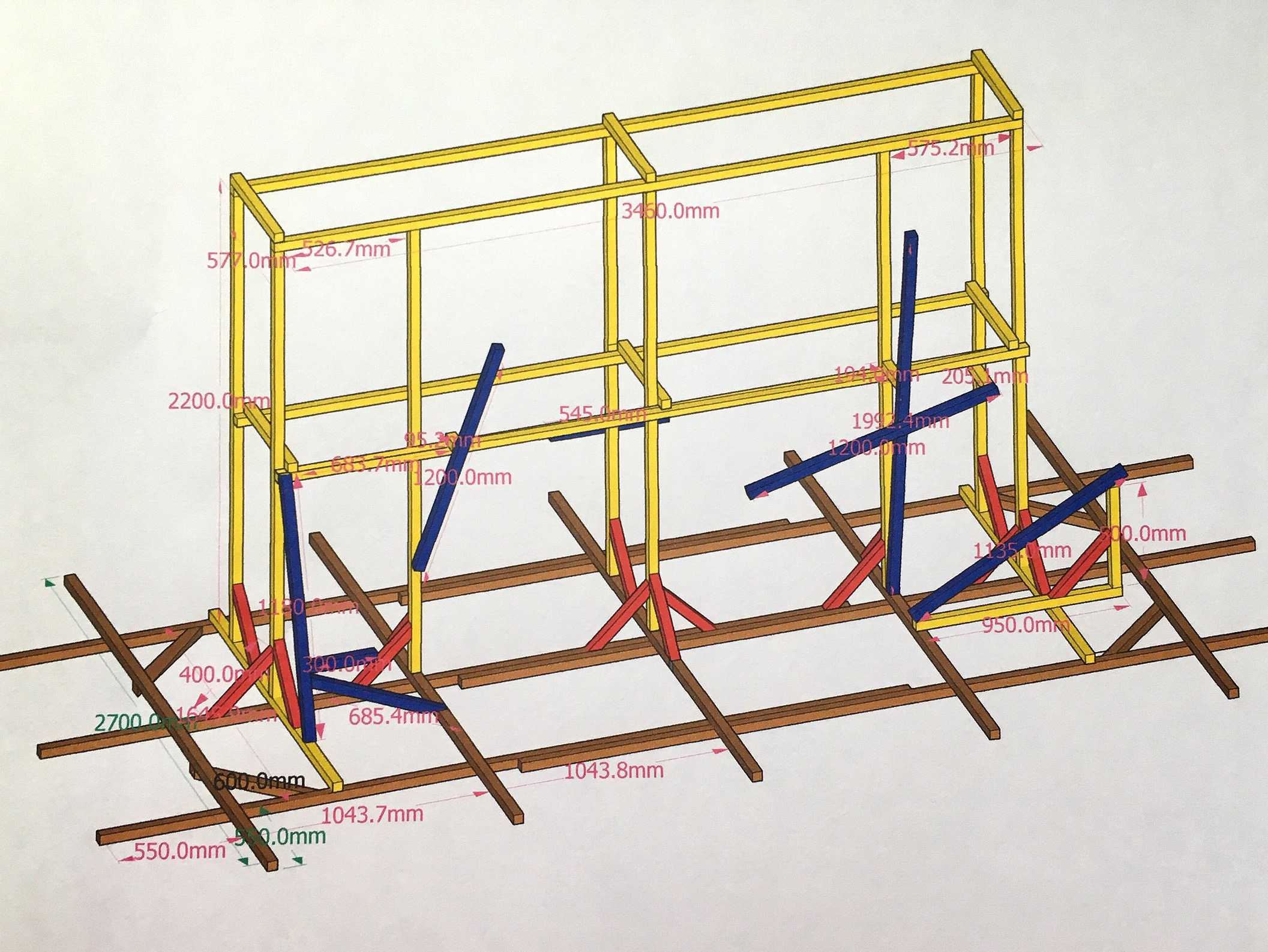 そこでクラスメイトの家から天井180㎝ほどの脚立3つを調達しました。