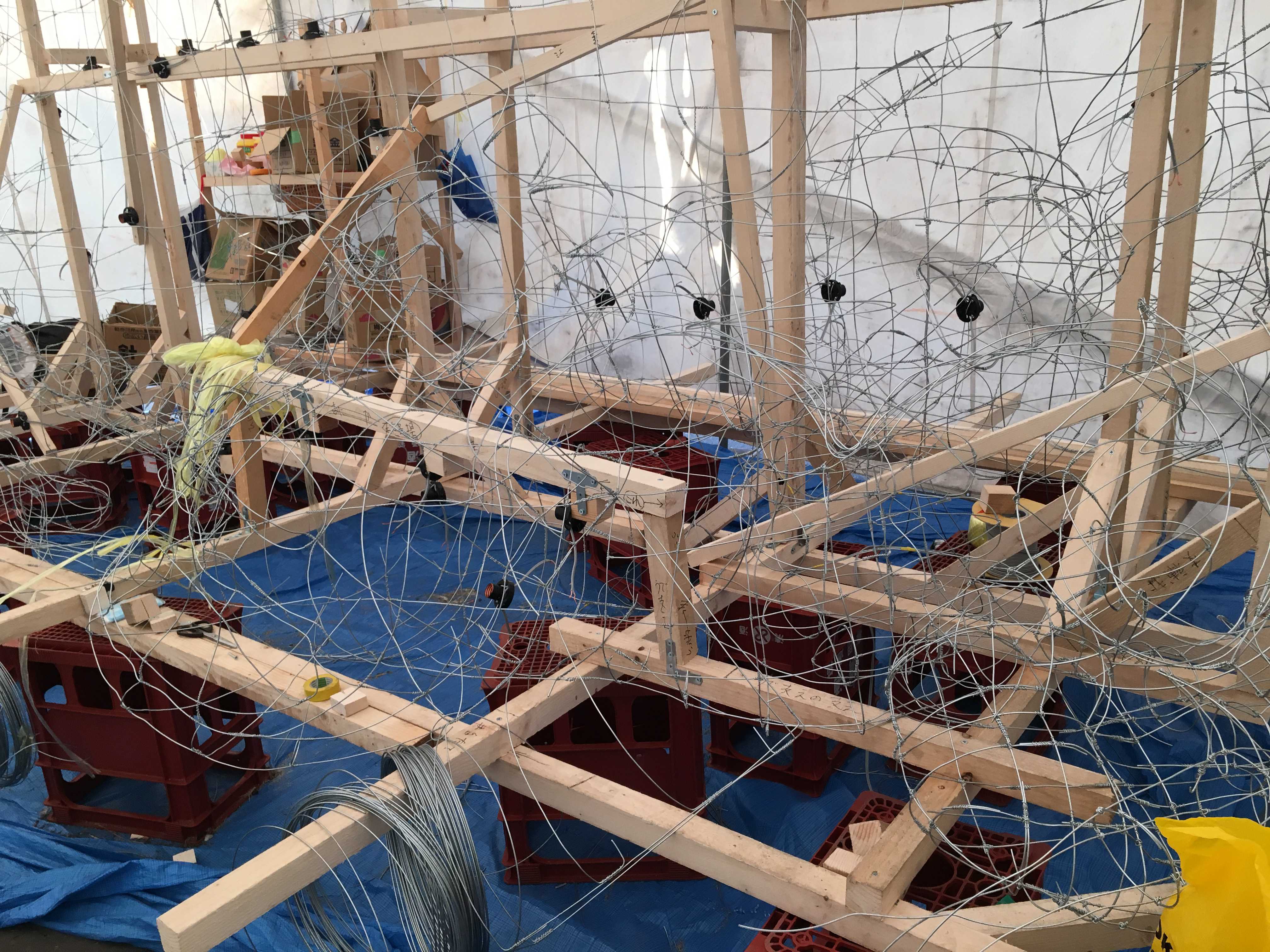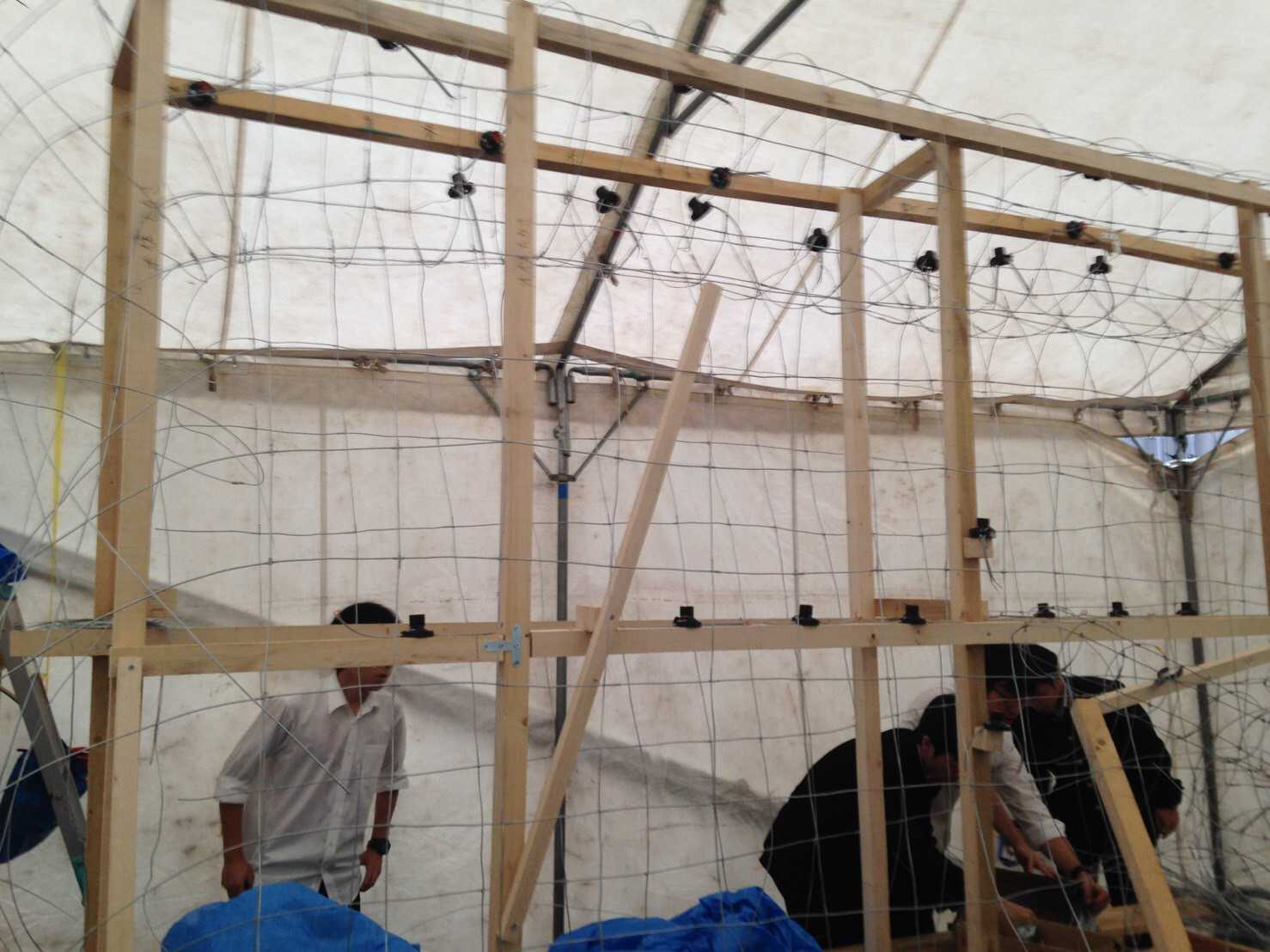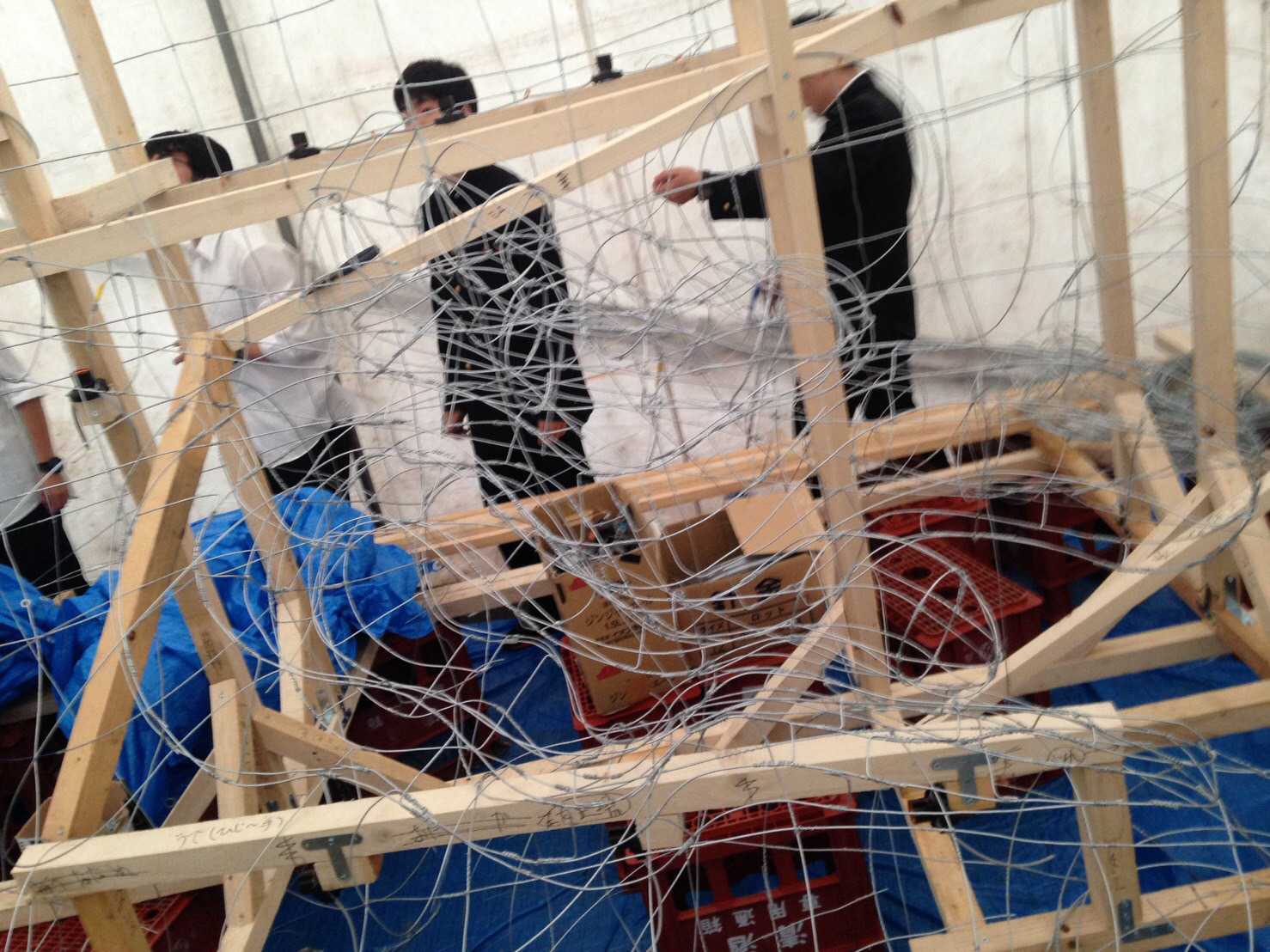 龍の胴体が出来たら土曜日には8人の人を割いて龍の胴体に囲まれた内側の格子をとにかくとめました。これだけで見た目が変わるので気持ち的に楽になります。