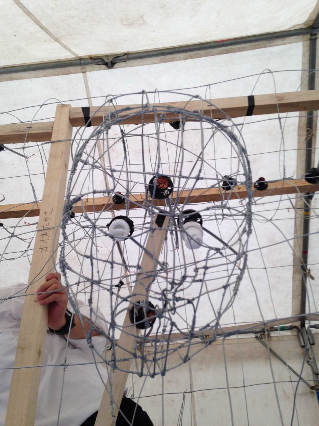 (言い忘れていましたが、1組は電球を針金に直接つけていて、支柱には全体の半分ほどしか付いていません。そのため龍、真田の針金が完成するまで電球を取り付けることができなく、全体を光らせられたのは7月6日くらいだったと思います。それも、紙貼りがほとんど終わった状態での点灯でした。しかし、電飾の2人を信頼していたので不安感はさほどありませんでした。ちょっっとはあった…笑笑)