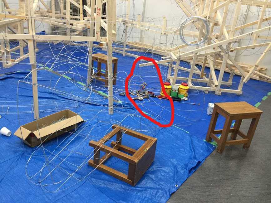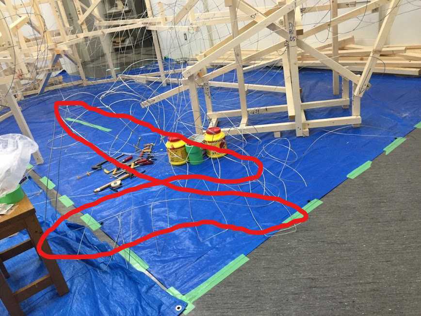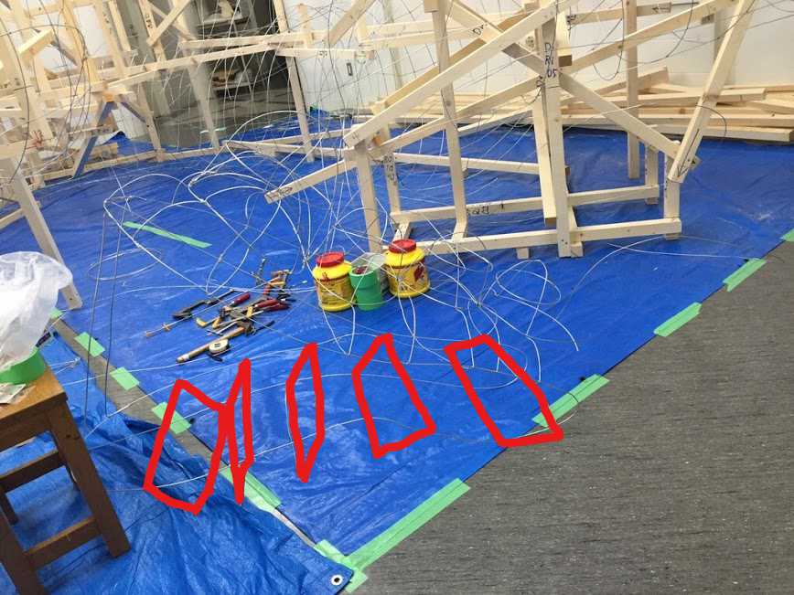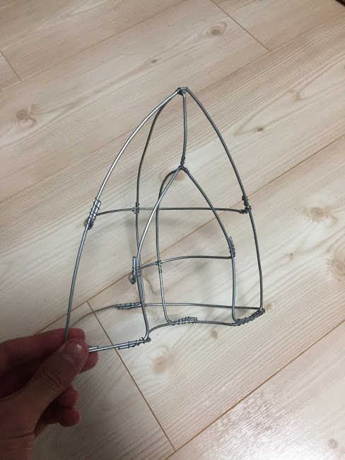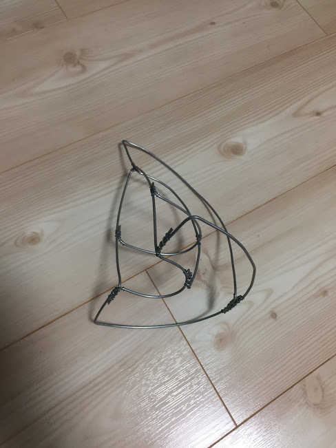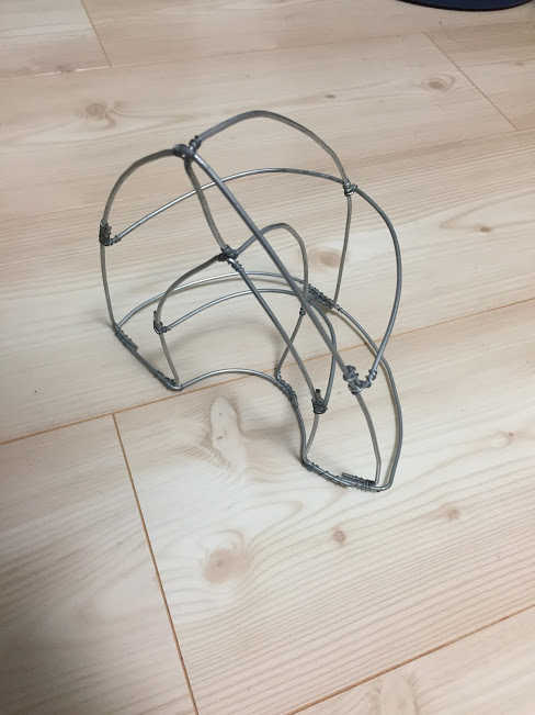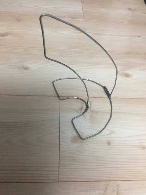 そして、下顎を作るために、長方形の針金をいくつか接合します。床に直接置いているので曲がっていますが気にしないでください。