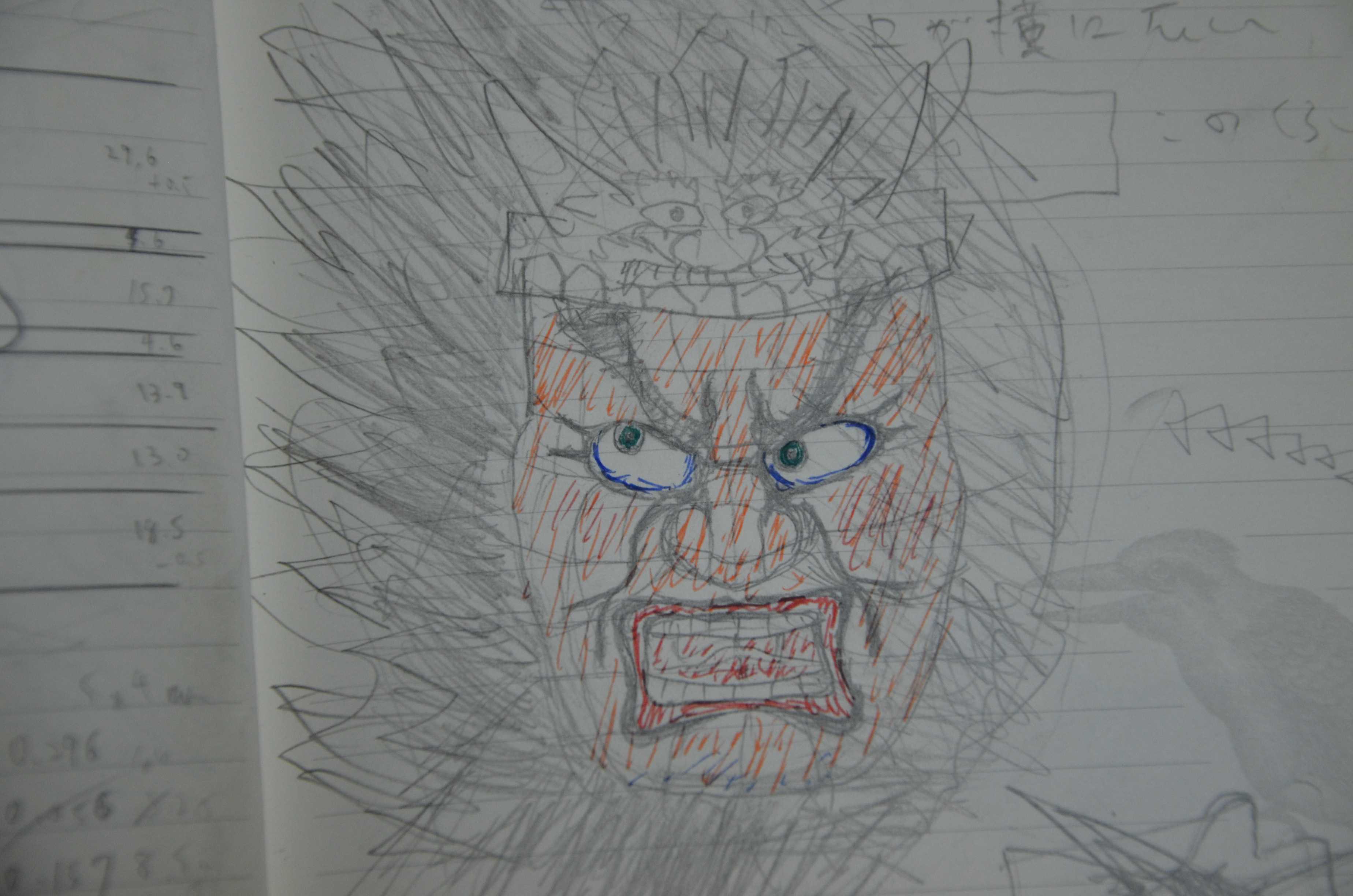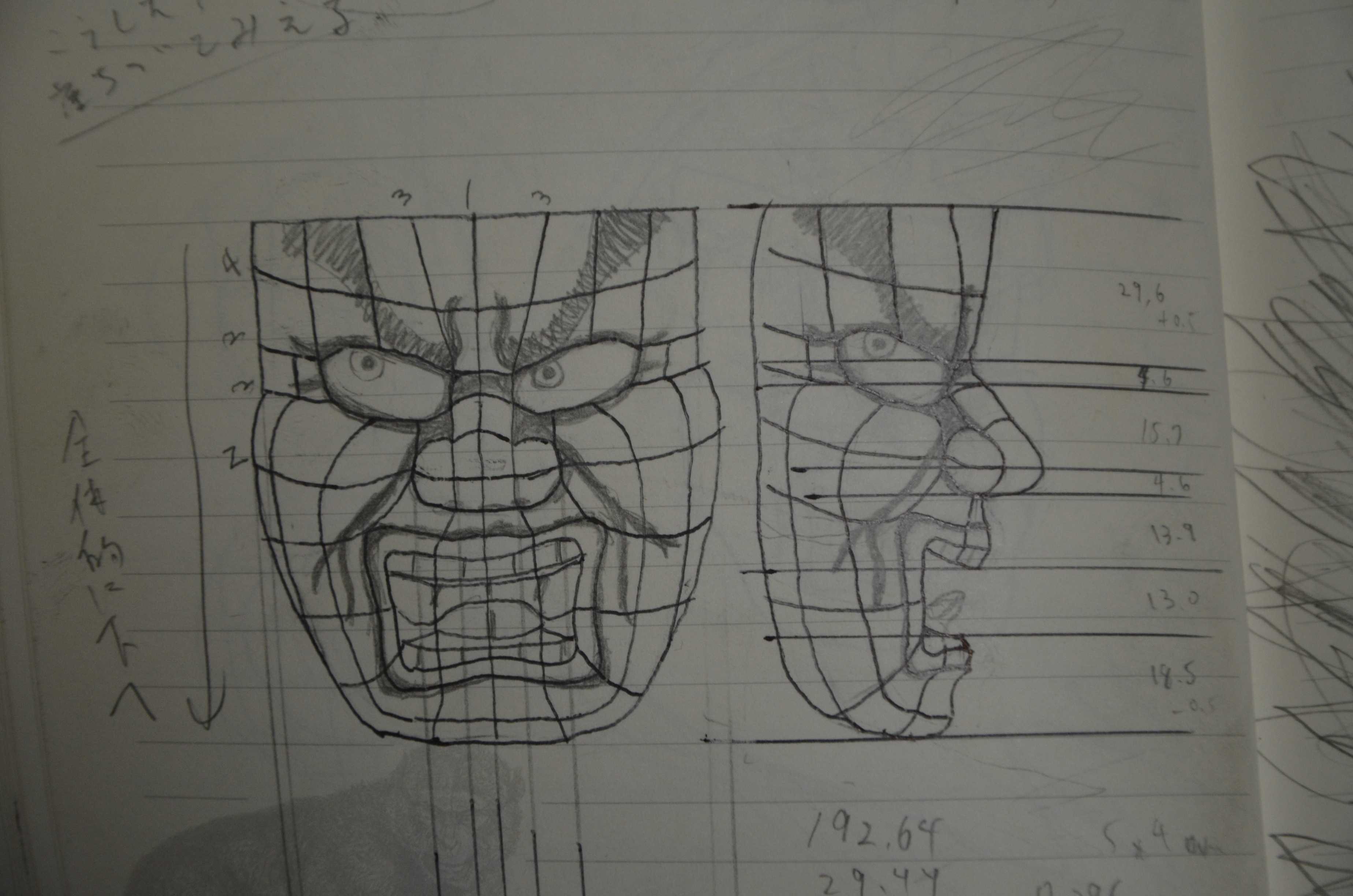 すべての顔の作り方は説明できないので、ここでは私が好きなねぶたである北村蓮明氏作『不動と竜王』の竜王の顔を参考に、多少のアレンジを加えて作ります。