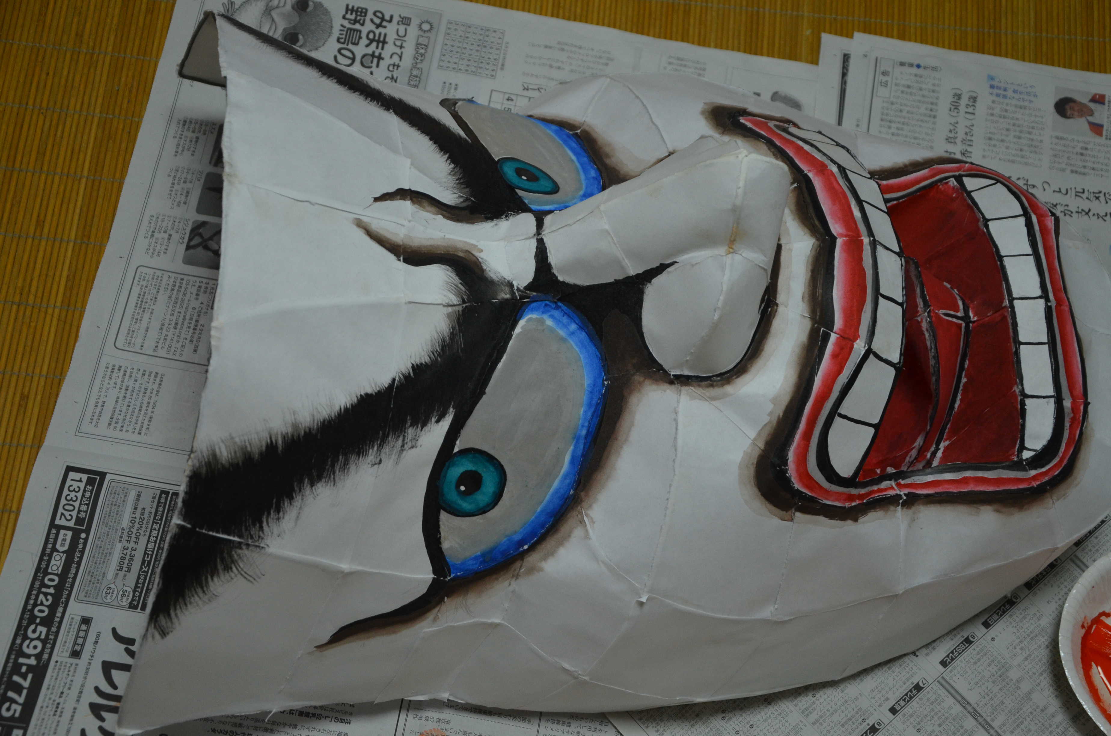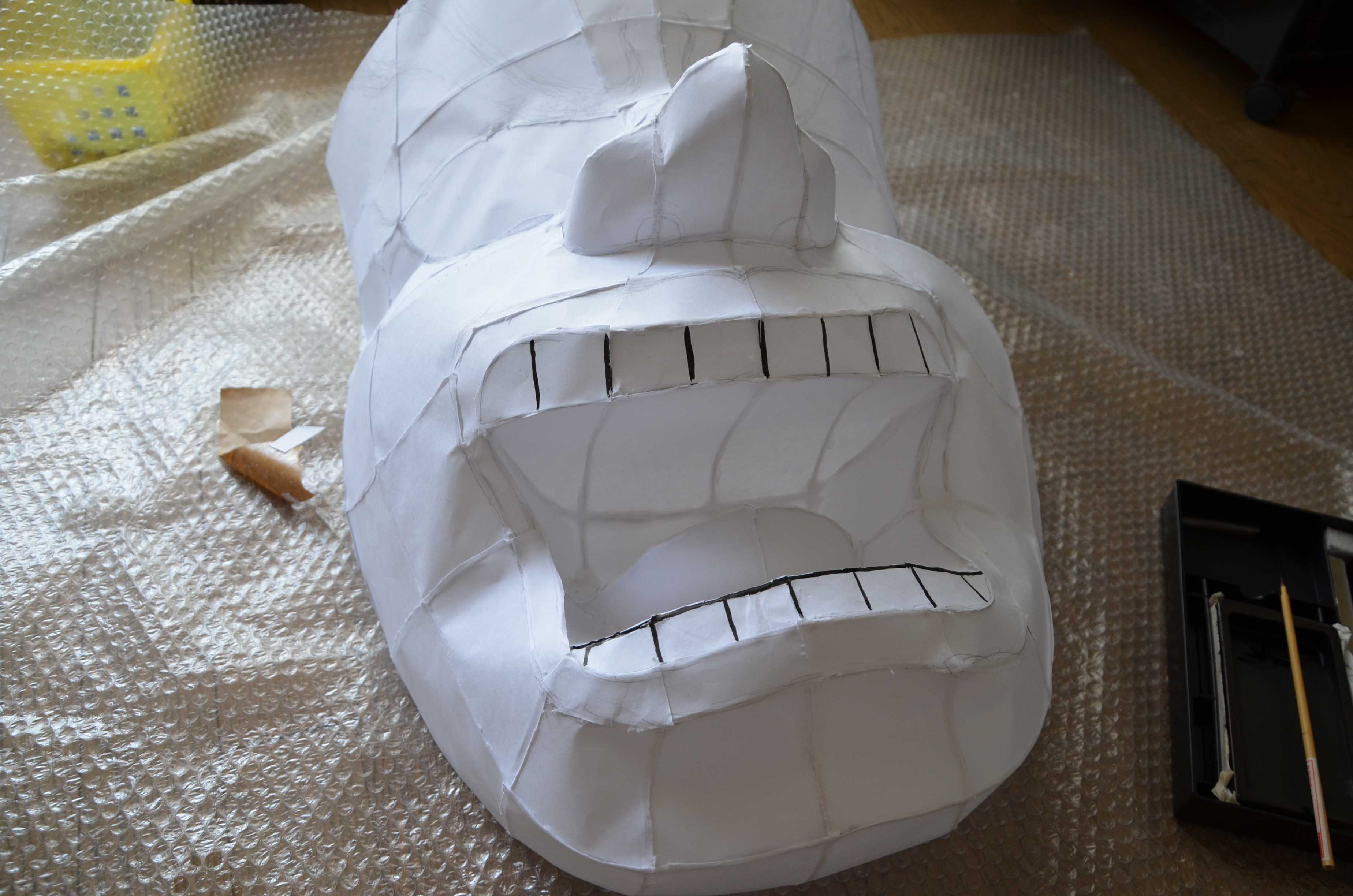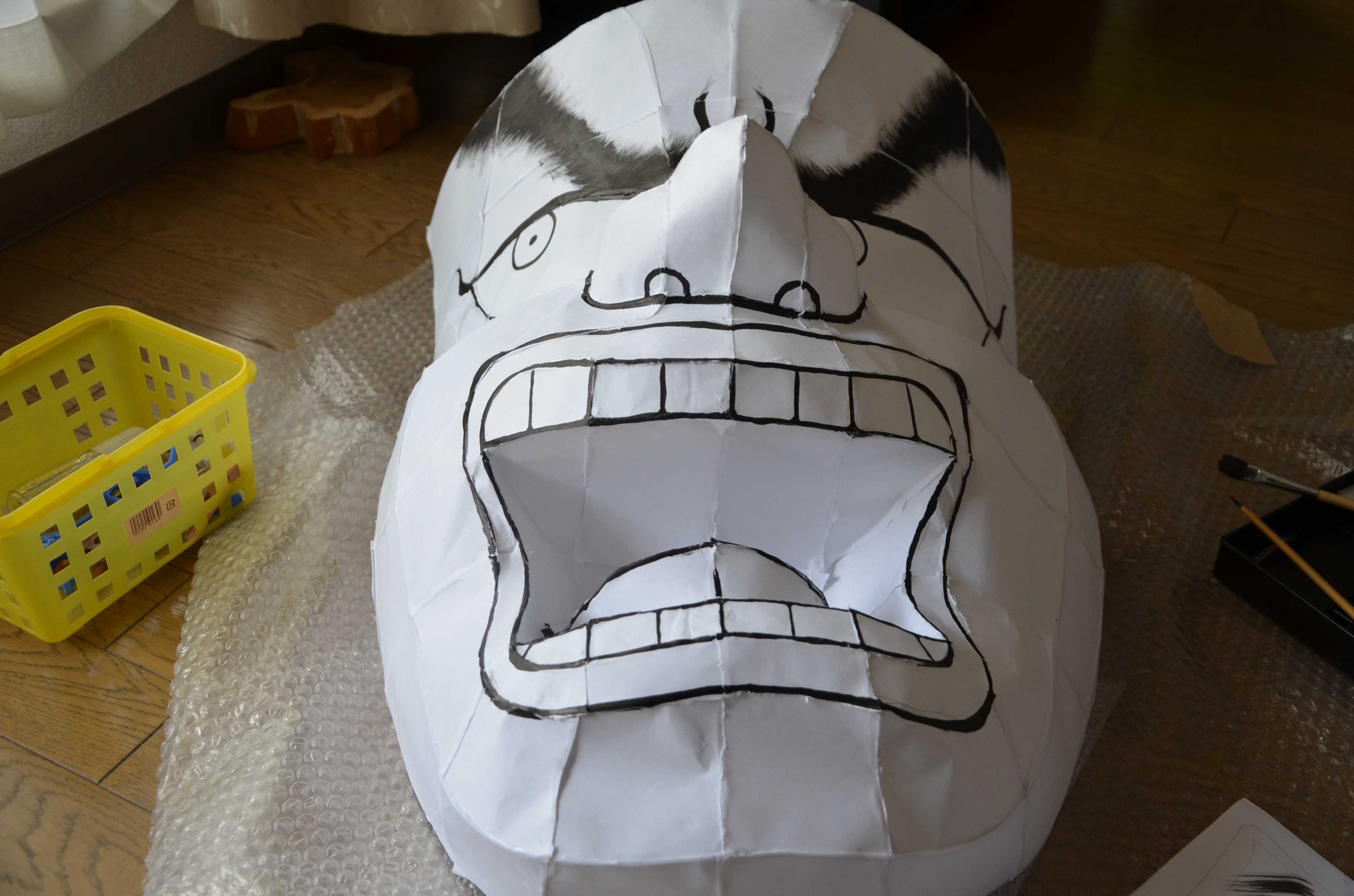 紙張りで最も難しいところは口の中ですが、多少は汚くなってもあまり見えないところなので大丈夫です。ただ、隙間があったりすると光が漏れてものすごく雑に見えるので気をつけましょう。