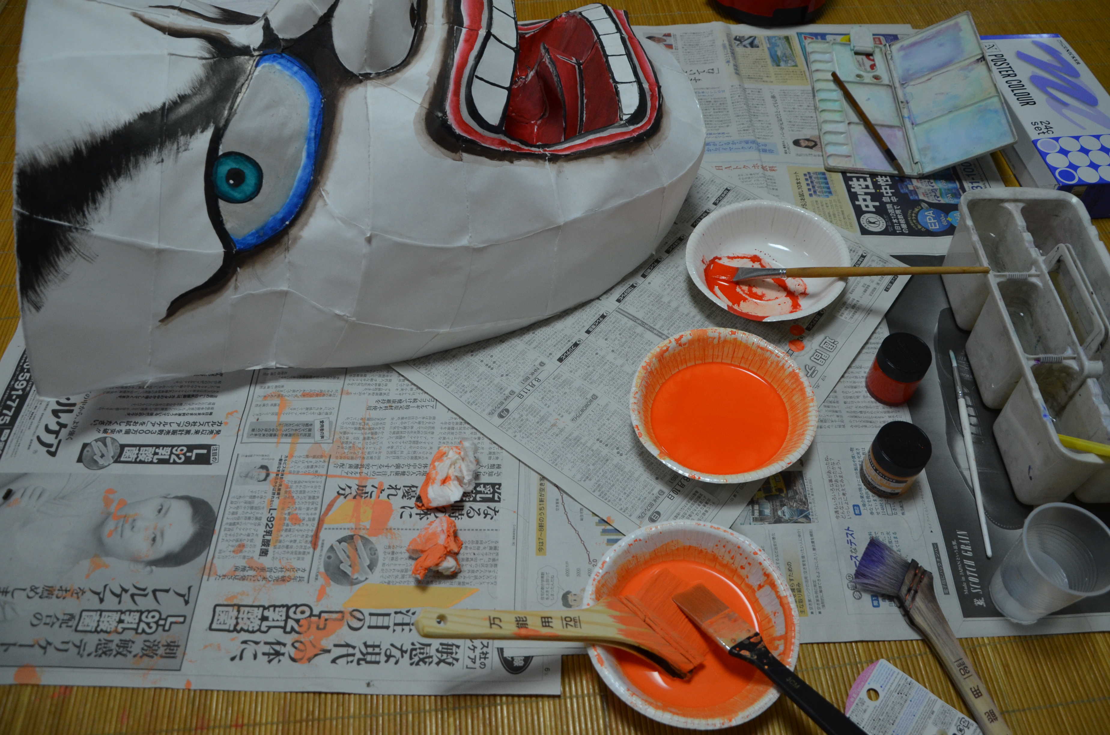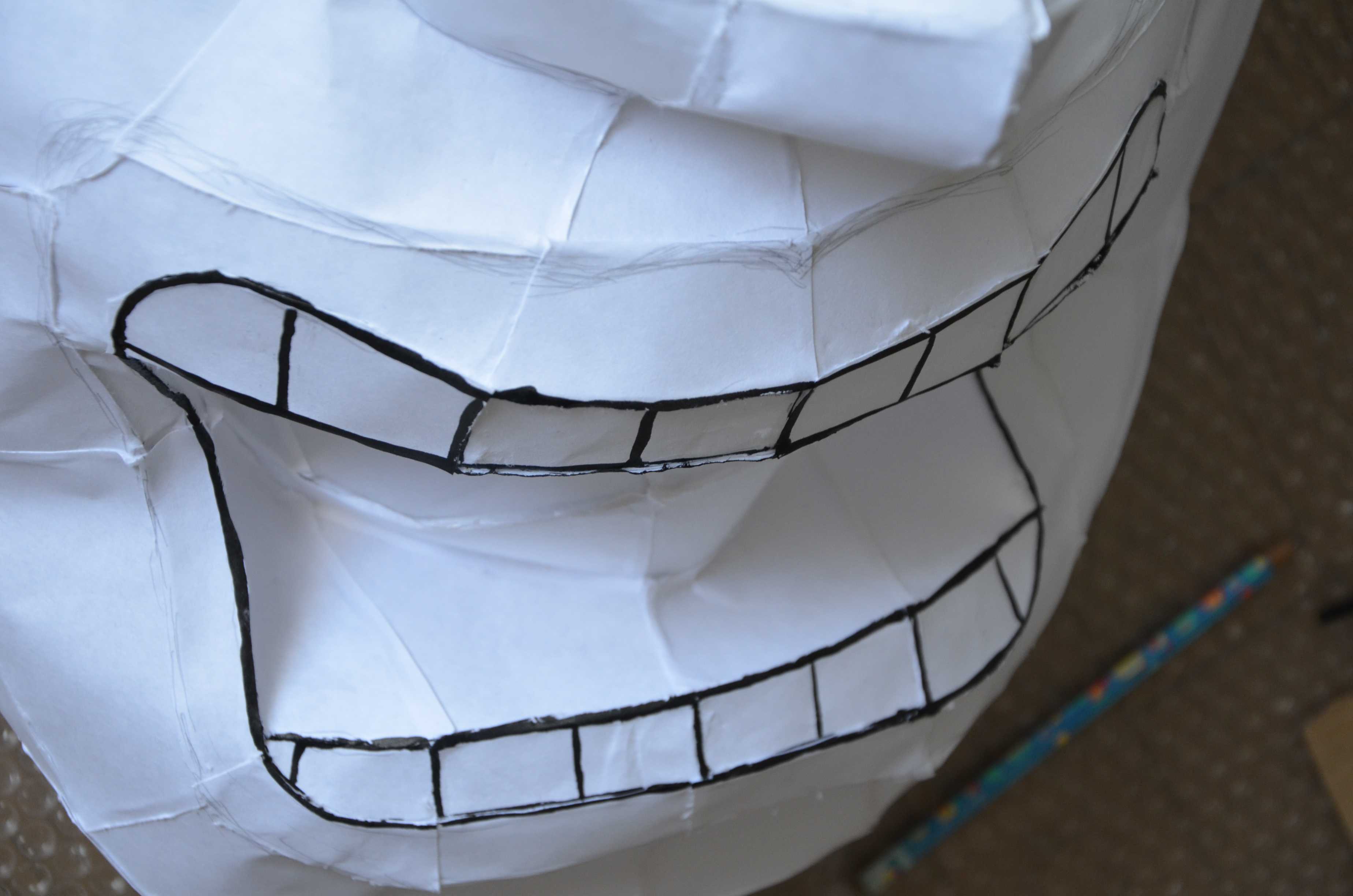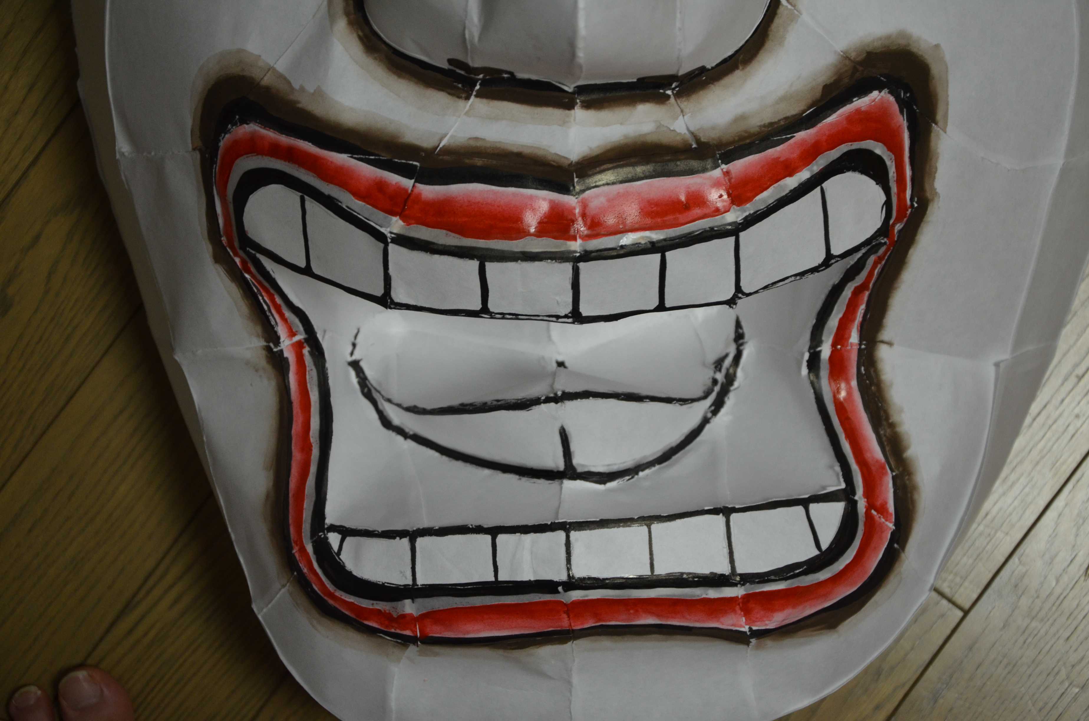 紙張りで最も難しいところは口の中ですが、多少は汚くなってもあまり見えないところなので大丈夫です。ただ、隙間があったりすると光が漏れてものすごく雑に見えるので気をつけましょう。