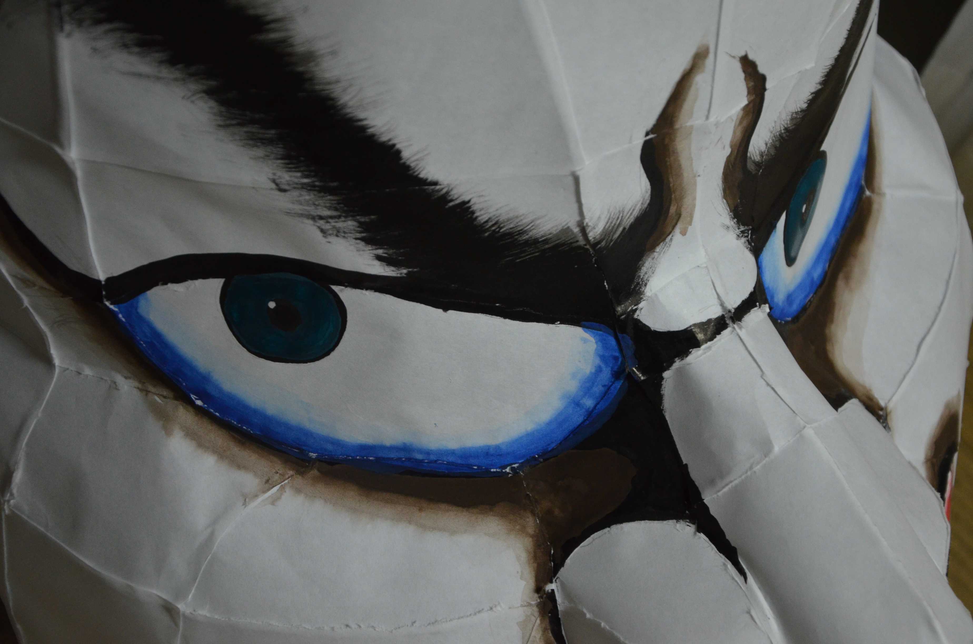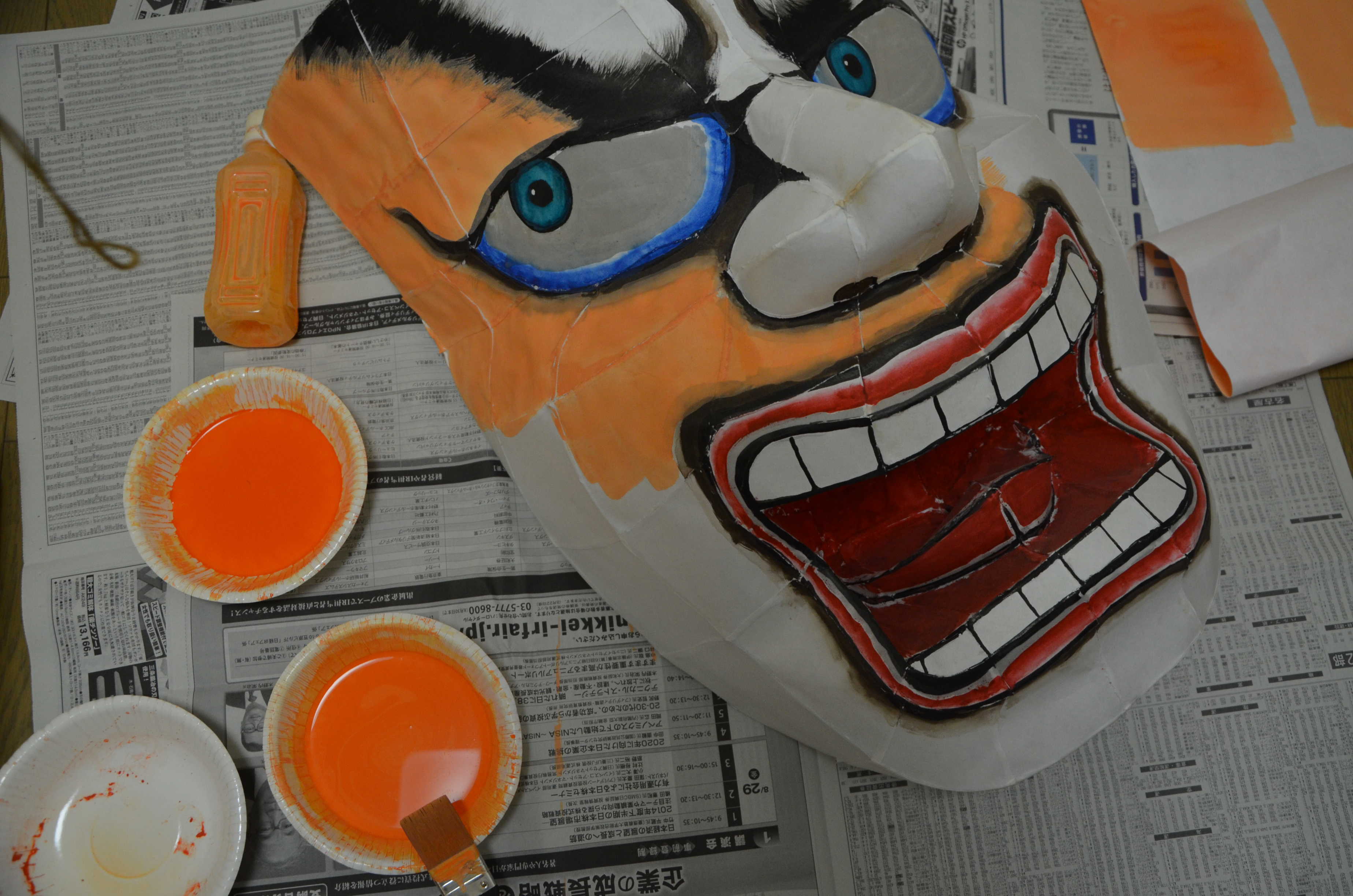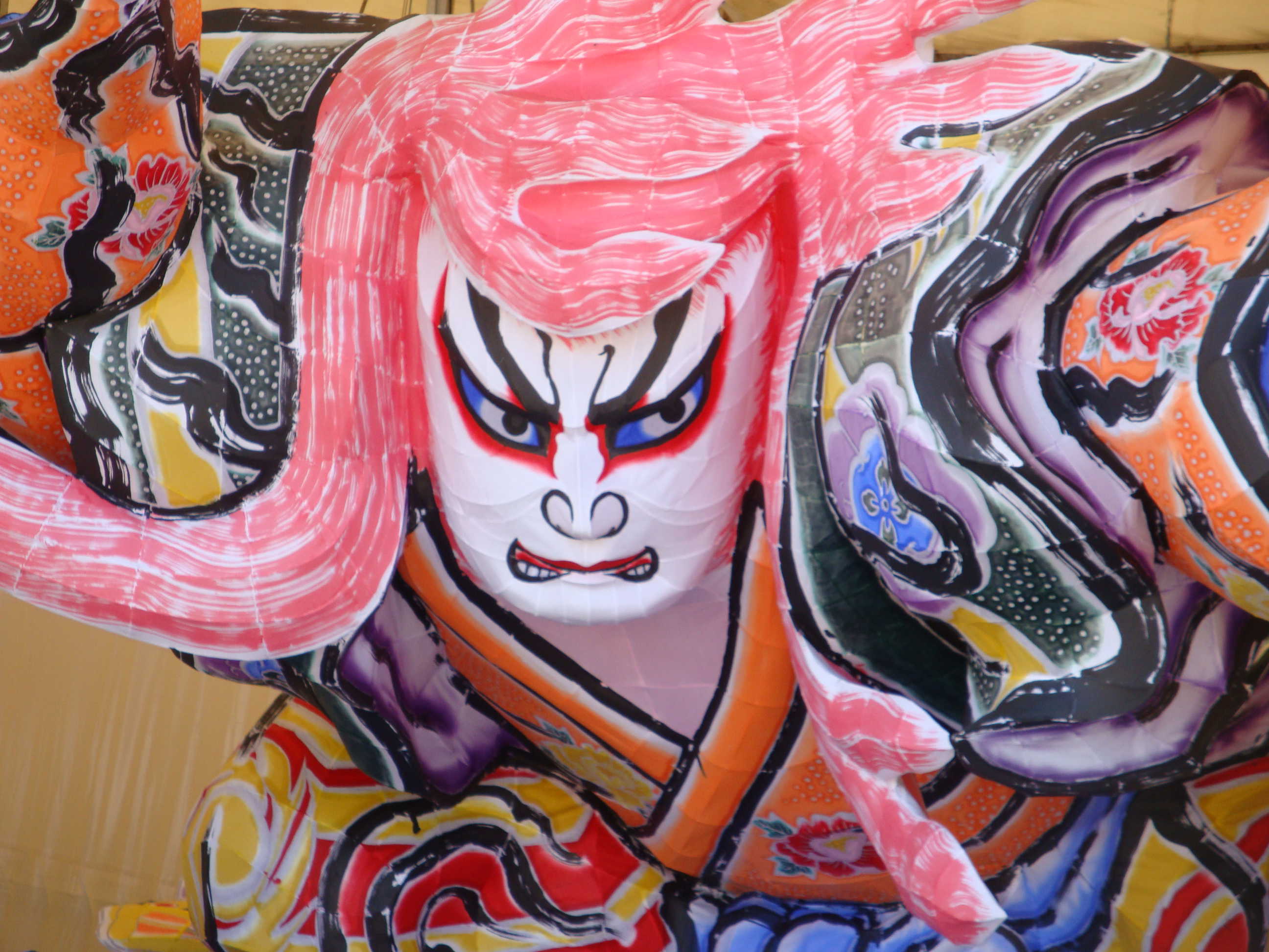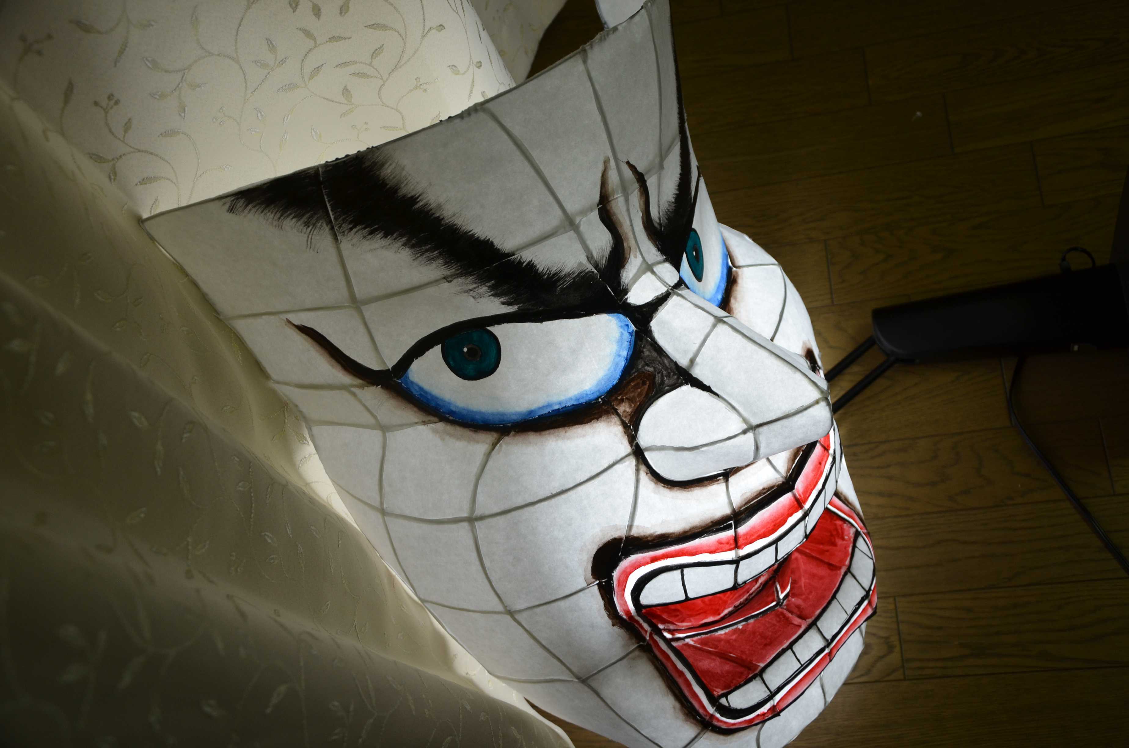 北高行灯ではあまりやらない(知らない?)のが隈取り(くまどり)で、隈取りをするとおもちゃっぽさが抜けて立体感と凄みがでます。必ずやりましょう。