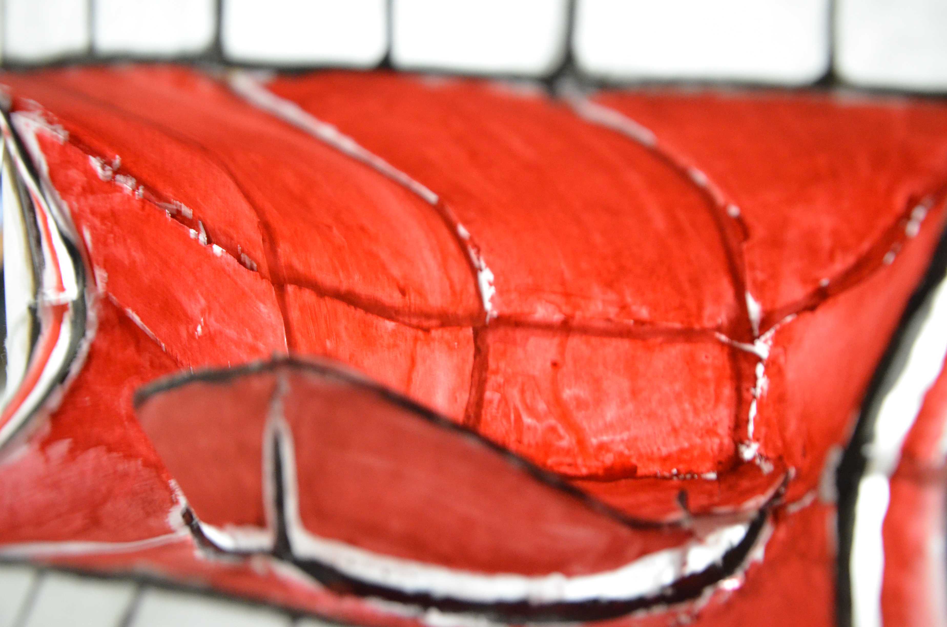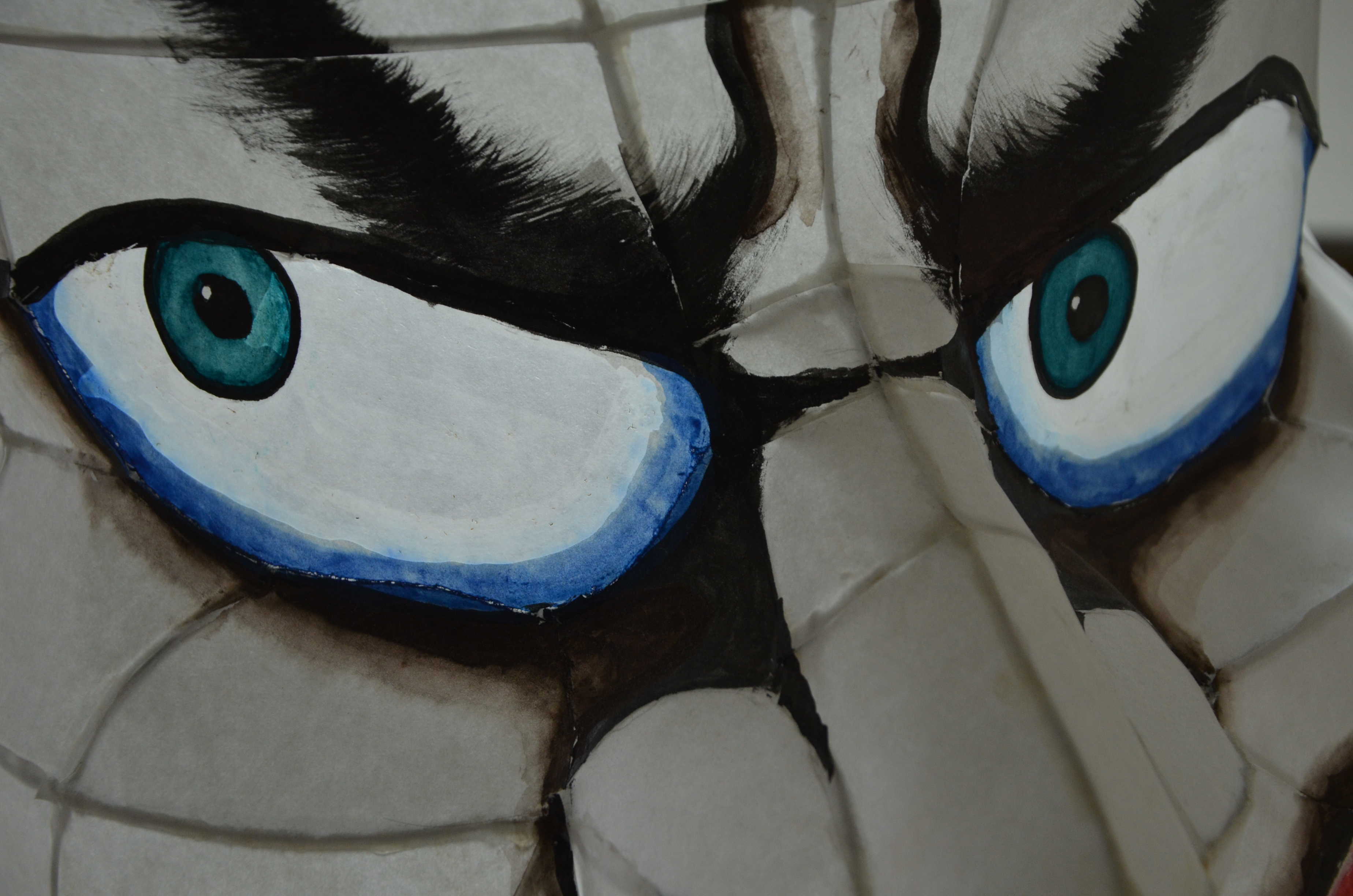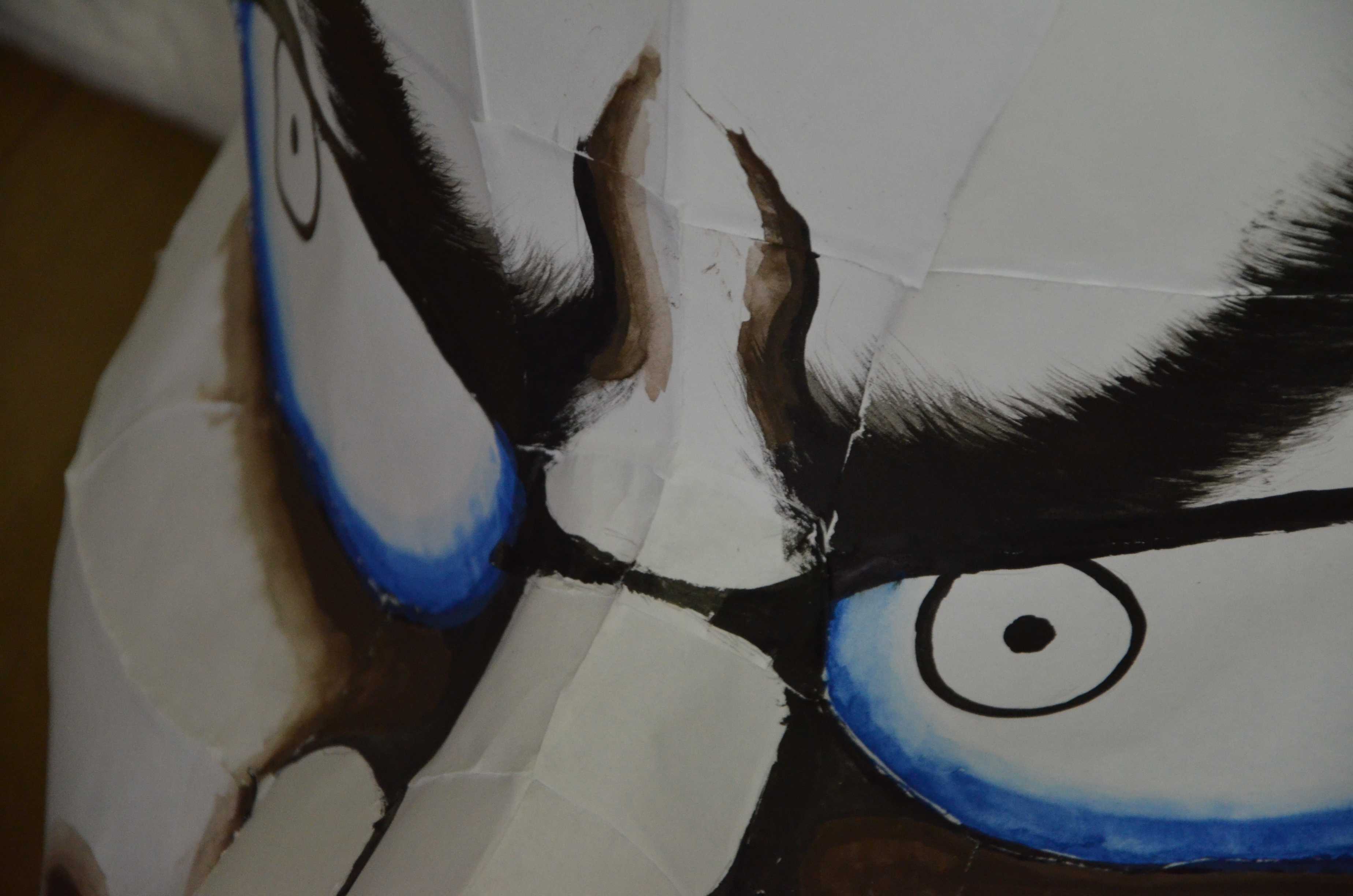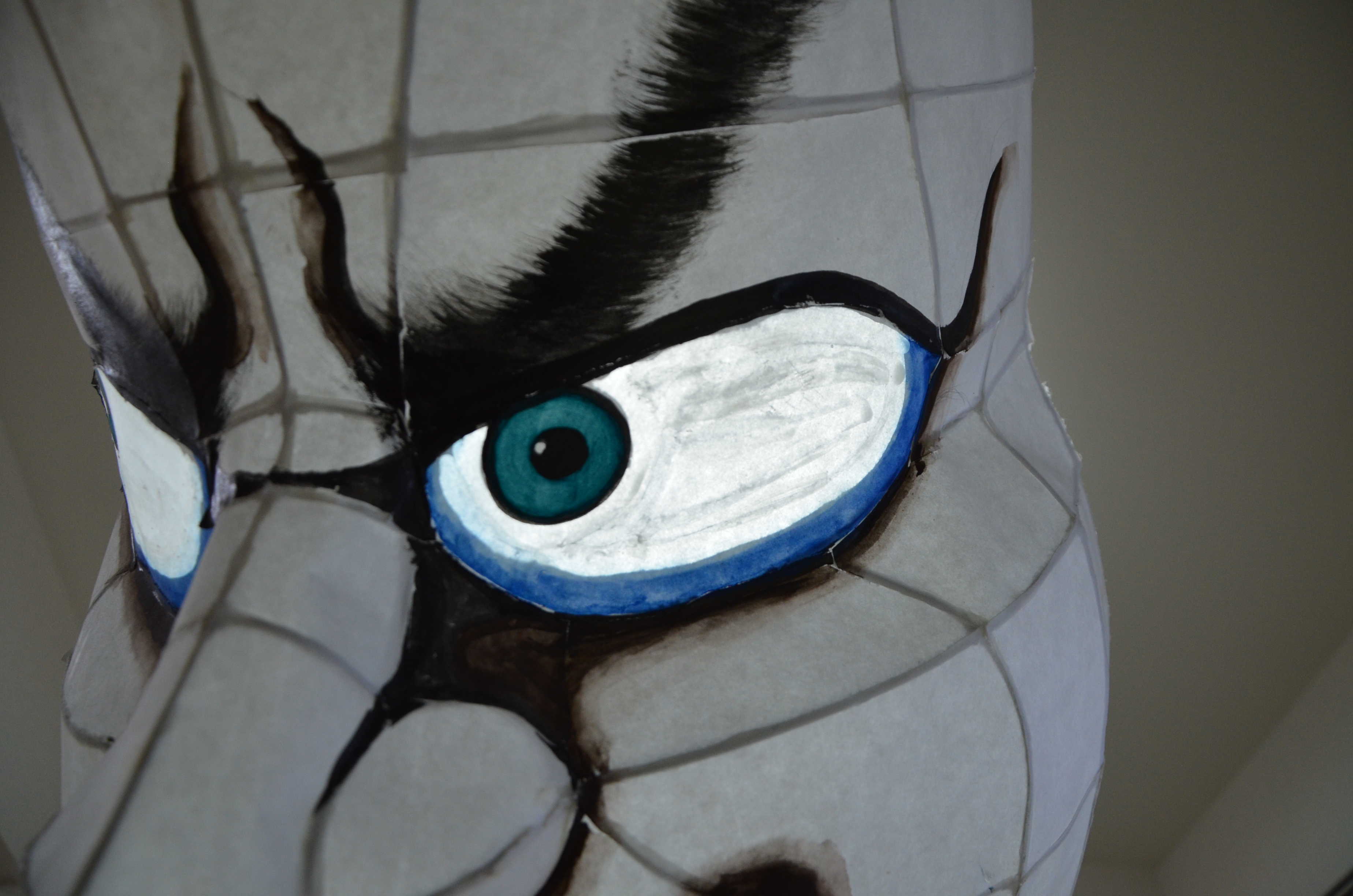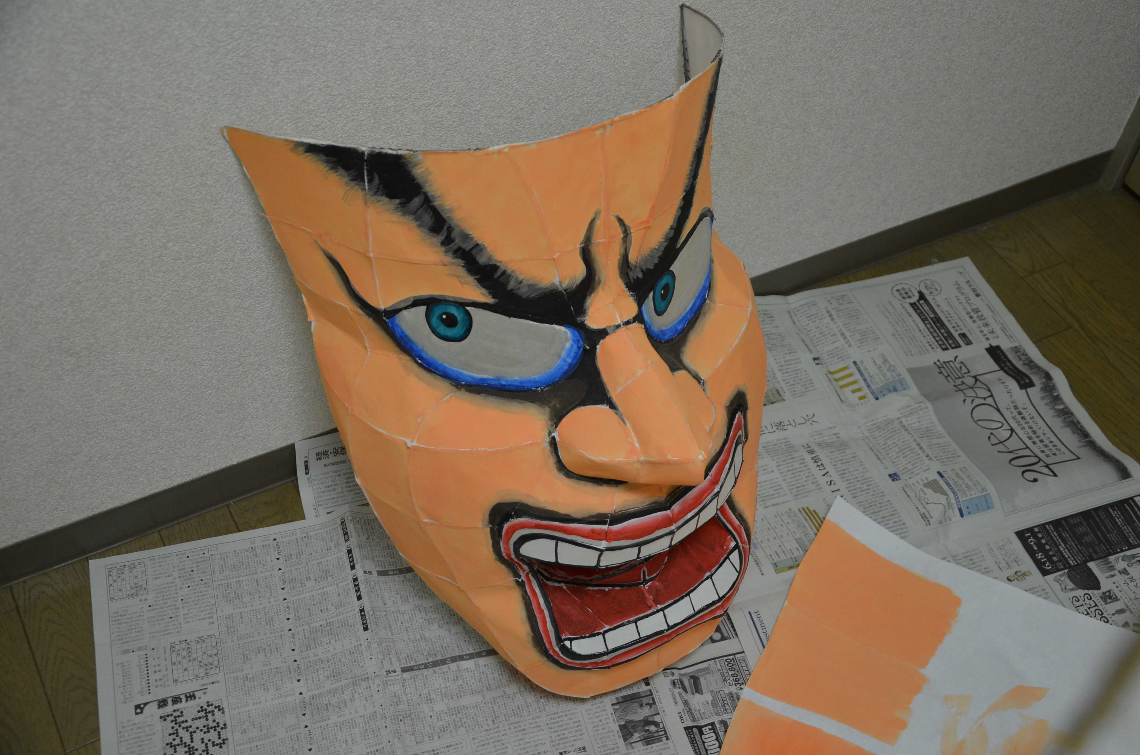 北高行灯ではあまりやらない(知らない?)のが隈取り(くまどり)で、隈取りをするとおもちゃっぽさが抜けて立体感と凄みがでます。必ずやりましょう。