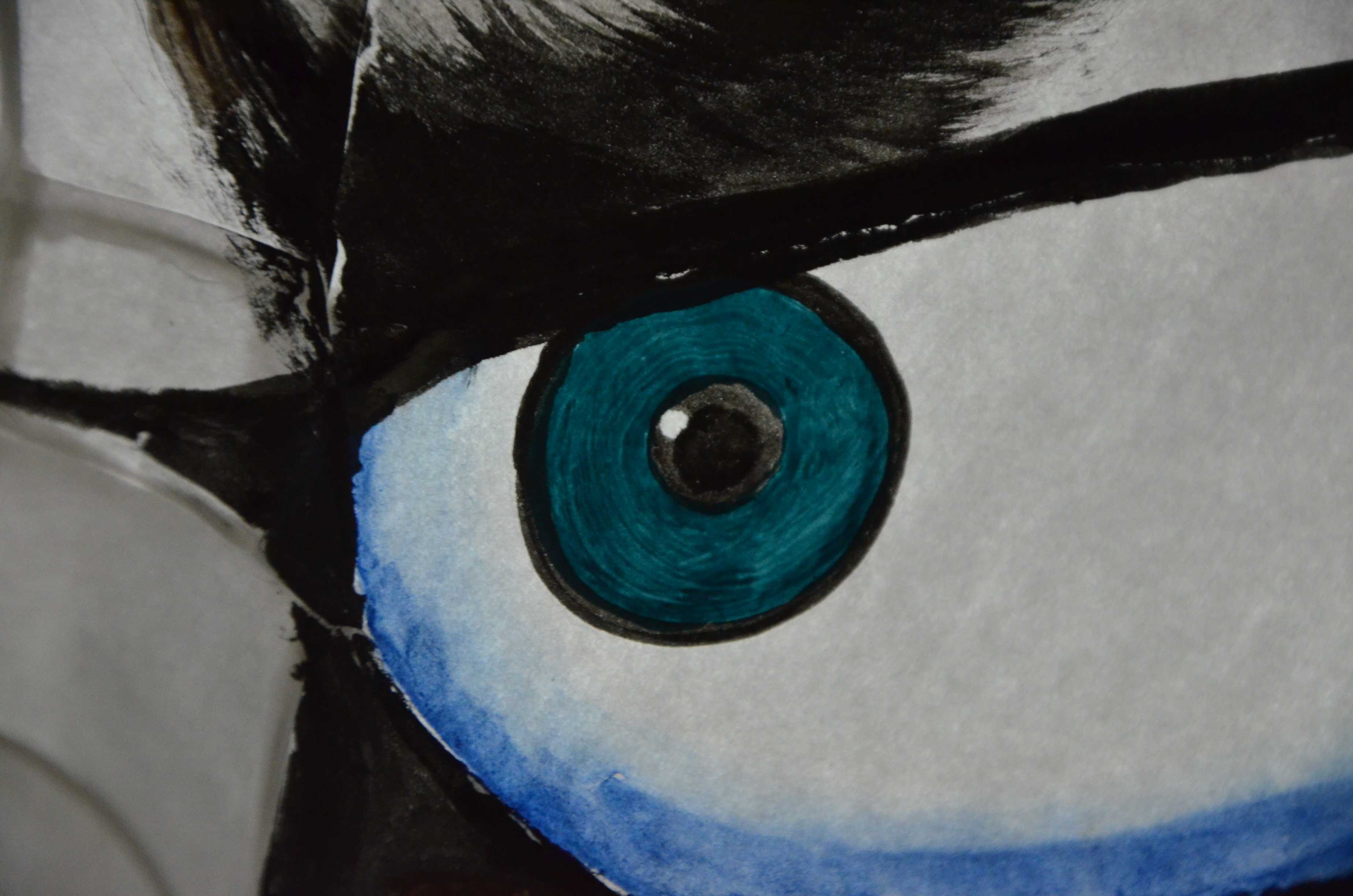 目の青(、緑)、口の赤を塗っていきます。文章で書くのは面倒なので写真を見てください。