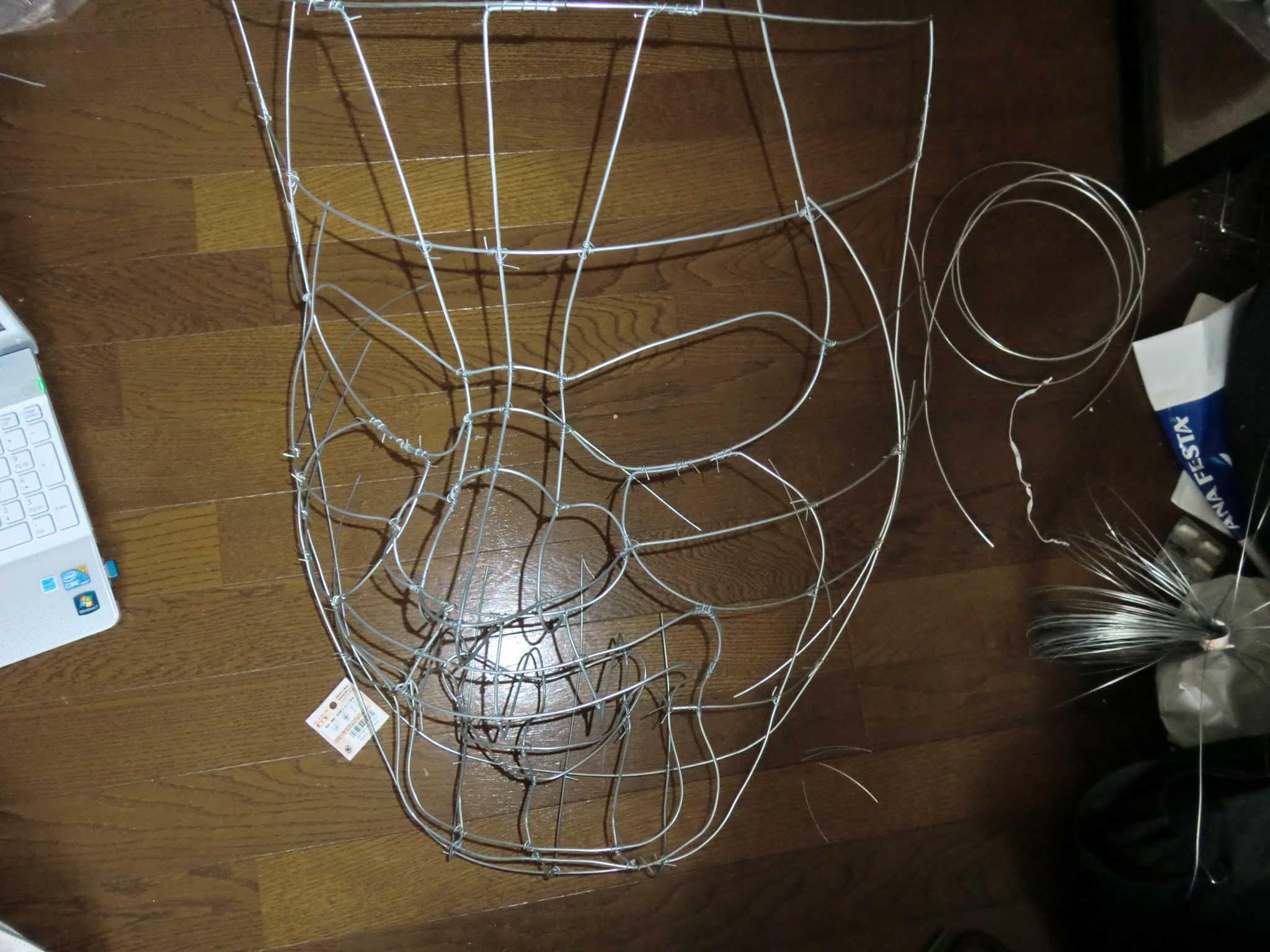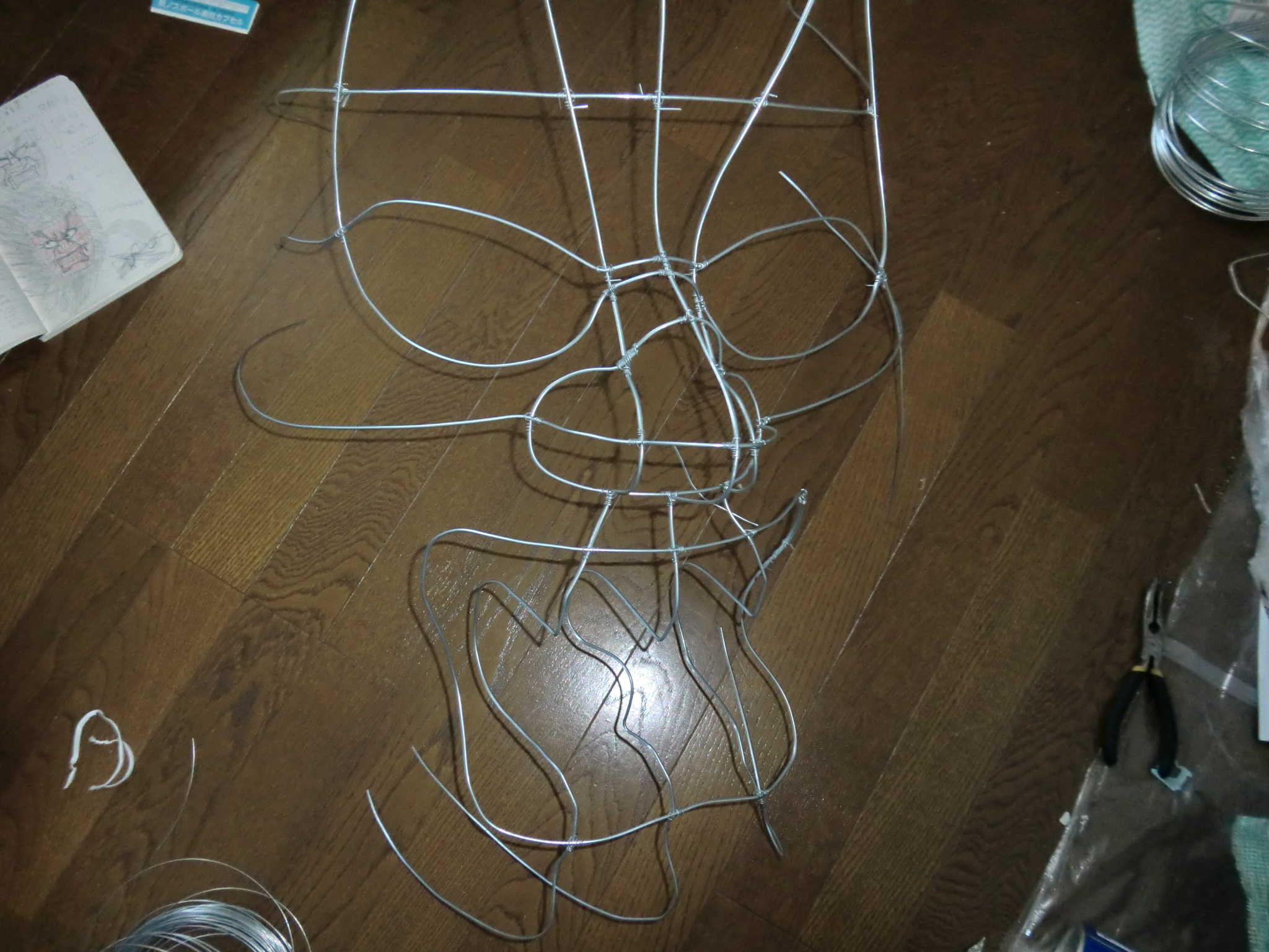 立体像を想像し、膨らみ(特に頬)がわかるような針金にします。基本的には下の写真のようにすればいいと思います。