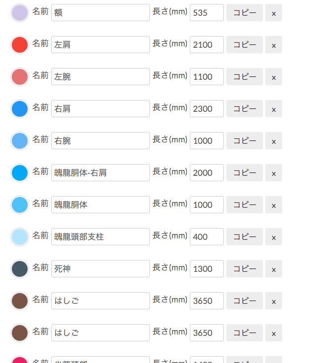 例として、60th3-9の支柱を下に書いておきます。これを インポート/エクスポート タブの上のエリアにペーストしてインポートすれば、これらの木材の最小カット方法を確認できます。