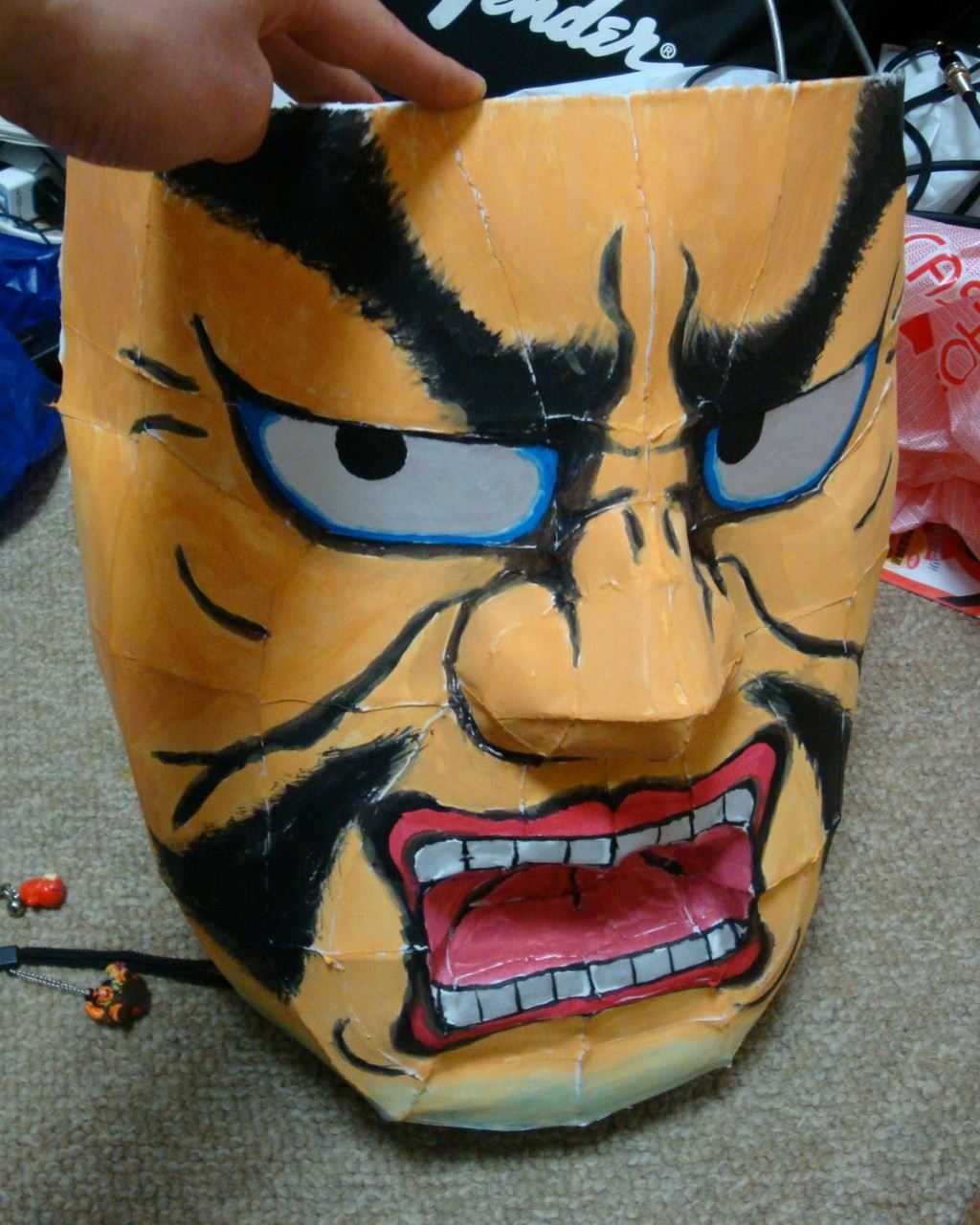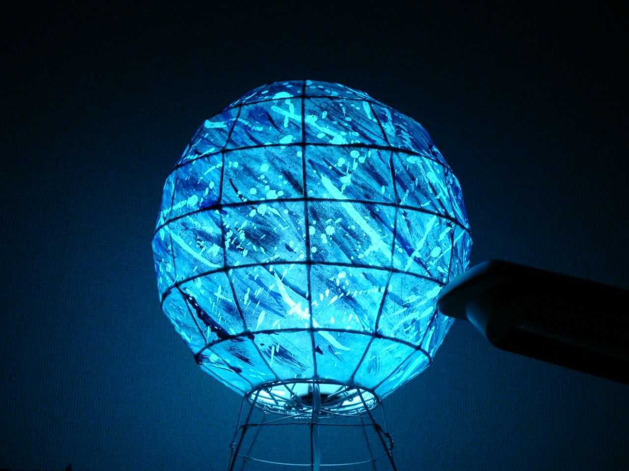 さて、私が練習として作ってみた物の話に入りますが、私は2年の夏休みに惑星のようなもの、3年の初めに面を作ってみました。見てもらえればわかると思いますが、下手です(特に面)。下手だからこそ練習しなければいけません。(前者は間接照明として、後者は実験と針金講習会のために作りました。作業前に作ったものを実際の行灯に使用するのは違反なので注意してください。)