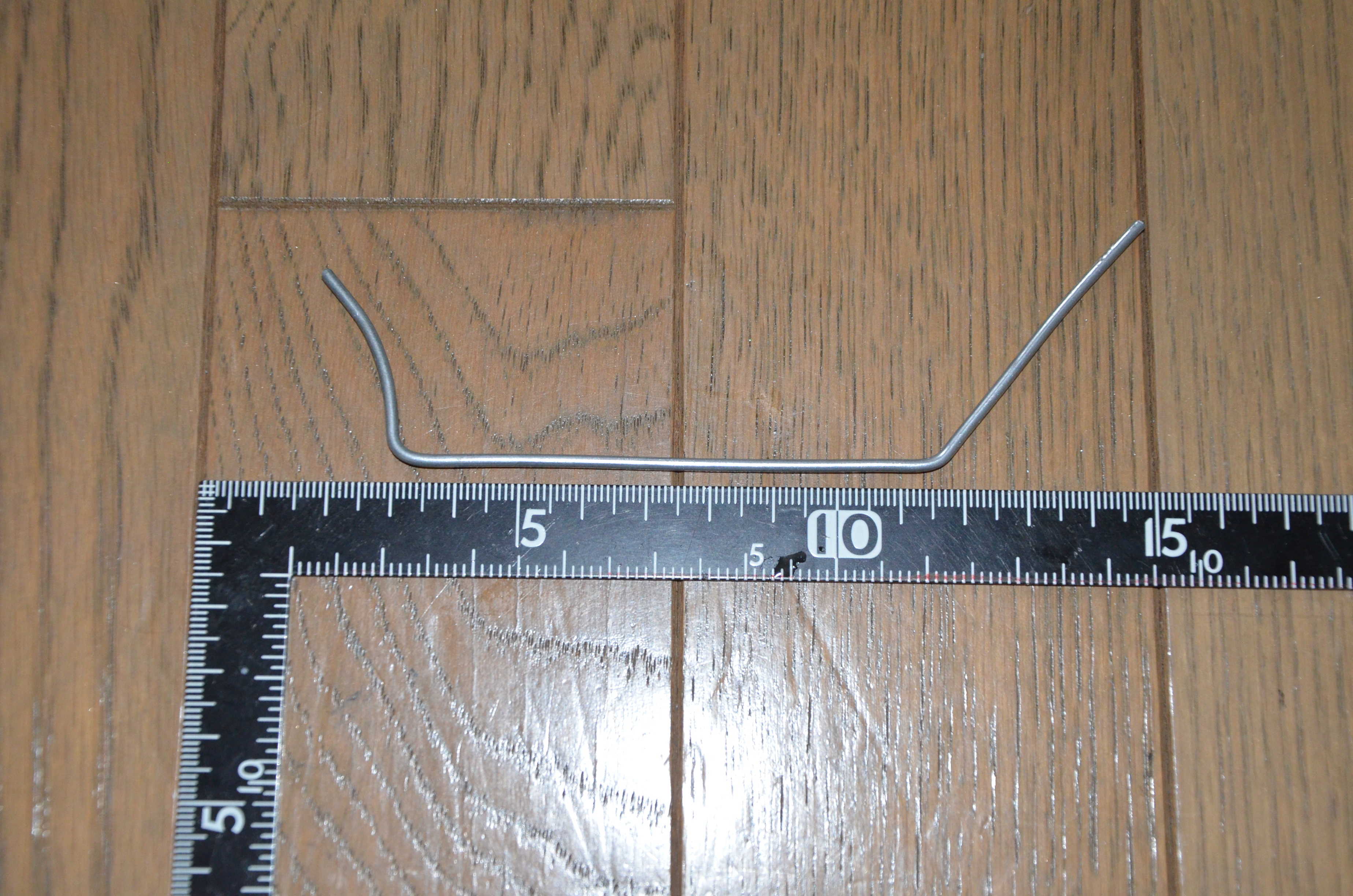 伸ばした針金を木材に固定します (ここできちんと固定しないと行列中かなり揺れるので注意!)。固定できたら、針金を先程だした長さのところで直角に折り曲げます。そして折り曲げた先の長さが15~20cmくらいになるように切ってしまいます。