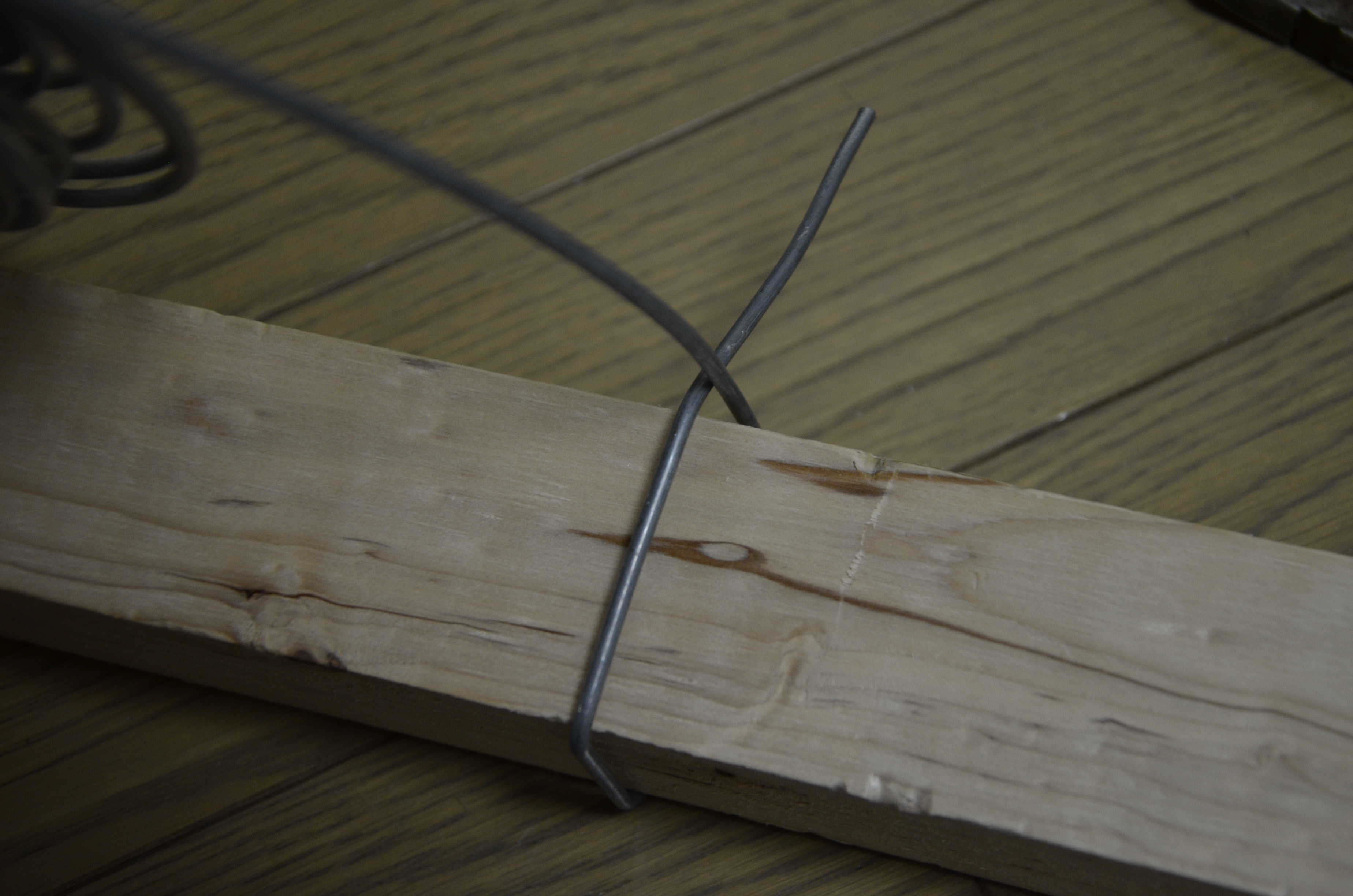 一本巻きの要領で巻き付けていきます。このとき、木材を針金で締め付けるようにするとしっかりと固定されます。逆に締め付けが弱いと意味がありません。