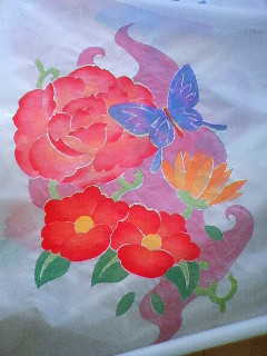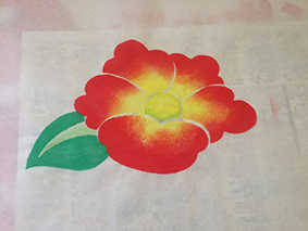 63期の骸骨の着物、扇、おぼろ車のすだれはこの方法で塗っています。