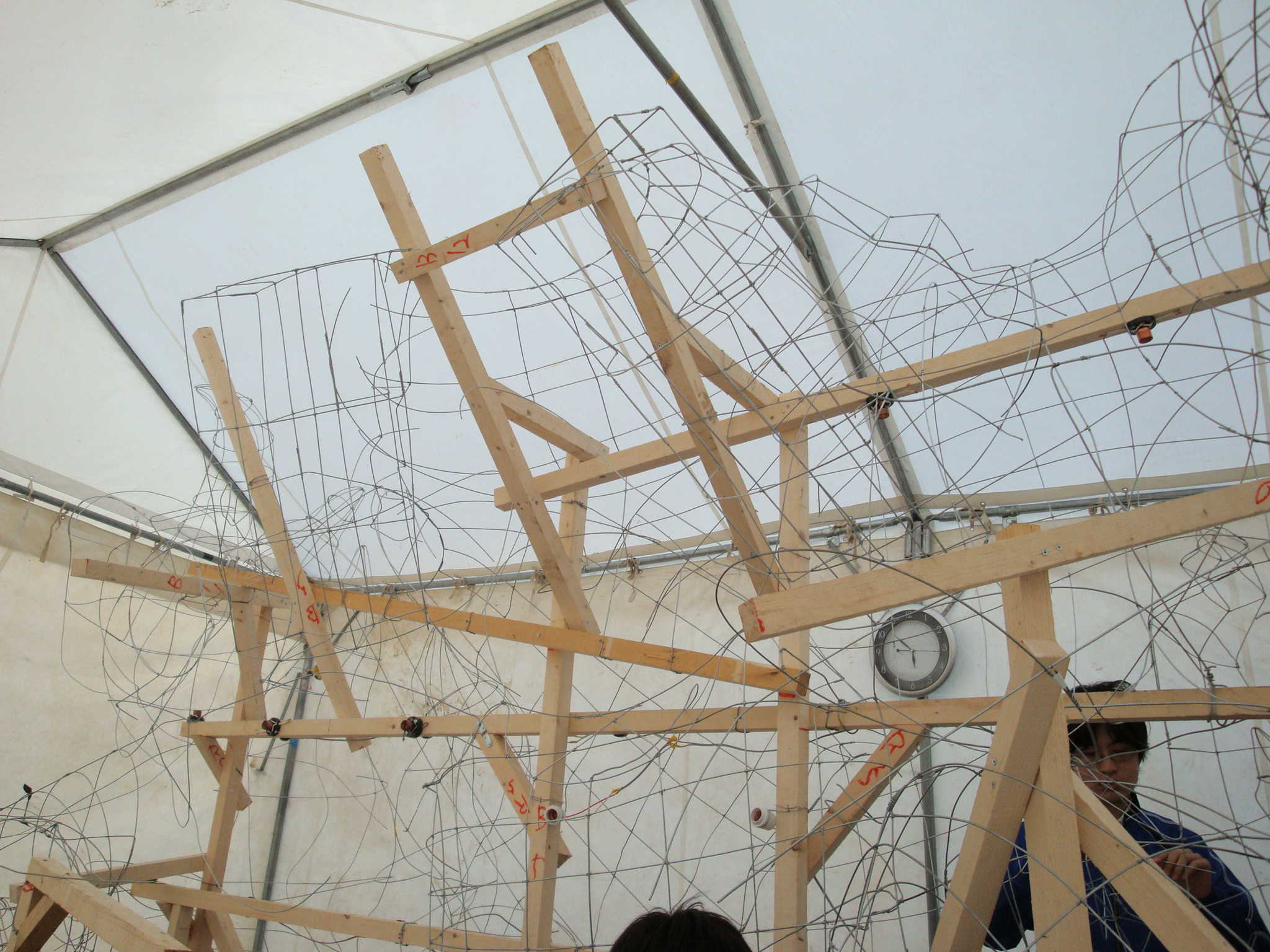 そのために、物体の中心線にはならなくてもいいから、できるだけ支柱が90°になるようにしていきました。補強も惜しみませんでした。力学のモーメントもなんとなく意識していたと思います。