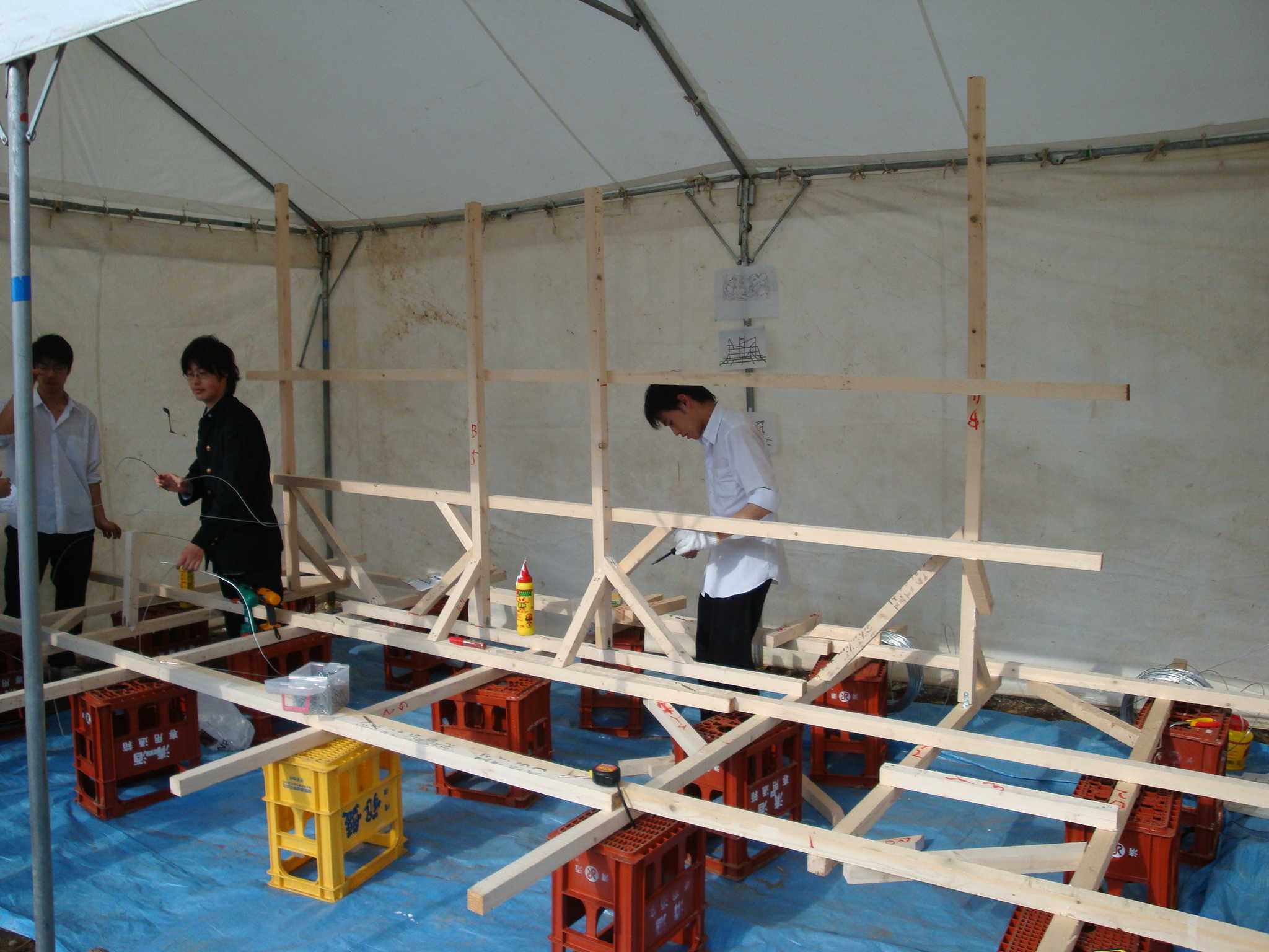 60thの3年生は木材→テント支柱という順番だったので、テントを建て終わる頃には木材はすべてカットできていたと思います。