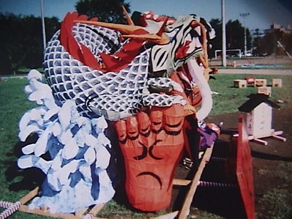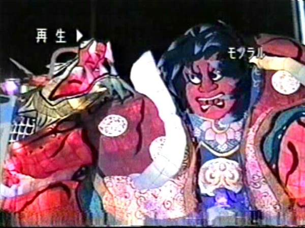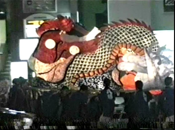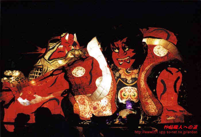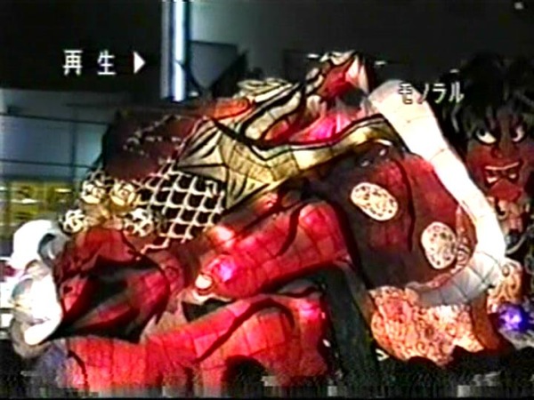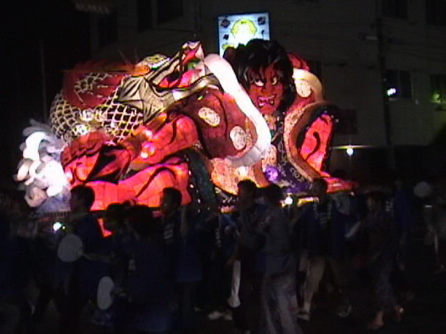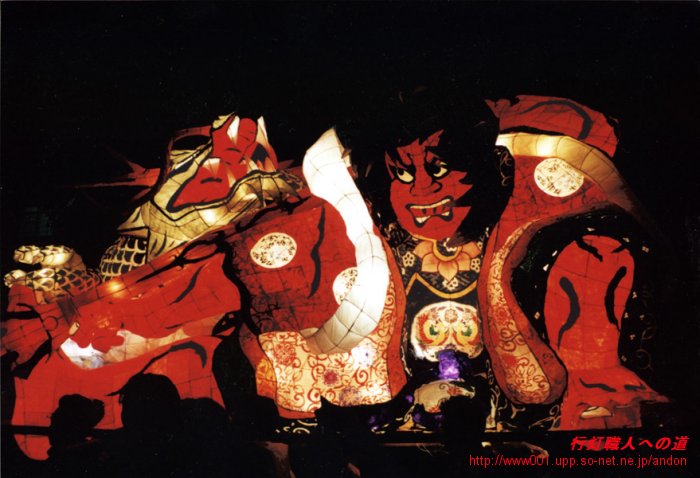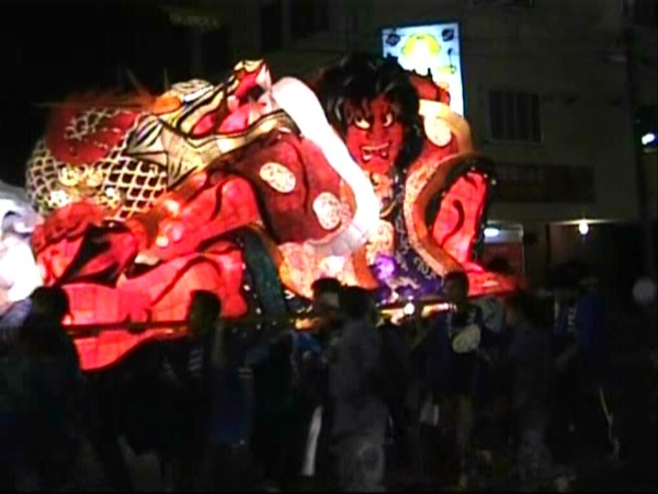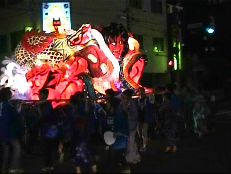 - 過去最高の年と言っても過言ではないほどにハイレベルだった51st行灯行列の頂点に立った作品。パーフェクトに近い完成度。針金は精密かつ迫力満点で、顔・龍・手・足はこれからも後輩達の良い手本にされるでしょう。構図は非常に洗練されていて、空間の使い方・勢いの出し方が本当に上手い。そして何と言っても凄いのが電飾。非の打ち所が全く無い。「完璧」としか言いようが無い。ちなみに一番右の画像はラーメン屋大将の前の画像である。つまり、ルートの後半を大分過ぎた時間帯でさえもまだあれだけの明るく光り続けているということです(『不死身のナタク』というあだ名がついてもおかしくない)。しかし、これほどまでに完璧なナタクでさえも、実は致命的なミスを犯している(よく見ないと気づかないかもしれないが…)。それは『赤』が多すぎることである。よく見てみると、肌色・服・武器…この三色が全て同化してしまっているのである。でも針金・電飾・構図が群を抜いてるので全く違和感を感じない人がほとんどであろう。つまりそれだけナタクは凄いということである。