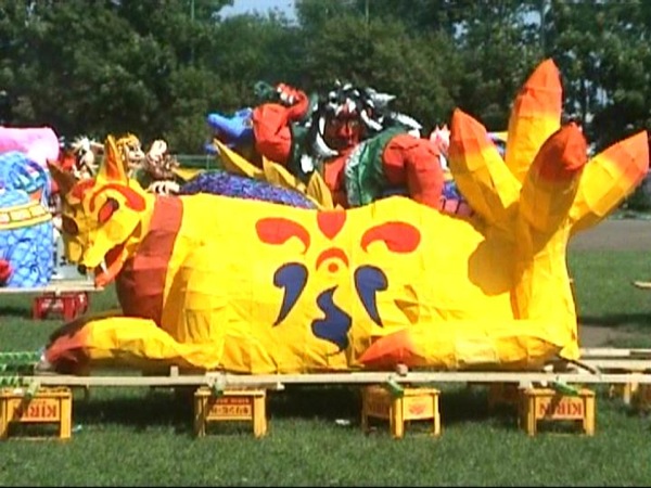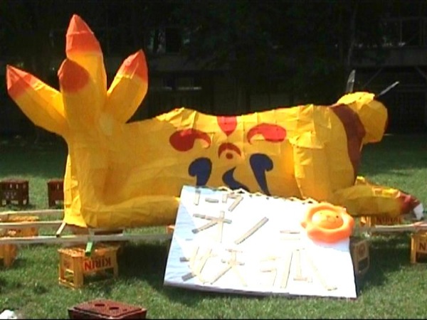 題名的にはユーモア賞をあげたかったほどユニークで面白かったです。妖狐一匹という構図がとても斬新で個性的でしたが、少しさびしい感じがしないでもないので、出来れば人(オノヨーコ?)も作って欲しかったです。電飾は一年生とは思えないほどとても明るかったですし、尻尾のグラデーションも綺麗でした。来年も期待しています。