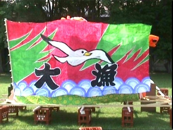 顔が一年生とは思えないほど上手いです。顔の迫力・目つきの鋭さが二年生並みの迫力でした。このよさこいっぽい威勢のいい表情とハチマキが個人的に大好きです。しかもこの顔を女の子が作ったというのだから脱帽です。近年女子の針金職人のレベルが上がっていることを証明してくれた作品。電飾も初挑戦にもかかわらず完璧に光っていました。髪貼りも全体的にとても丁寧でした。来年も期待しています。