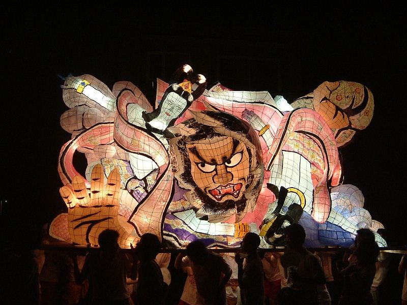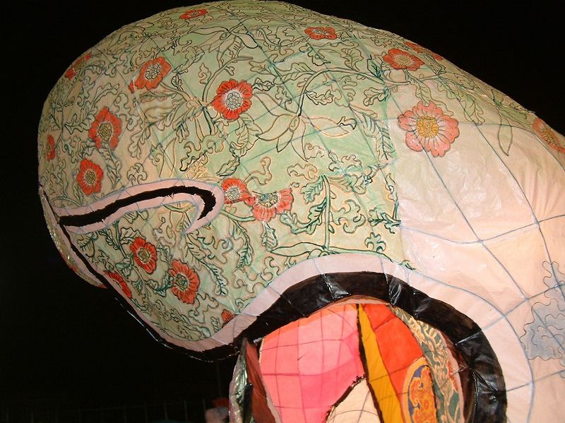 最後に余談だが、 最近の行灯は、構図をパソコンでデザインしたり、割り箸や粘土で模型を作ったり、紙は奉書紙を用いたり、蛍光灯を用いたり等々、年々新たなアイディアも生まれ、さらに進化し続けているんだなぁ~と感心した。でもその新しき中にも、古き良き伝統や美徳も受け継がれていて、本当に行灯行列は最高の文化だと思う。