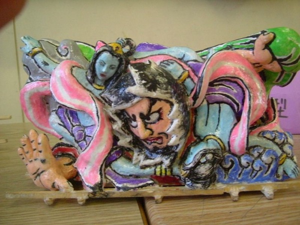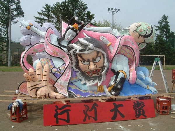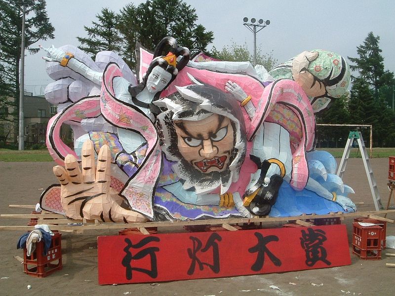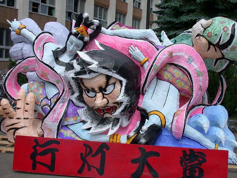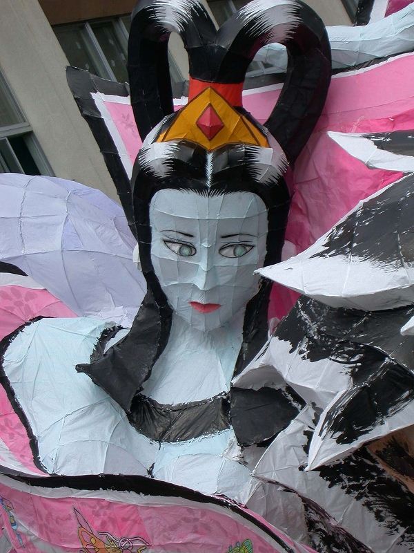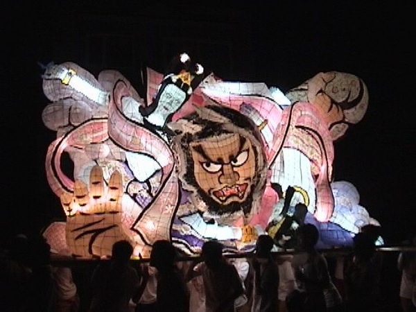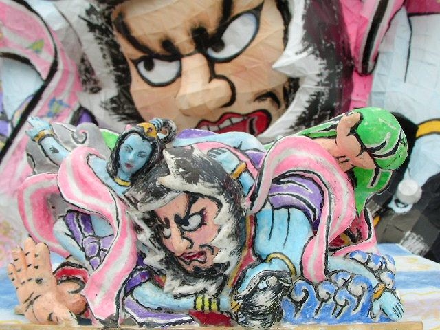 - 豪快さや荒々しさよりも、女性的美しさと曲線美が強調された作品だった。行灯やねぶたでもここまで「美」を追求した作品はあまり無いと思う。 針金で描いたとは思えないほど、素晴らしい曲線美で感動した。これほど曲線を美しく描いた作品は過去に例を見ない。人1体+女神2体の構図もパーフェクト。針金の技術もパーフェクト。