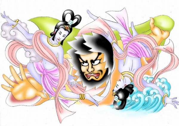 > 「洛水の女神」は、 > 『洛神賦』という中国の物語をモチーフにしています。 > 興味のある方は、是非調べてみてください。 > そうすれば後ろの漢詩の意味も、 > 全体の配色が淡い理由も、 > 女神が浮かべた表情が悲しい理由も、 > 男が伸ばした手の理由も、 > 分かってもらえると思います。