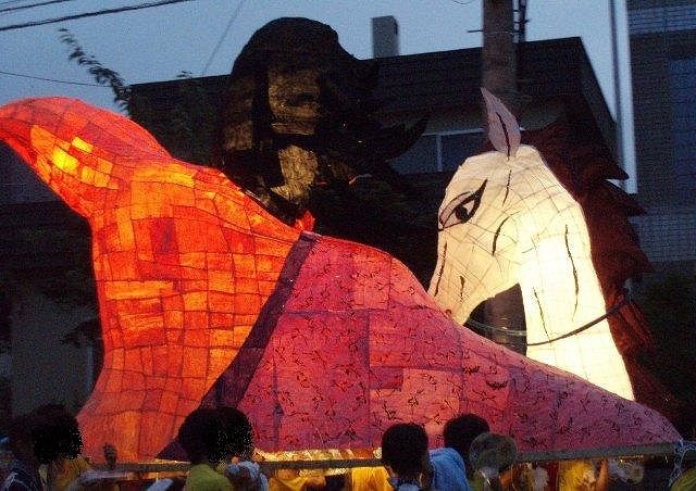 そんな作品。 この馬は凄い。 完璧。墨入れもかっこいいし。 手綱のホースも違和感が無かった。成功している。 顔が本番ぐらぐらしていたり、電飾の細かい部分、人の針金で多少金賞に及ばなかった。 しかし、金賞と銀賞は好みが分かれるところかも。これも僅差。 ちなみに、このクラスは電飾に一部懐中電灯を使っていた。(行列終わってみんあ帰った後も懐中電灯だけ光り続けてた。) 緊急手段的にはありかも。 ただ、ちょっといくらなんでもこのクラスは使いすぎやと思ったけどねぇ。