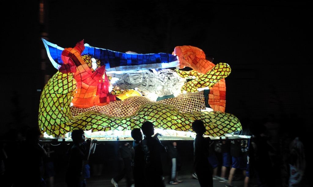 顔の造詣、つまり針金の技術はもちろんぴか一ですが、さらに特筆すべきはその墨塗りの上手さ! 眼力を籠め、見るものを射抜くような強さを行灯に与えています。 髪の墨塗りも素晴らしい! ただ、顔が素晴らしい反面、体が少し単調であるかなという気がしました。 色もちょっと単色かも。 蛇の巻きつき方はなかなか良いです。