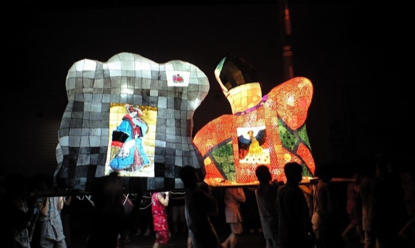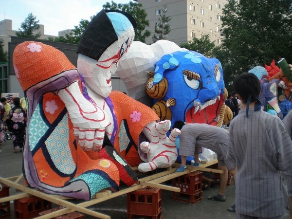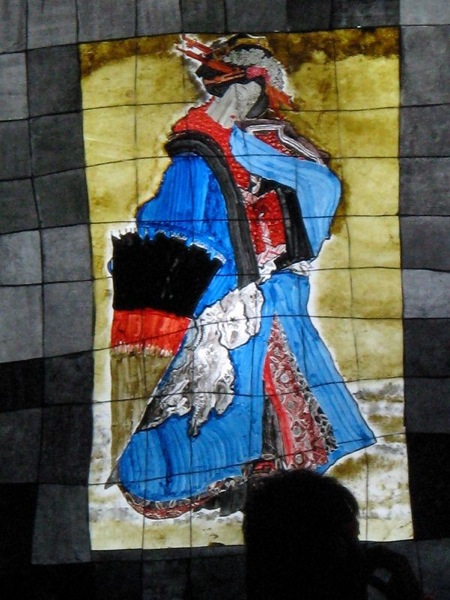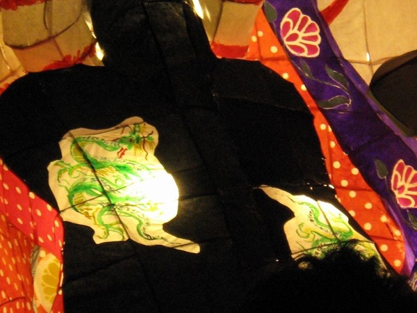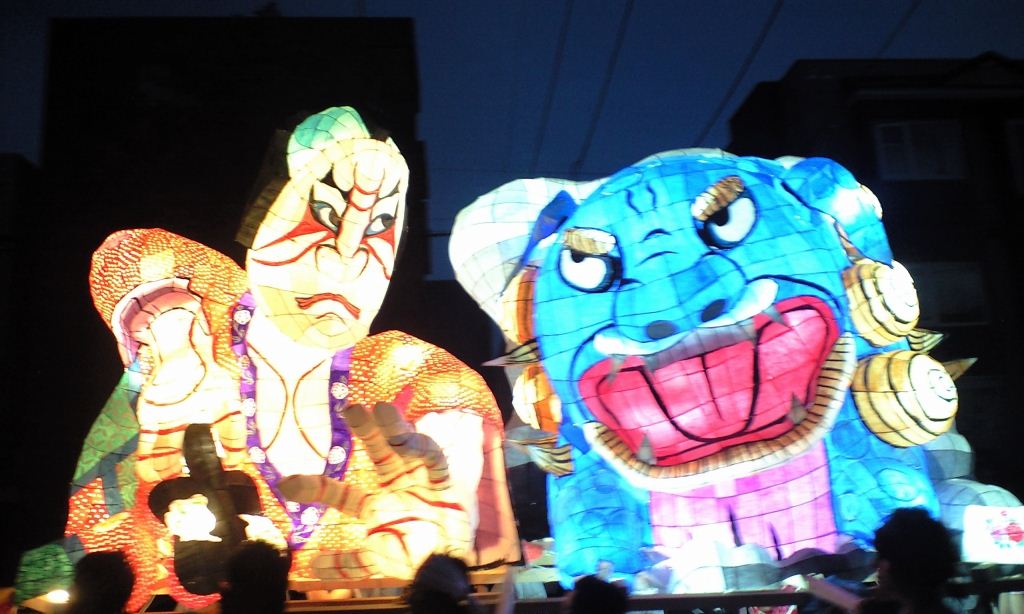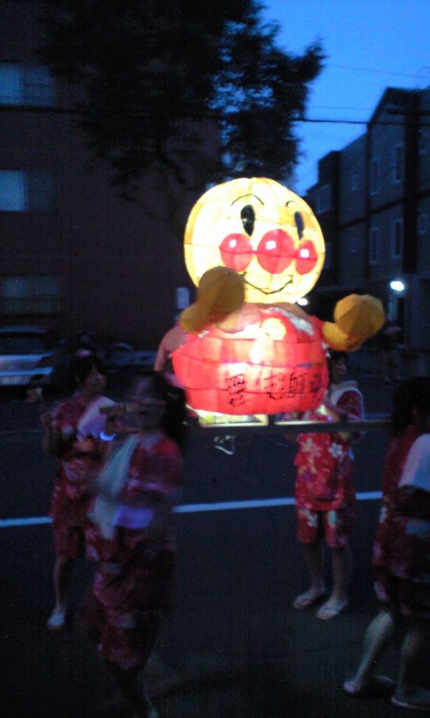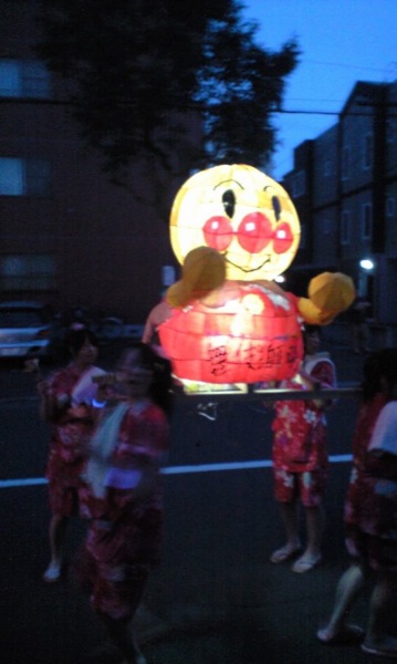 男の人の服が工夫されてましたね。ロウを落としたのかなぁ。本場ねぶたのやってるカンジの事やってておぉ~っておもいました。顔にもちゃんと色塗ってたし、ちょんまげの行灯は北高では珍しいですよね。