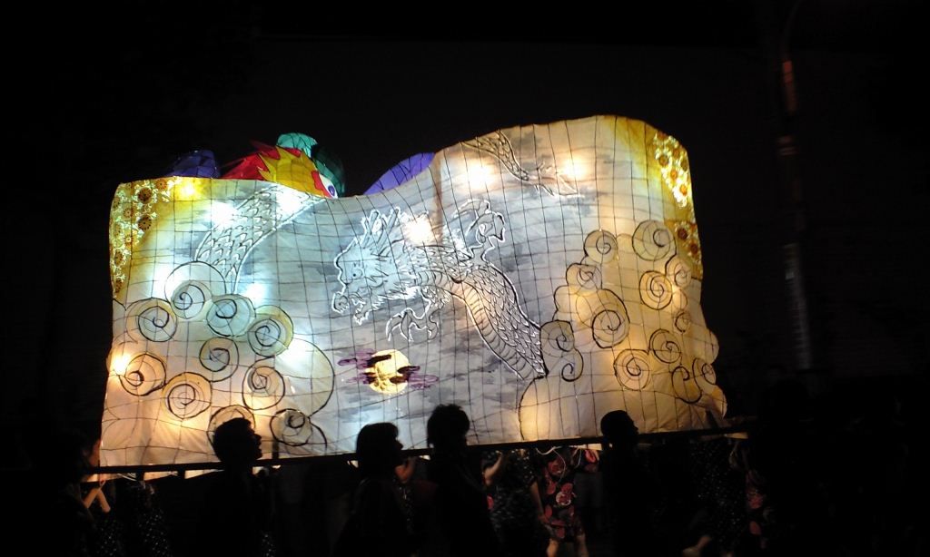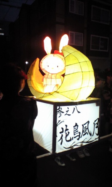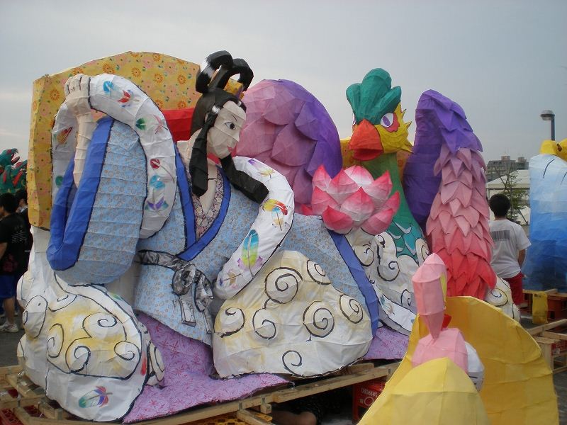 綺麗な行灯でした。洛水とかを連想するカンジで。ただ、難しいトコは全部雲(?)で隠しちゃってたのが残念でした。雲って色もないしね。でも鳥のカンジとかはかなりよかったです。最初はポーズがもっとインパクトあれば・・・とか思ってたんですが、鳥のポーズって難しいですよね。やっぱりあれでよかった気がします。てかよく考えられた配置だったんだなぁ、と逆に感心したりなんかした未熟者ですww