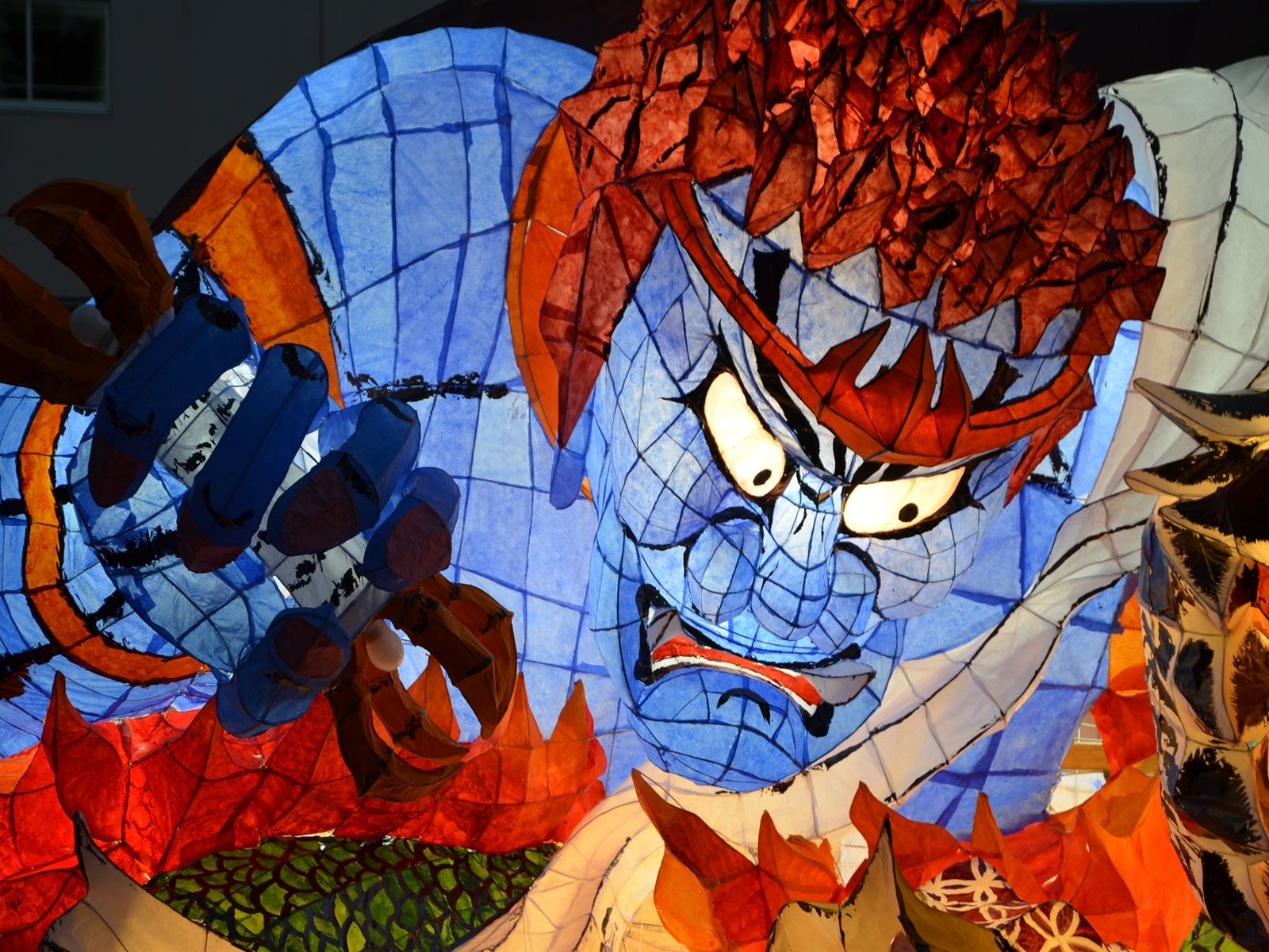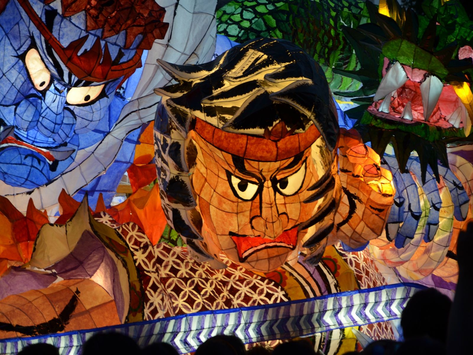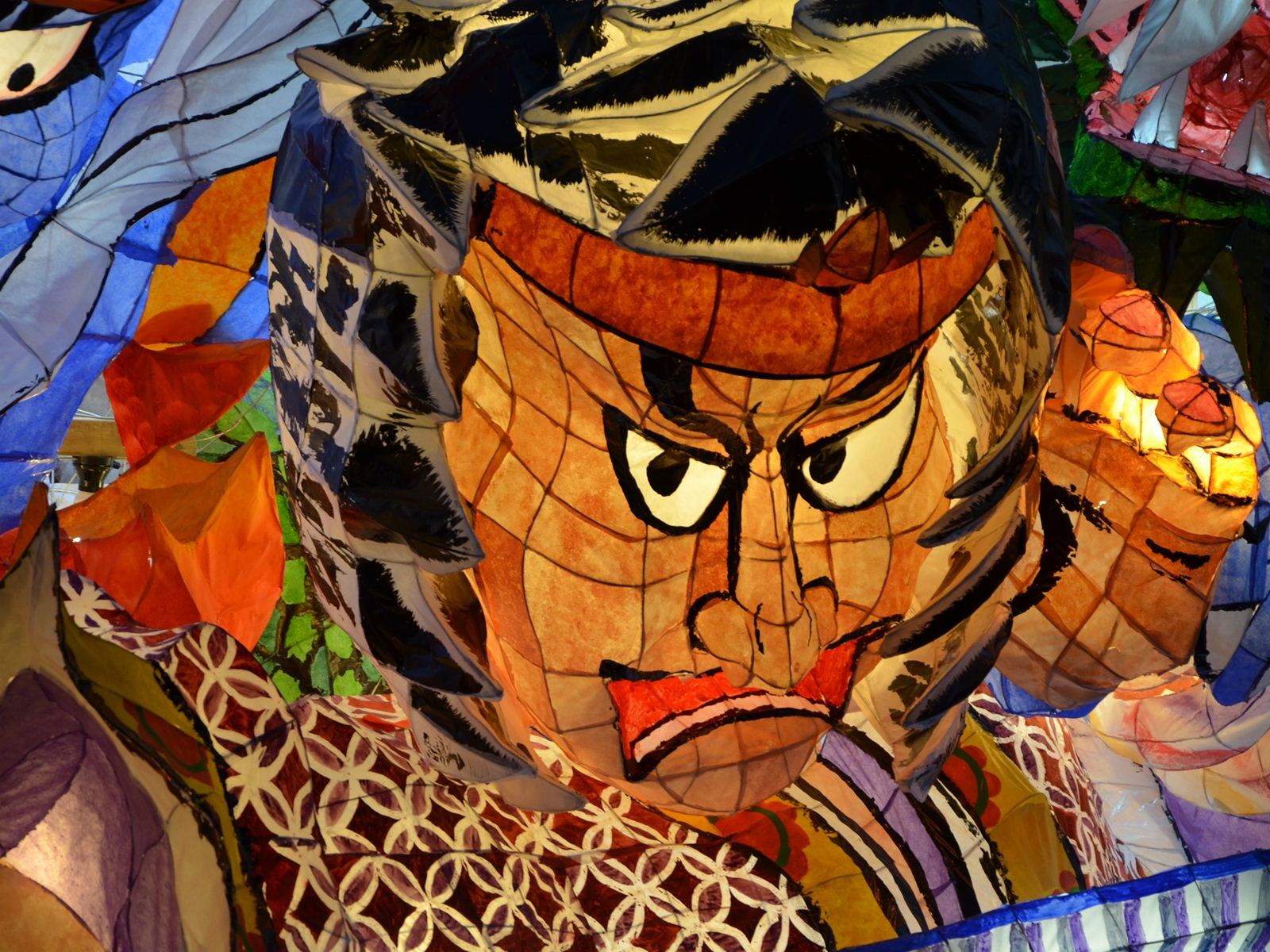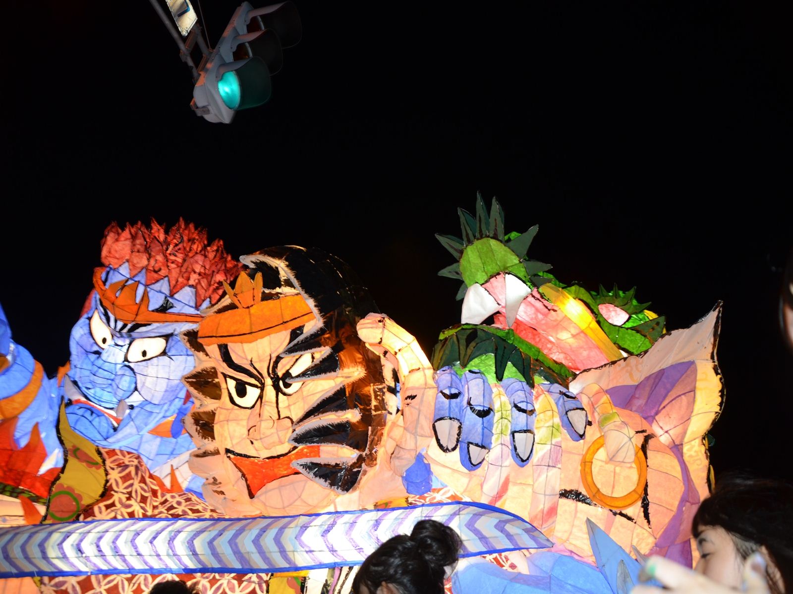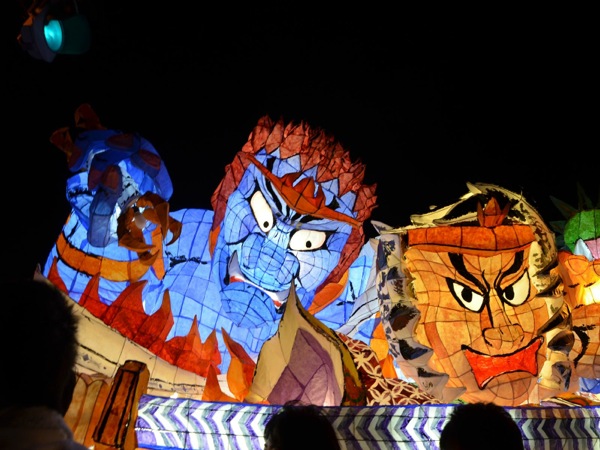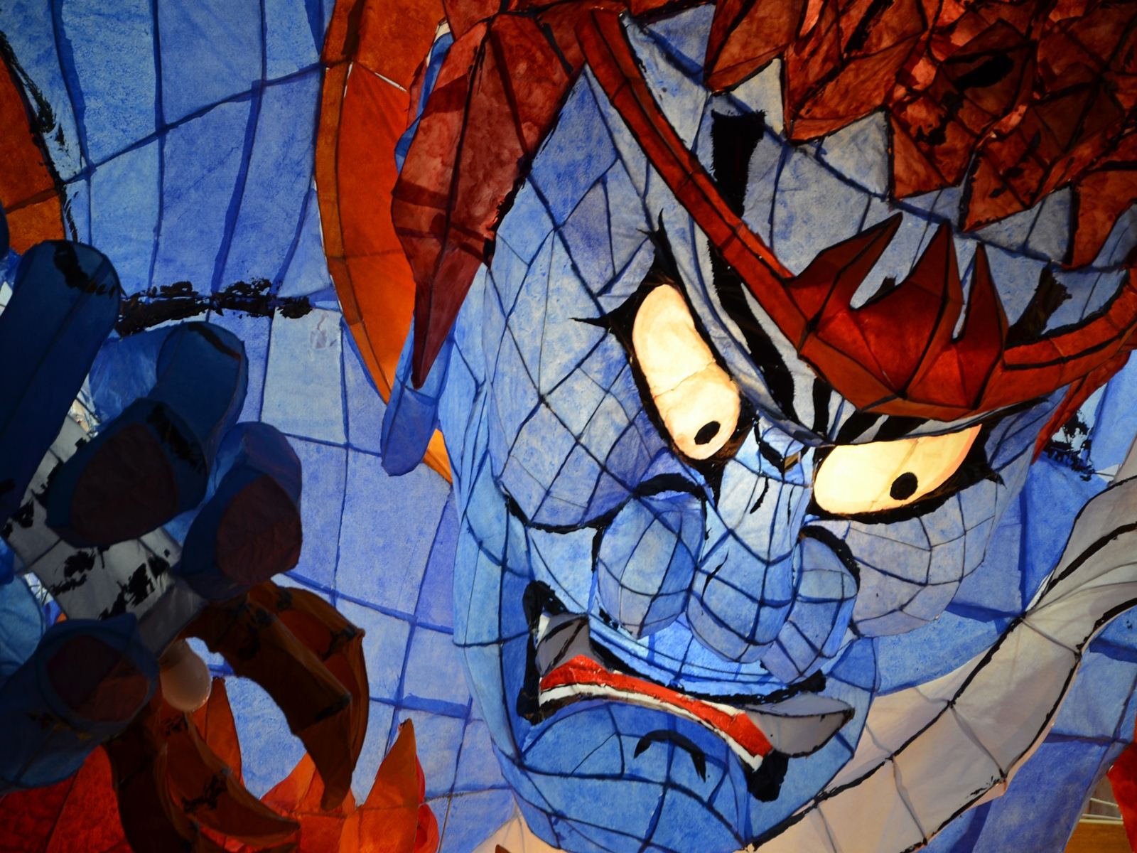 欲を言うと、不動明王に比べると人間のほう(特に顔)が若干物足りなさを感じるかなというところ、光っていない部分があったり紙の間から光が漏れていたりと光ムラがあるところ、この2点が良くなるともっと素晴らしい行灯になるかなと思いました。