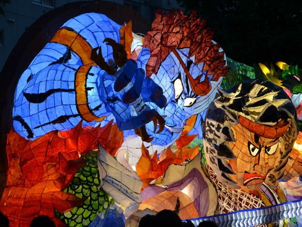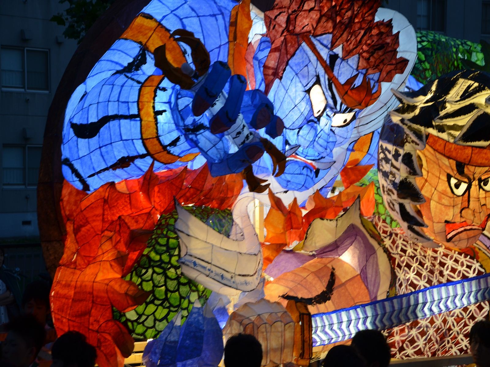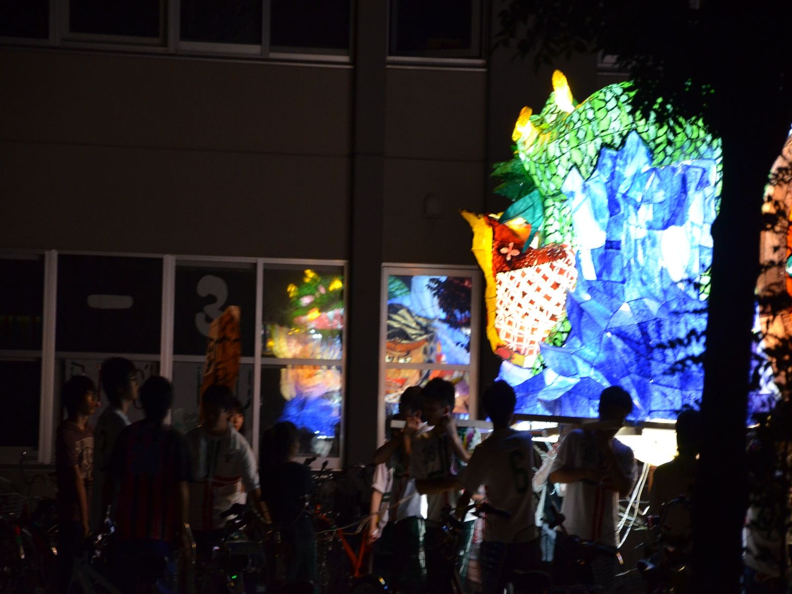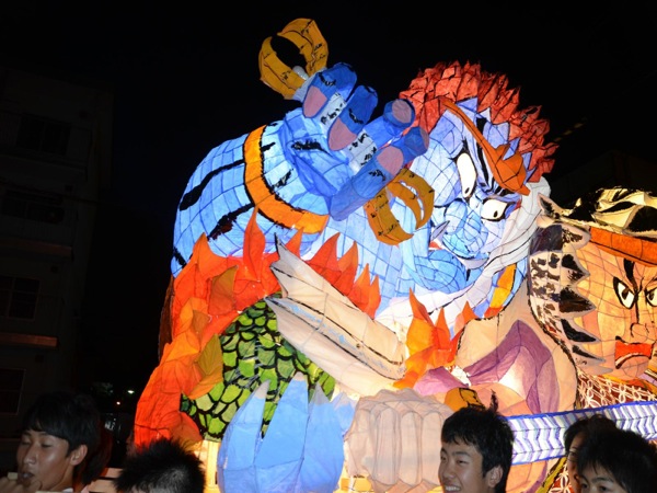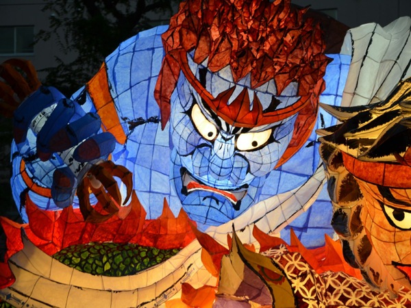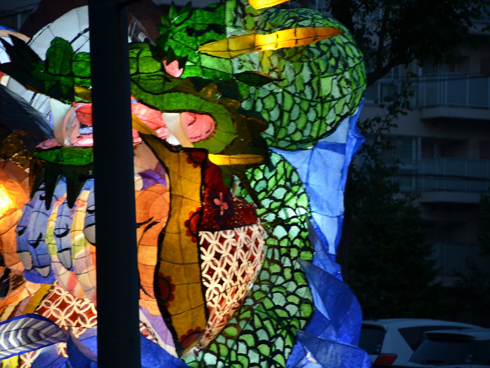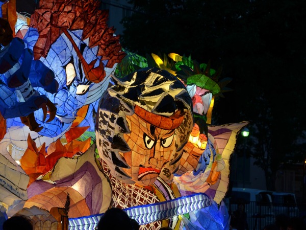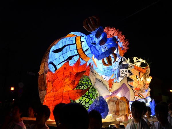 欲を言うと、不動明王に比べると人間のほう(特に顔)が若干物足りなさを感じるかなというところ、光っていない部分があったり紙の間から光が漏れていたりと光ムラがあるところ、この2点が良くなるともっと素晴らしい行灯になるかなと思いました。