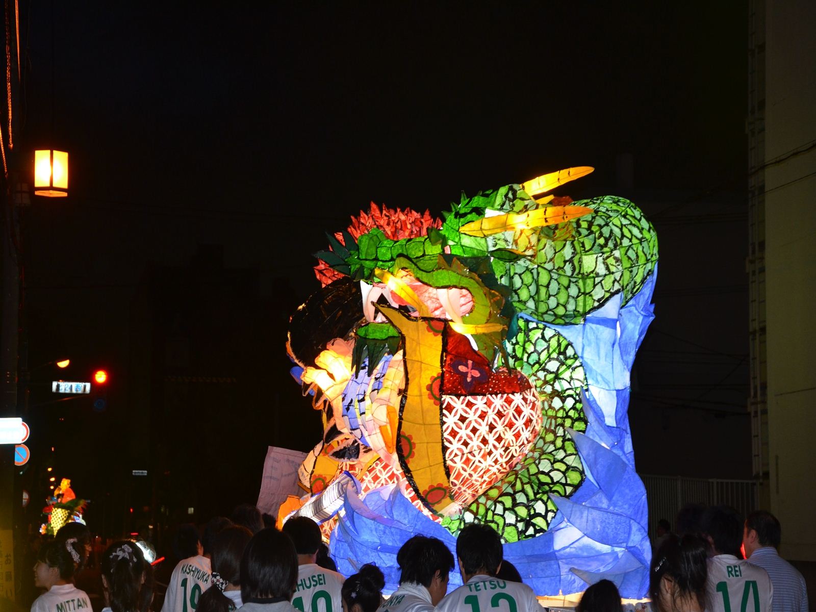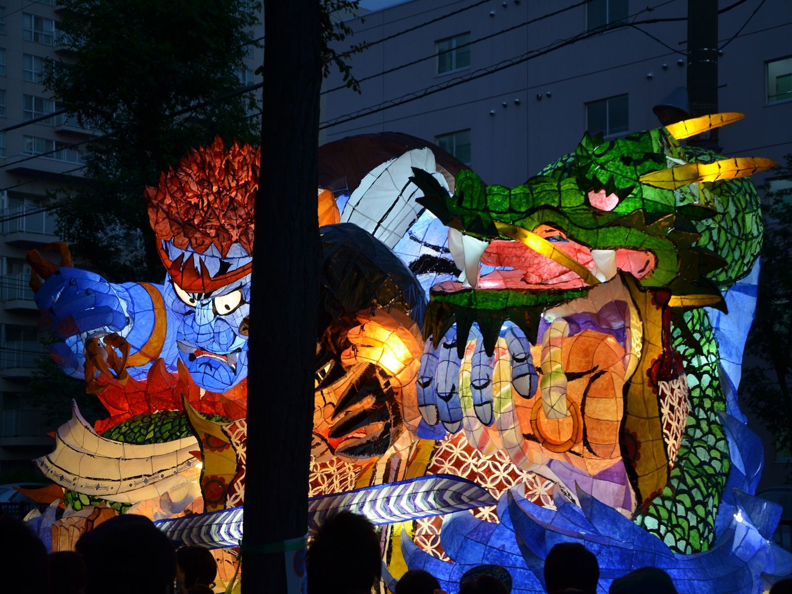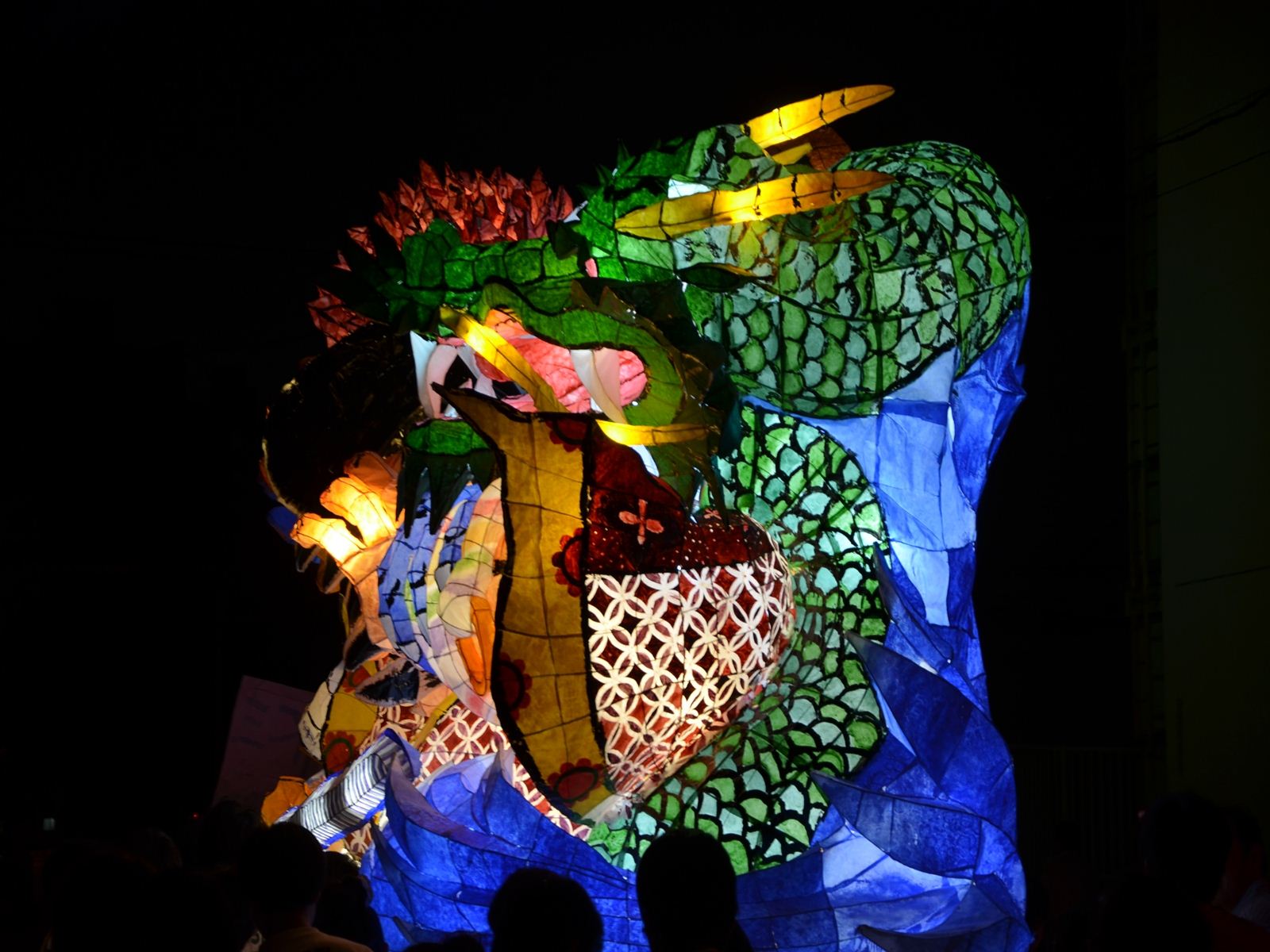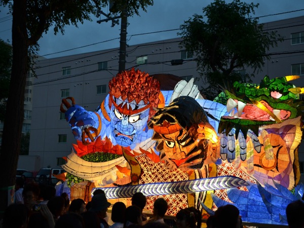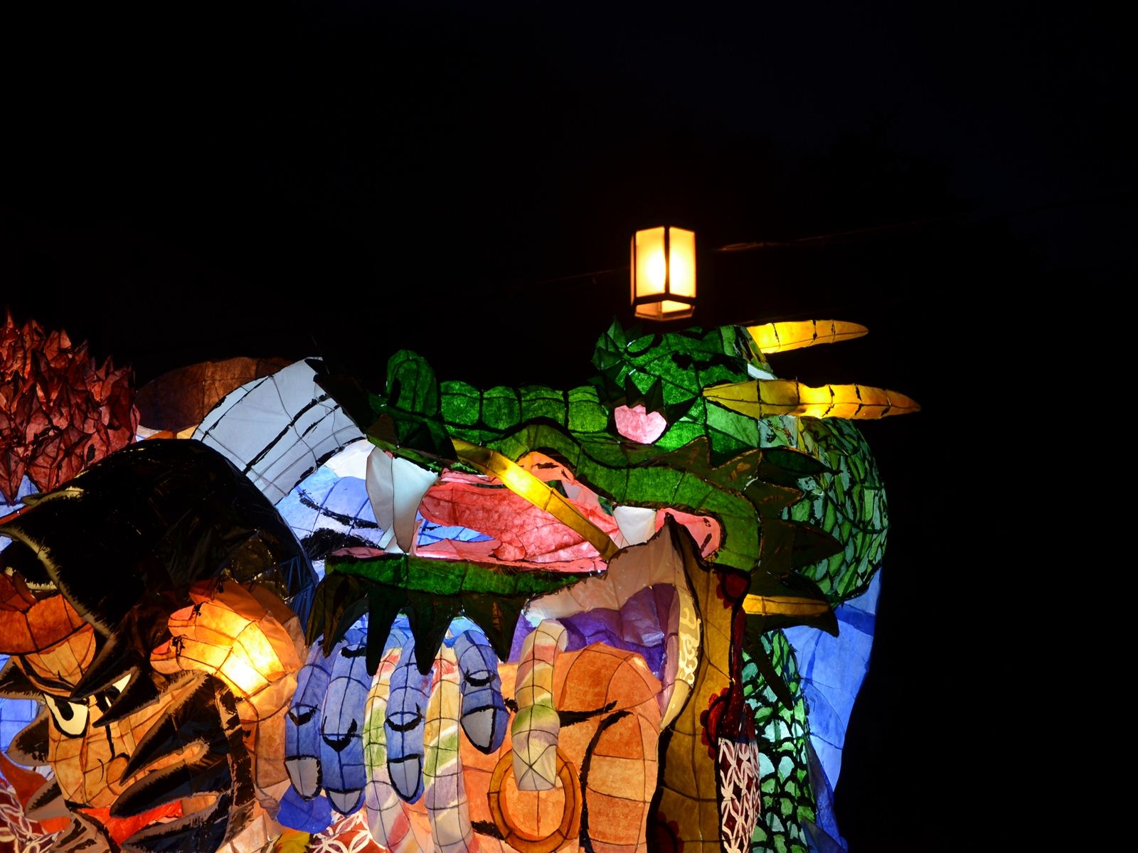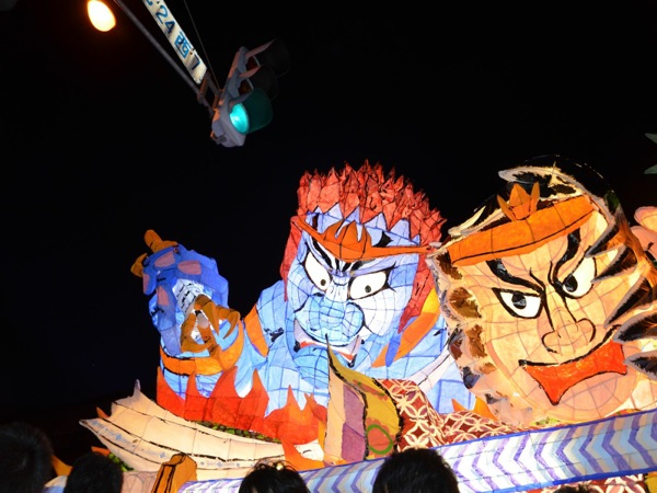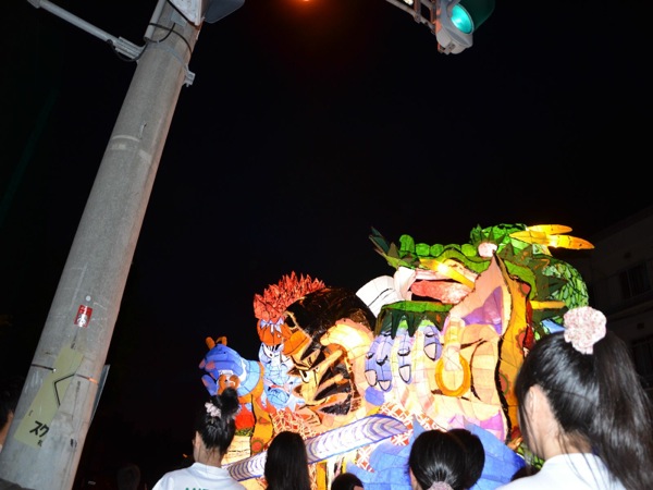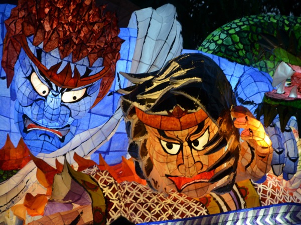 欲を言うと、不動明王に比べると人間のほう(特に顔)が若干物足りなさを感じるかなというところ、光っていない部分があったり紙の間から光が漏れていたりと光ムラがあるところ、この2点が良くなるともっと素晴らしい行灯になるかなと思いました。