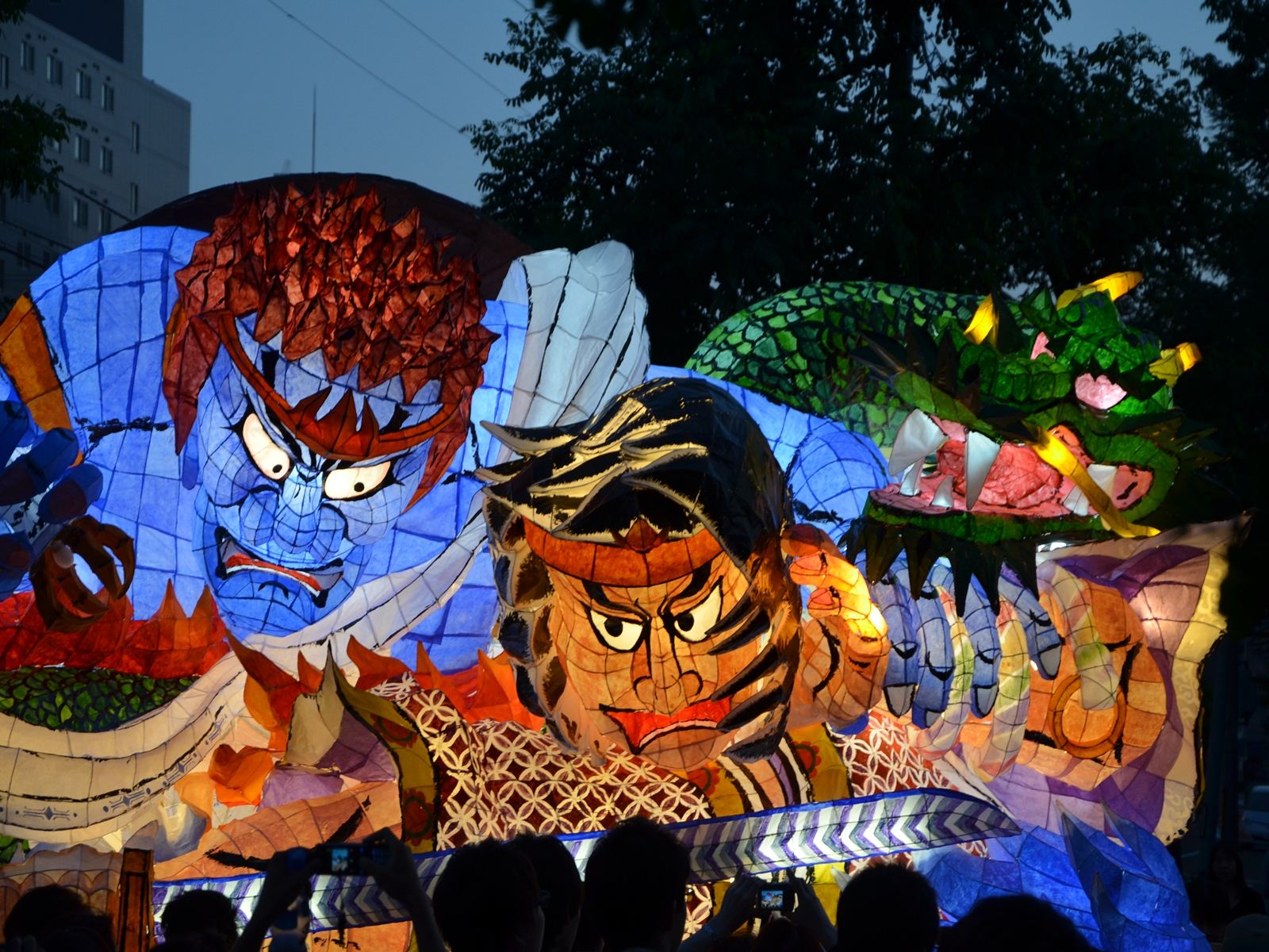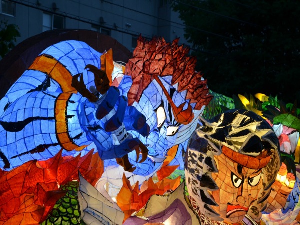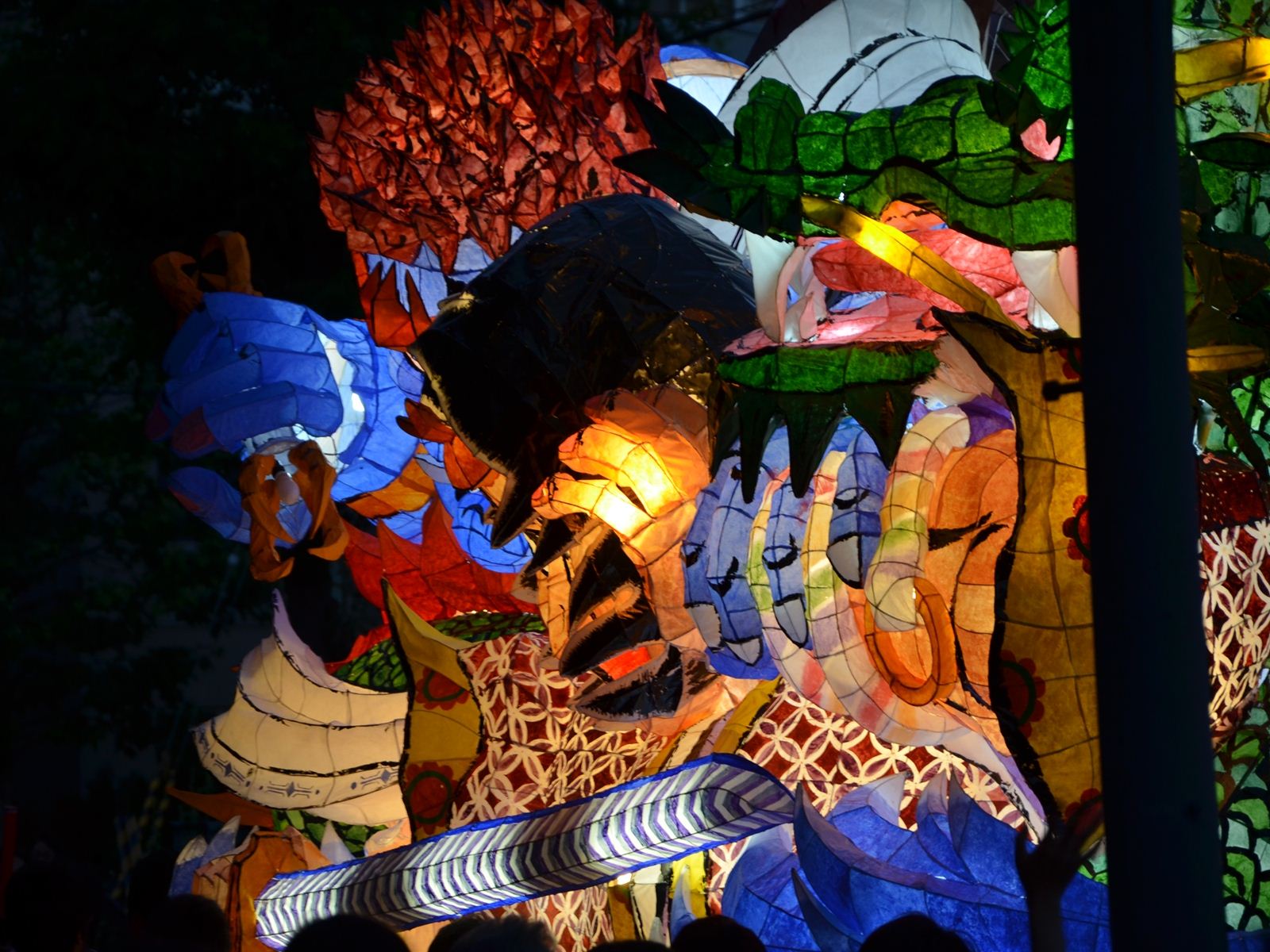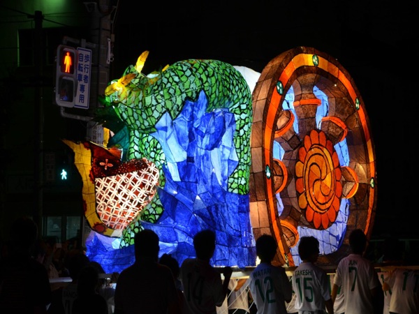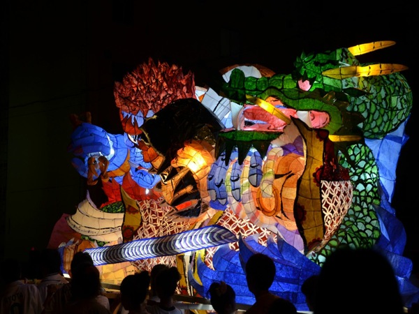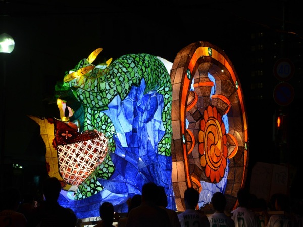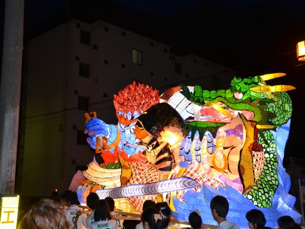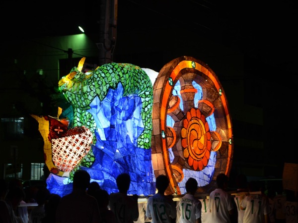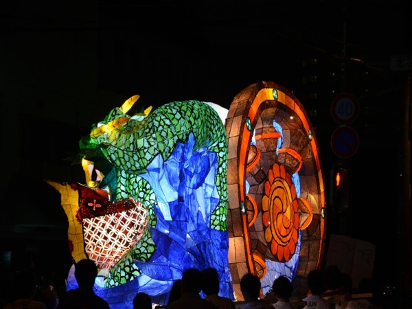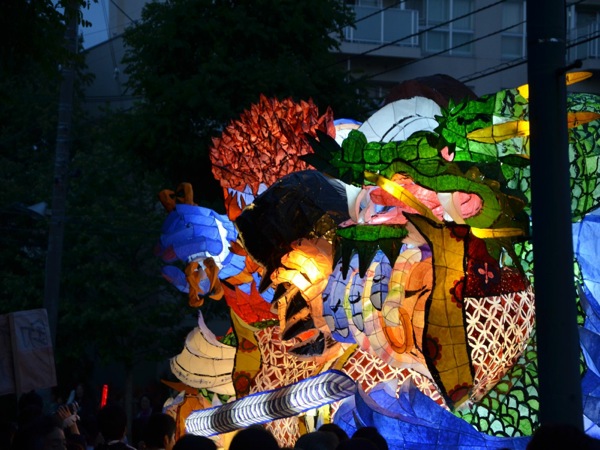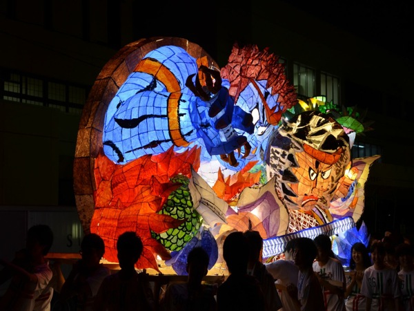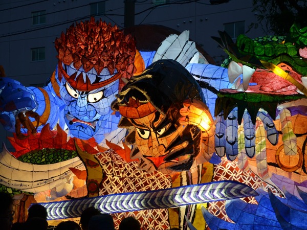 欲を言うと、不動明王に比べると人間のほう(特に顔)が若干物足りなさを感じるかなというところ、光っていない部分があったり紙の間から光が漏れていたりと光ムラがあるところ、この2点が良くなるともっと素晴らしい行灯になるかなと思いました。