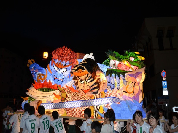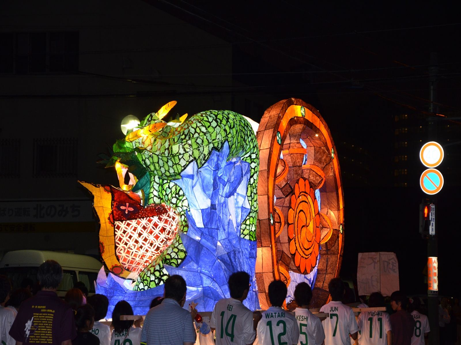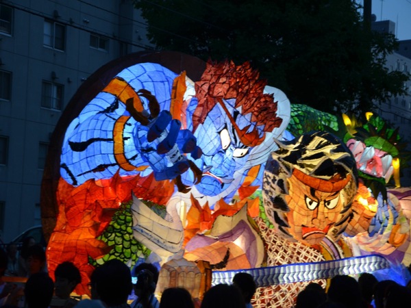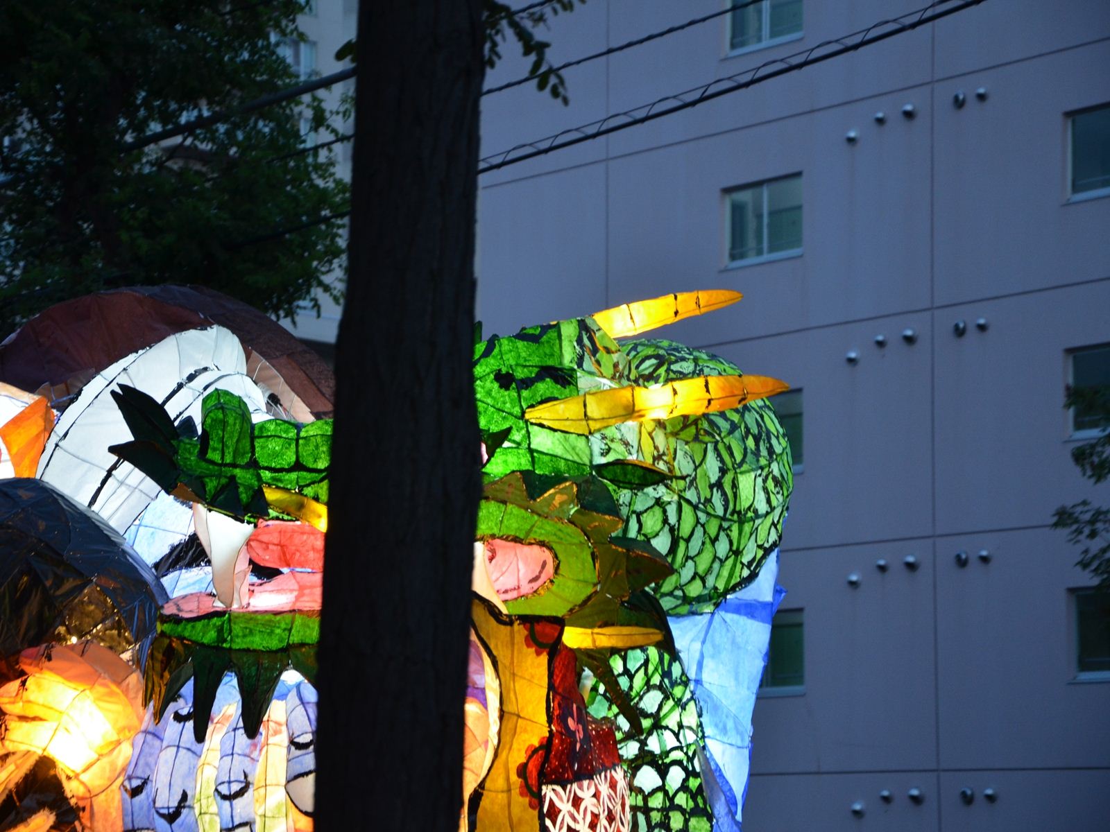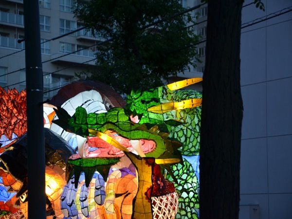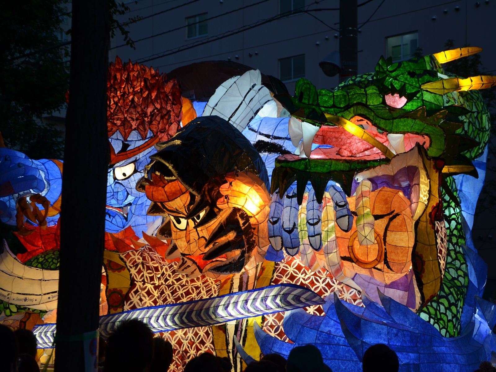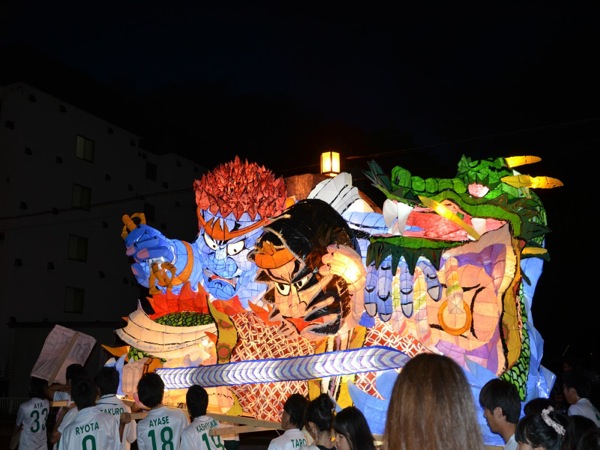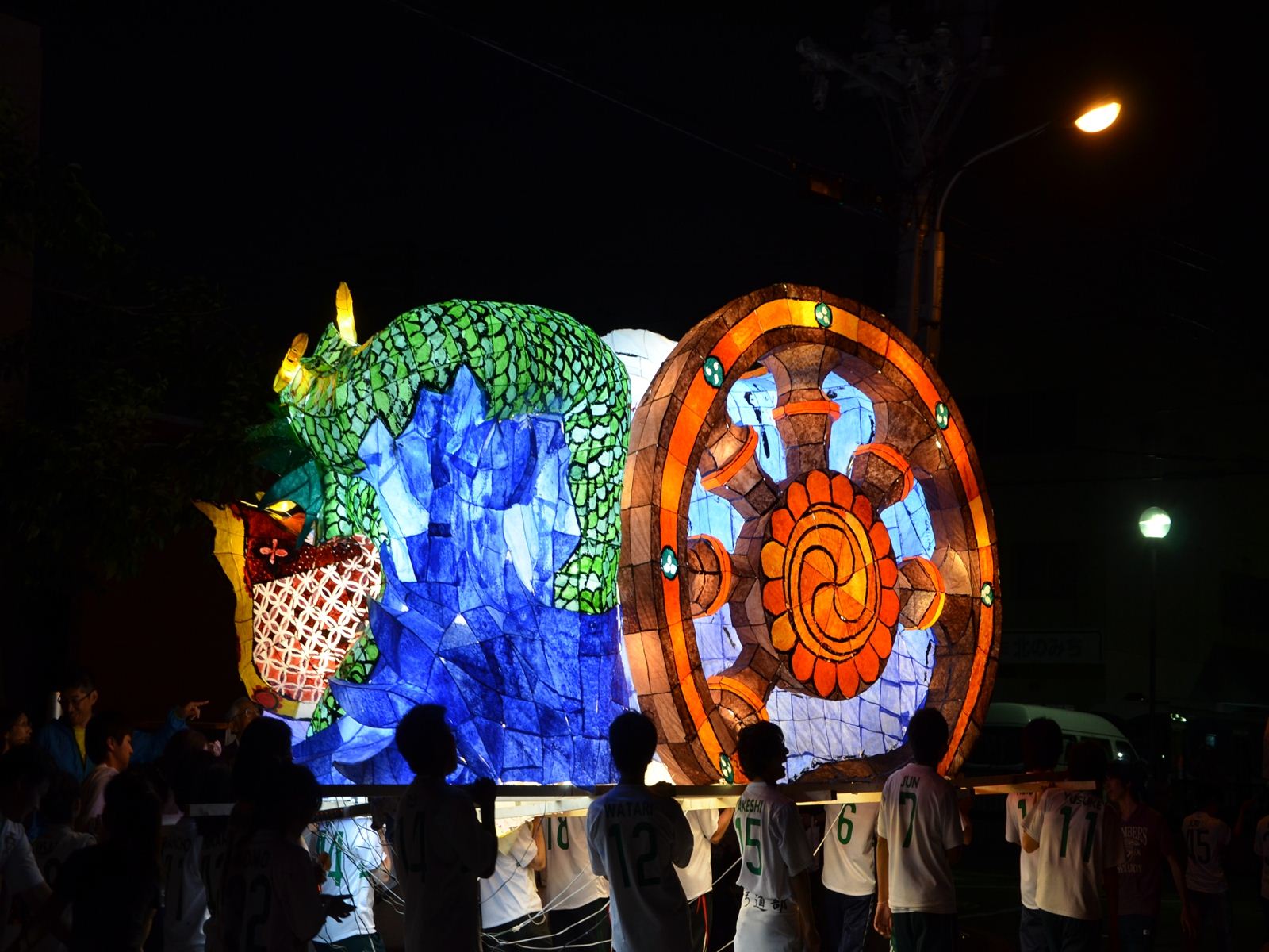 欲を言うと、不動明王に比べると人間のほう(特に顔)が若干物足りなさを感じるかなというところ、光っていない部分があったり紙の間から光が漏れていたりと光ムラがあるところ、この2点が良くなるともっと素晴らしい行灯になるかなと思いました。