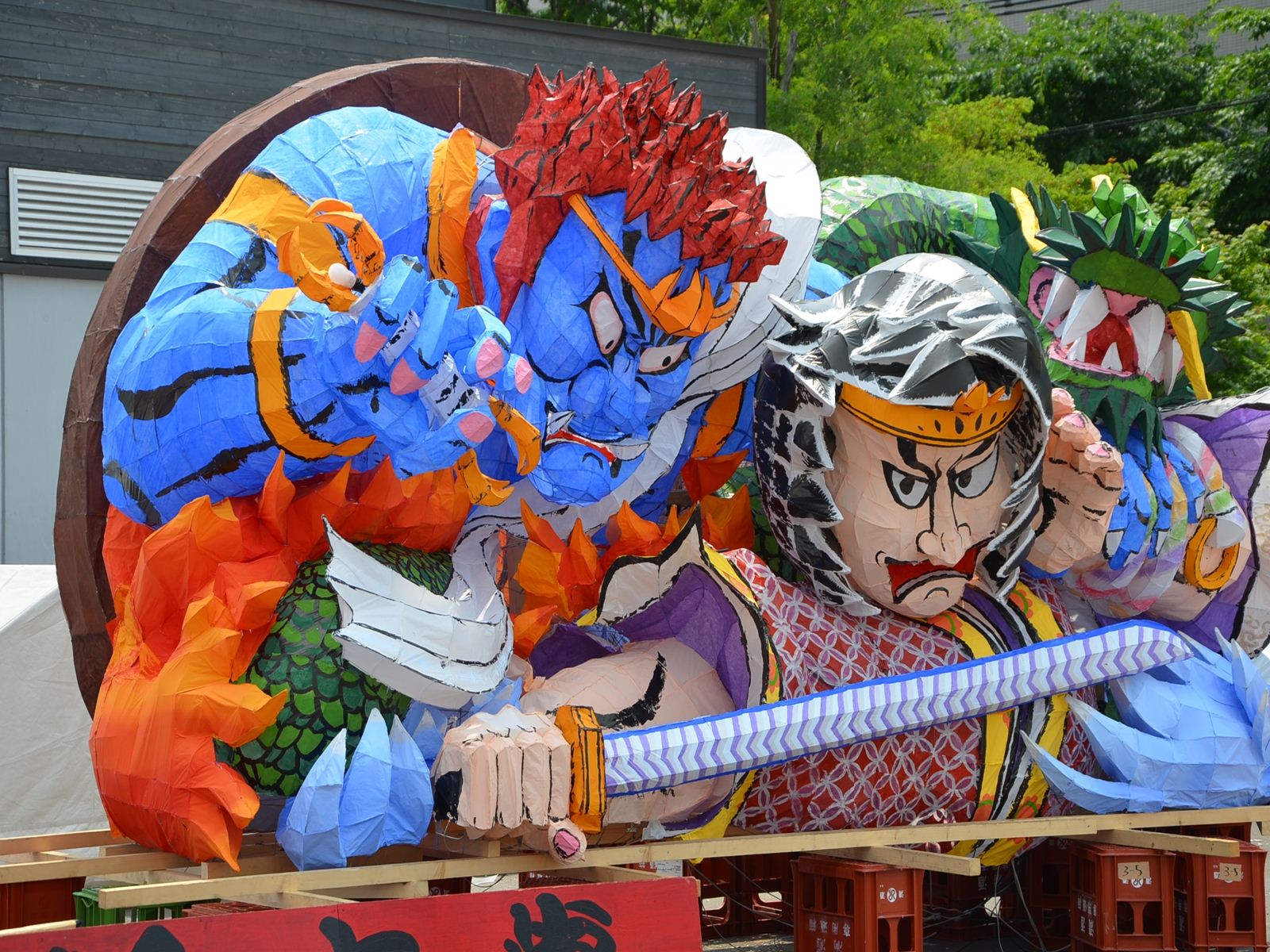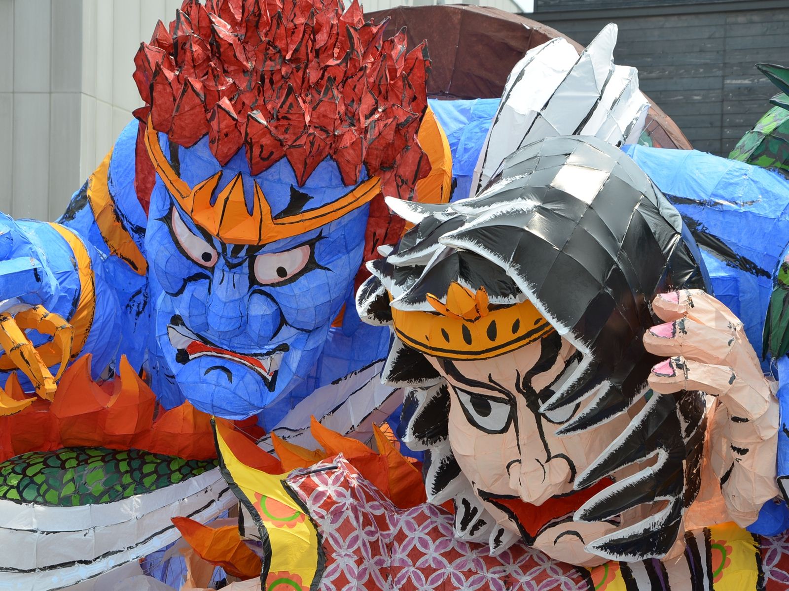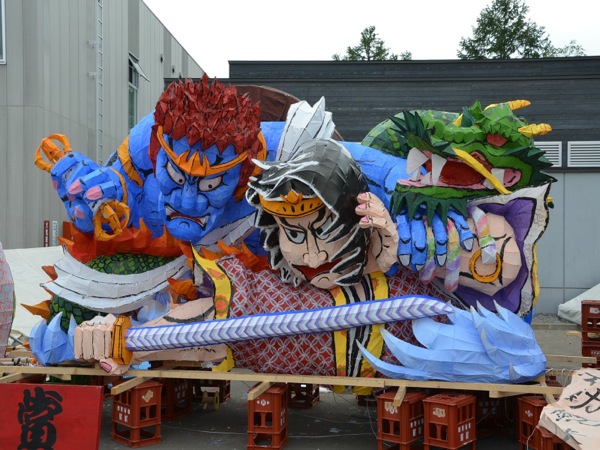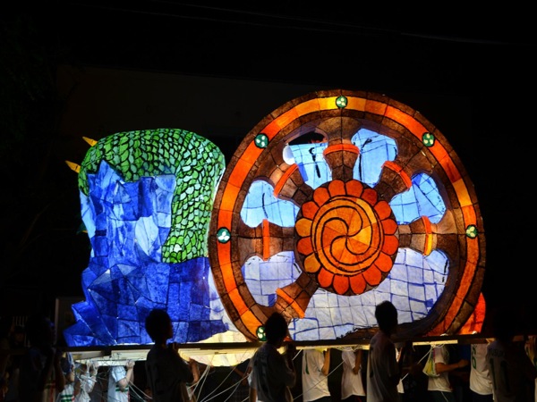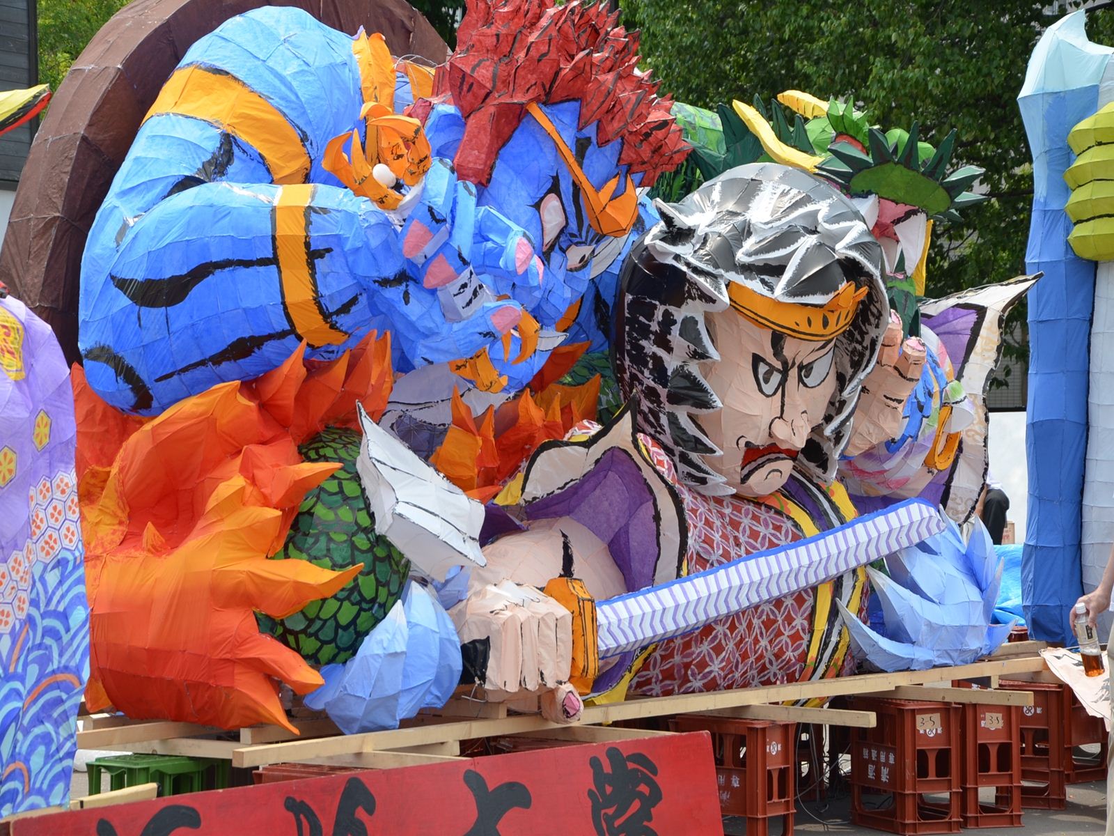 不動明王の迫力がやばいです。顔がとても上手く、その憤怒の表情を表現する針金も素晴らしいのですが、もっといいのは頭の位置と角度ですね。絶妙な角度です。 構図はかなり良く練られているなと感じました。だいたいの行灯はどこかしら大きな欠点があるのですが、この行灯は大きな欠点は見つかりませんでした。 また、人2体+龍という豪華な構図でもそれを作りきったスピード(一部雑なところはありますが)はすごいと思いました。