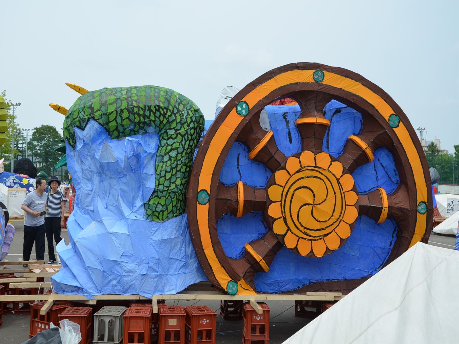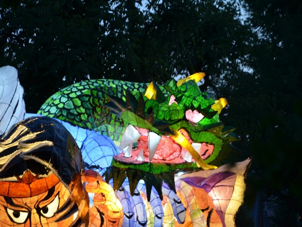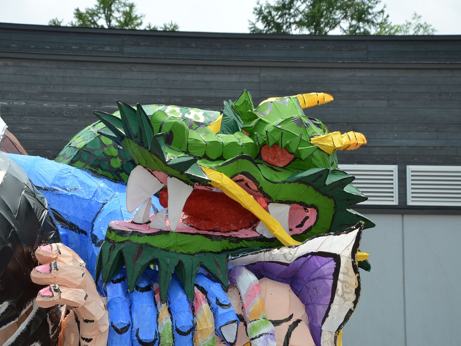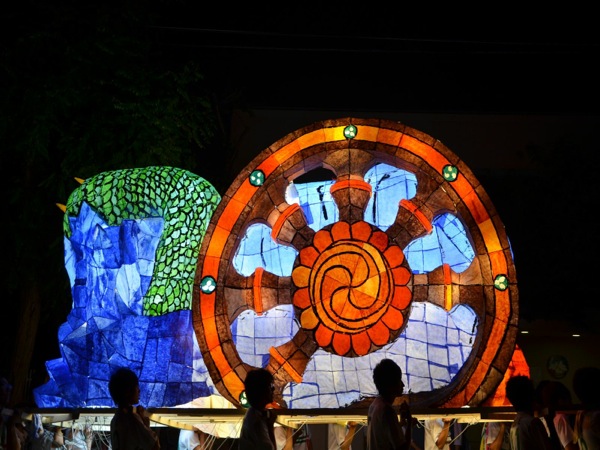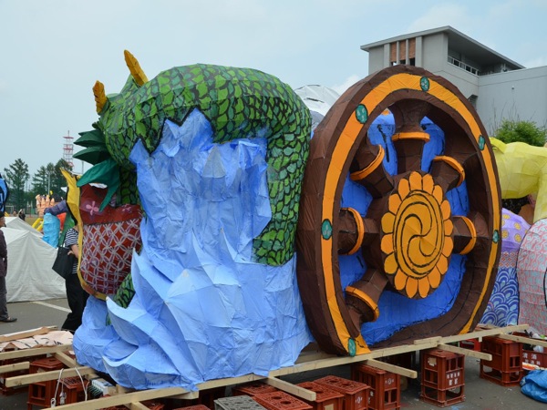 不動明王の迫力がやばいです。顔がとても上手く、その憤怒の表情を表現する針金も素晴らしいのですが、もっといいのは頭の位置と角度ですね。絶妙な角度です。 構図はかなり良く練られているなと感じました。だいたいの行灯はどこかしら大きな欠点があるのですが、この行灯は大きな欠点は見つかりませんでした。 また、人2体+龍という豪華な構図でもそれを作りきったスピード(一部雑なところはありますが)はすごいと思いました。