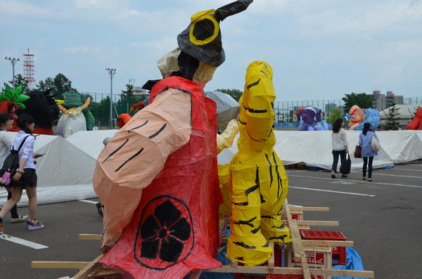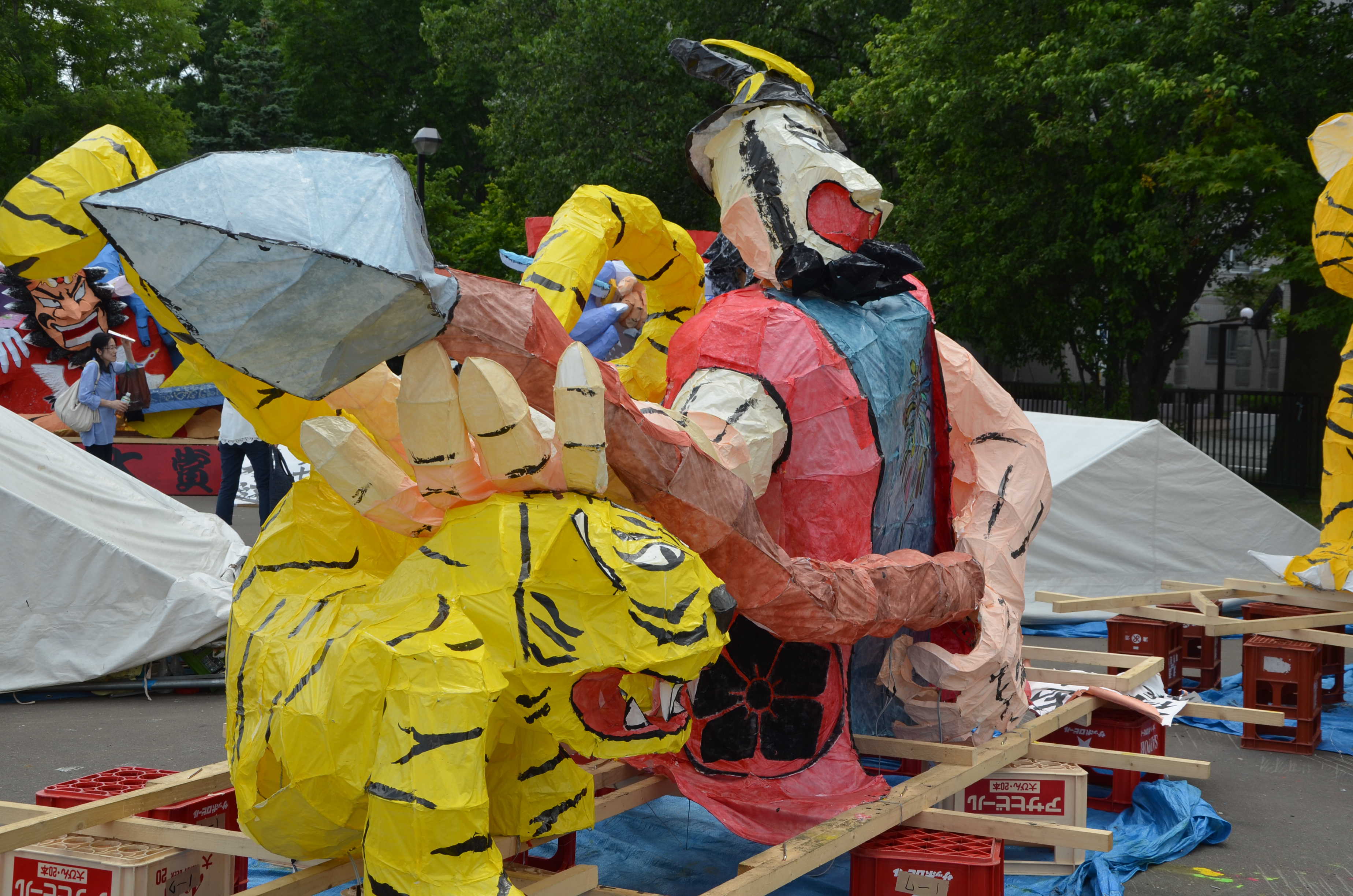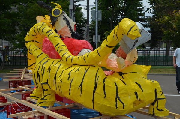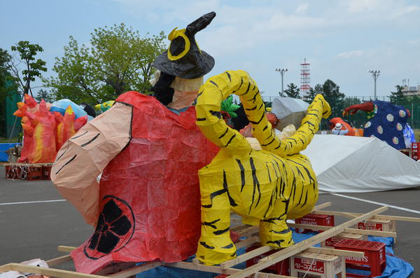 槍がぐにゃぐにゃになってしまっているのがまず目につきます。このような細くて真っ直ぐなものは中に細い木材を入れるといいですよ。