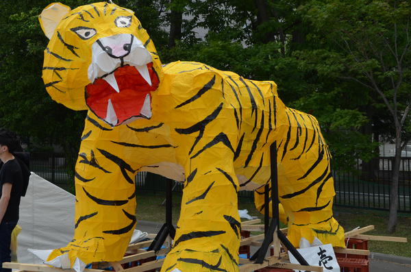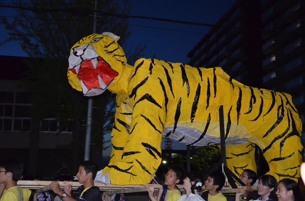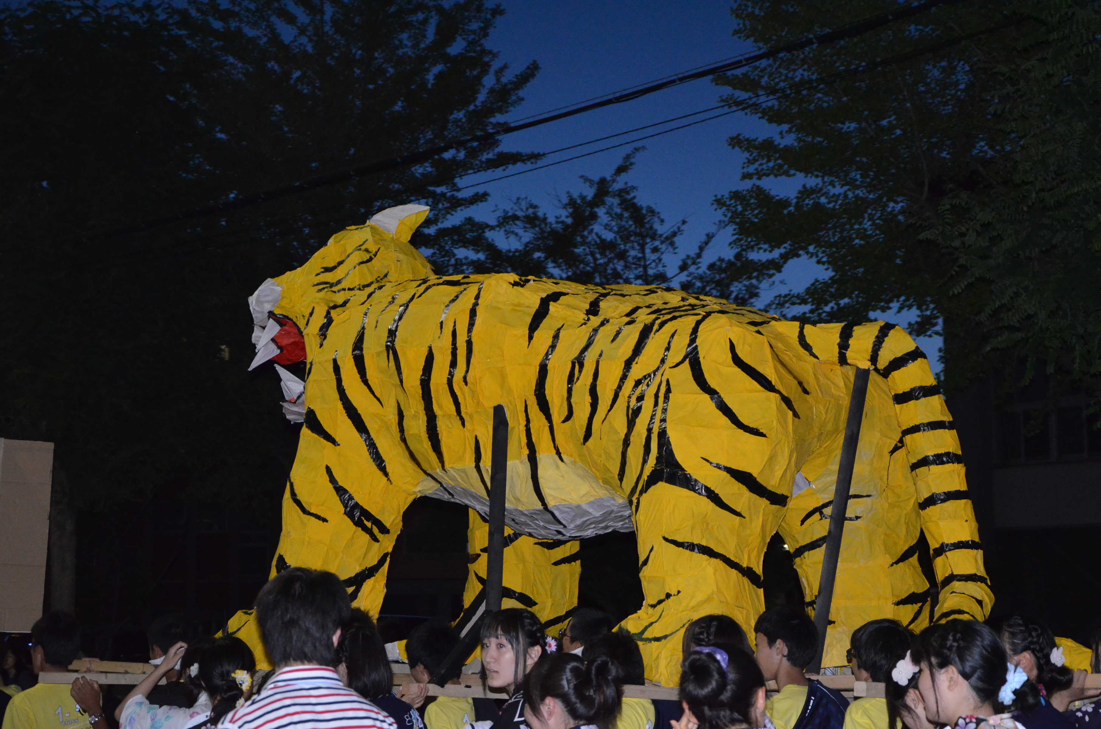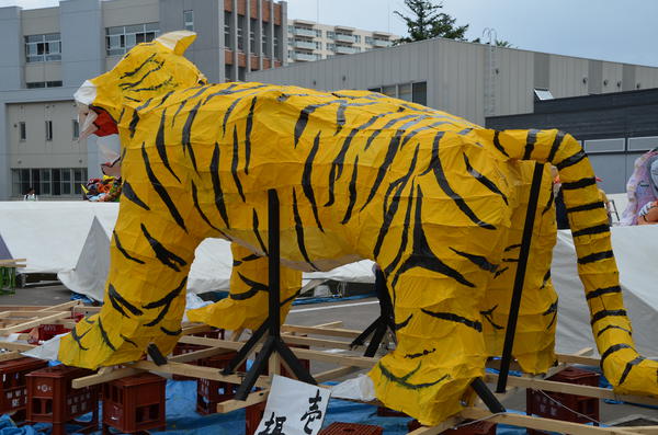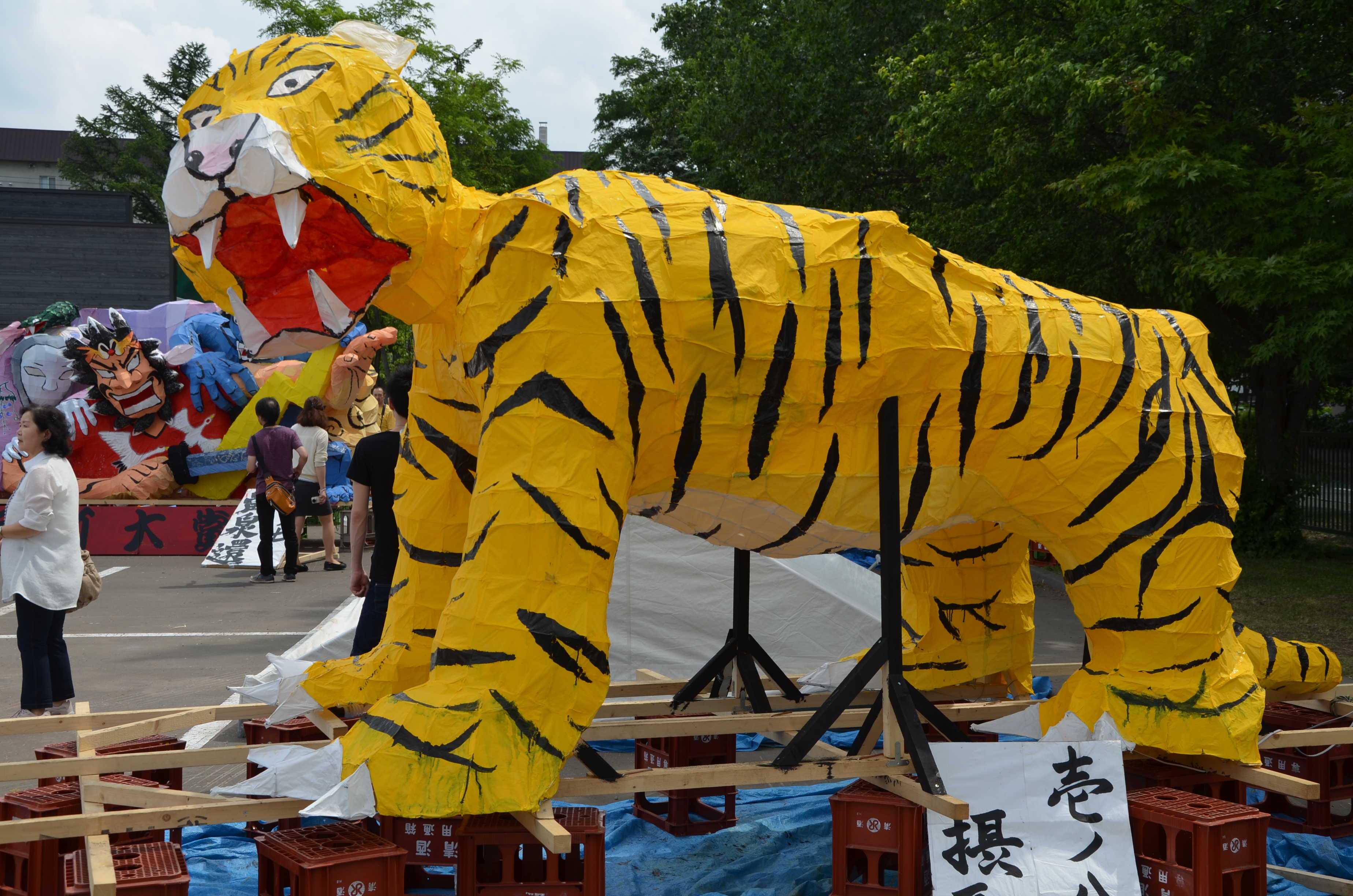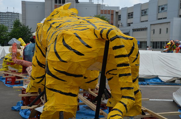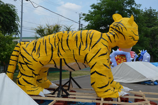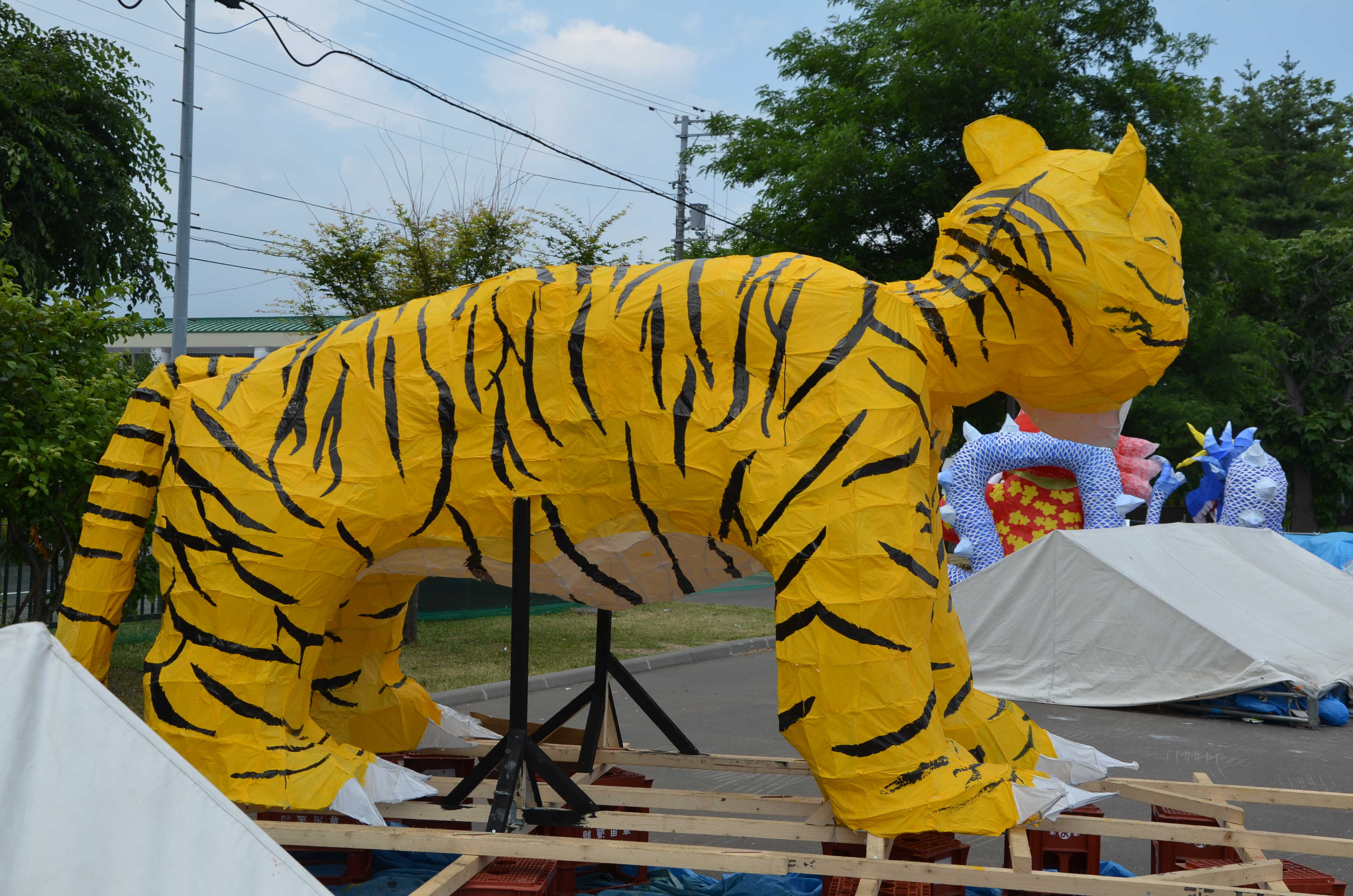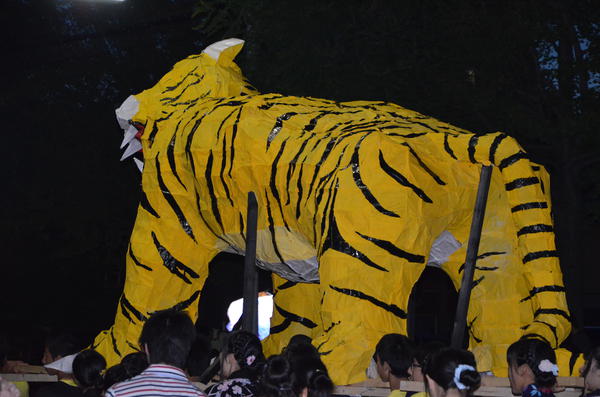 完全に下が空いている行灯を実際に見るのは初めてでした。虎の腹を作るとき上を向きながらやったのかな〜なんか落ちてきそうでこわいな〜とか想像してました。