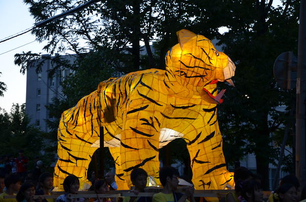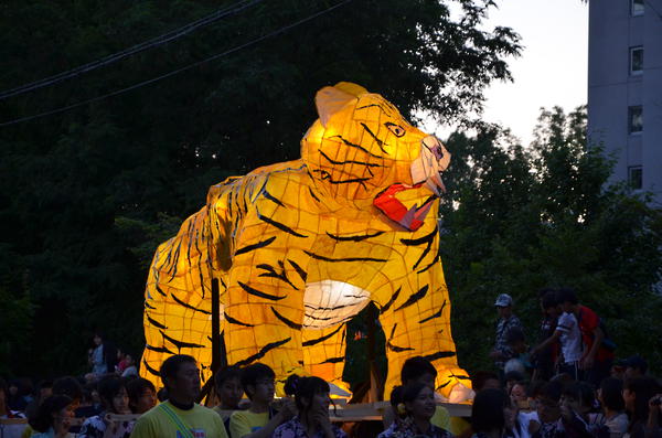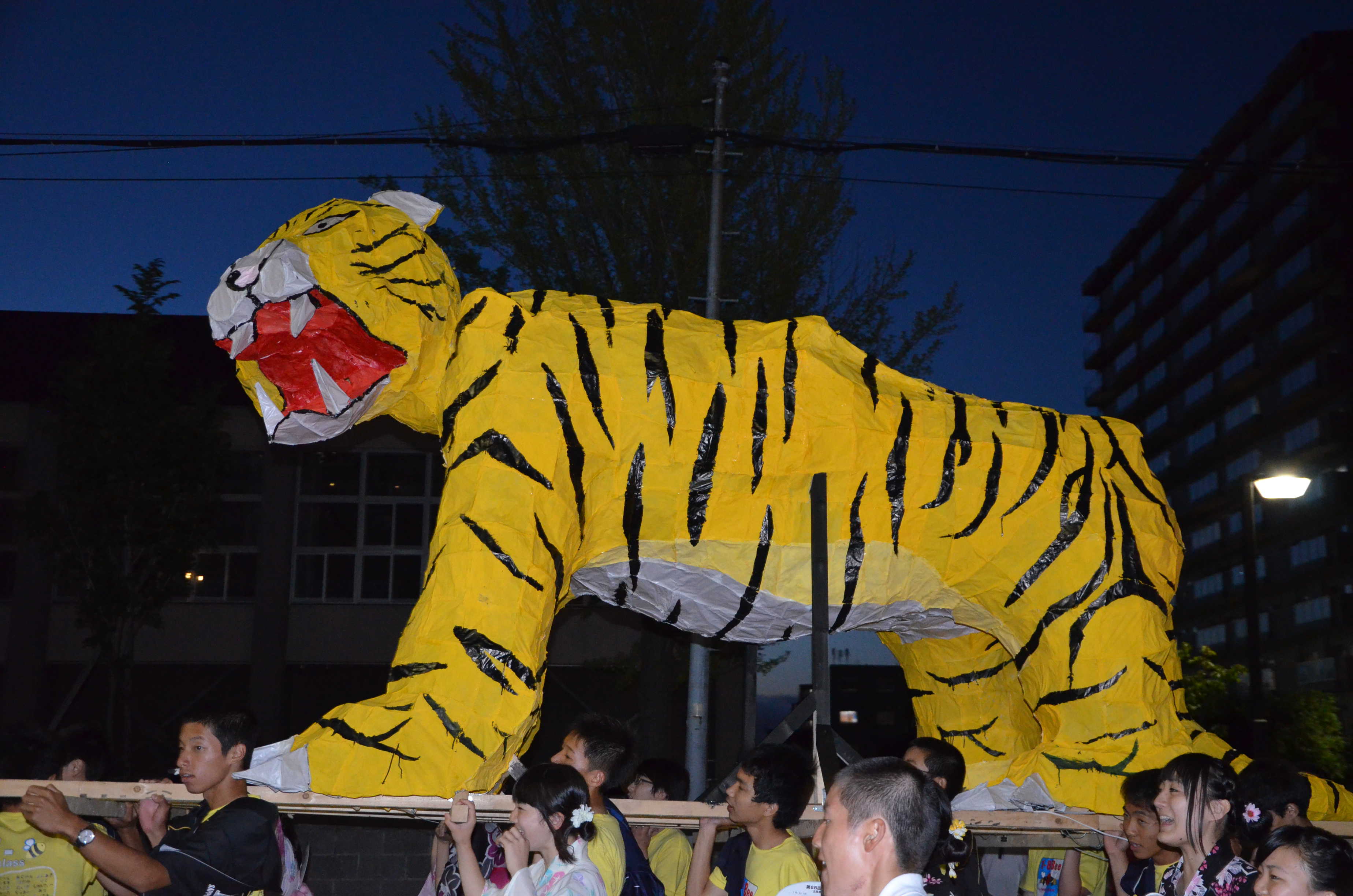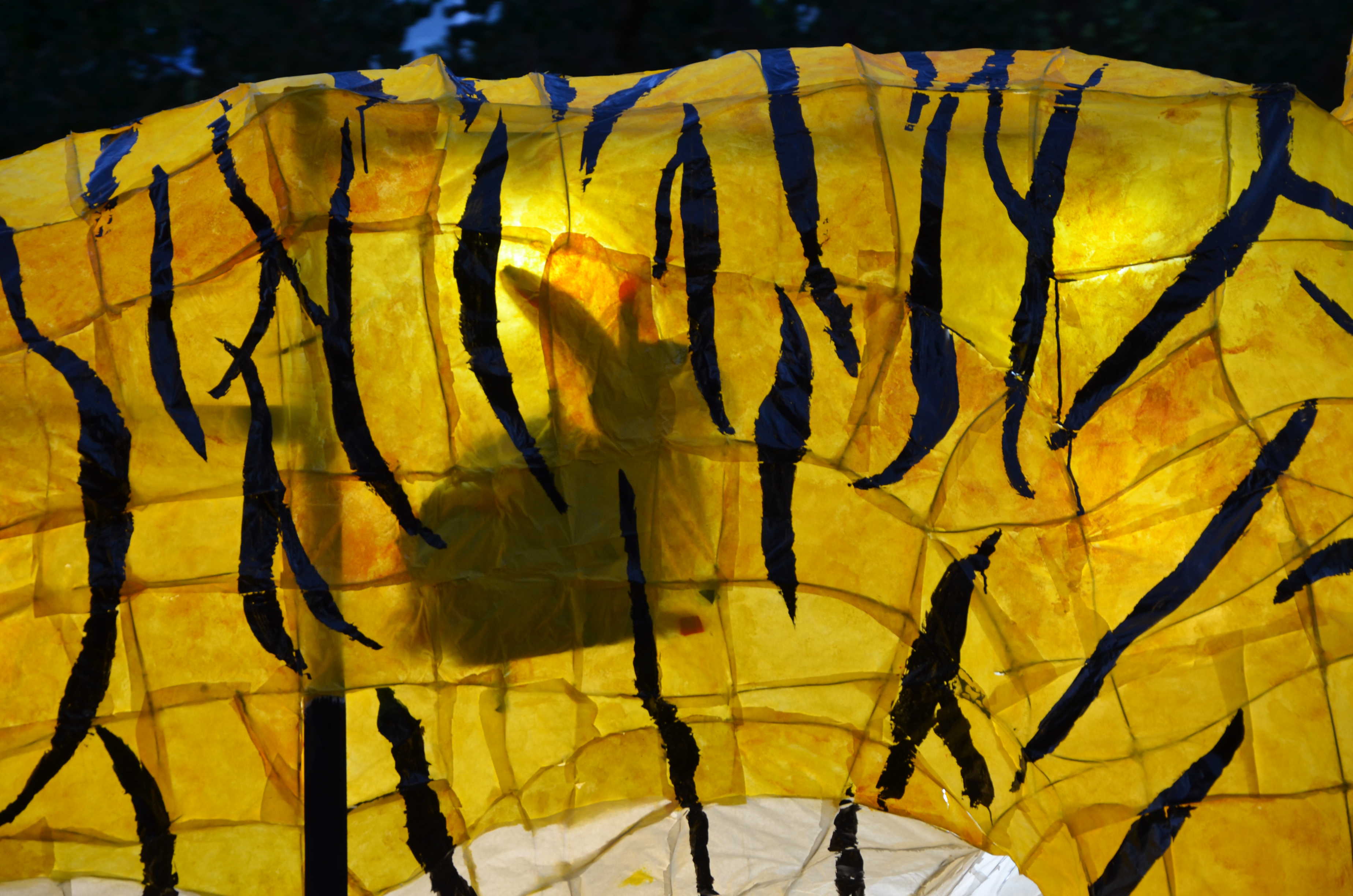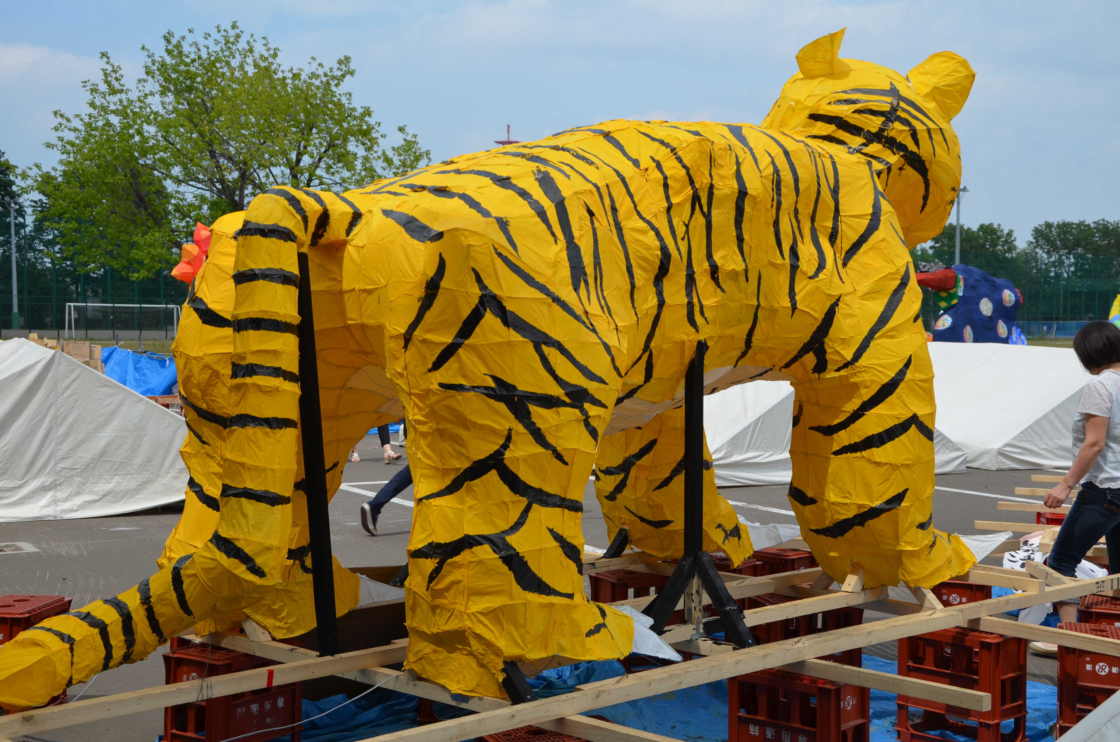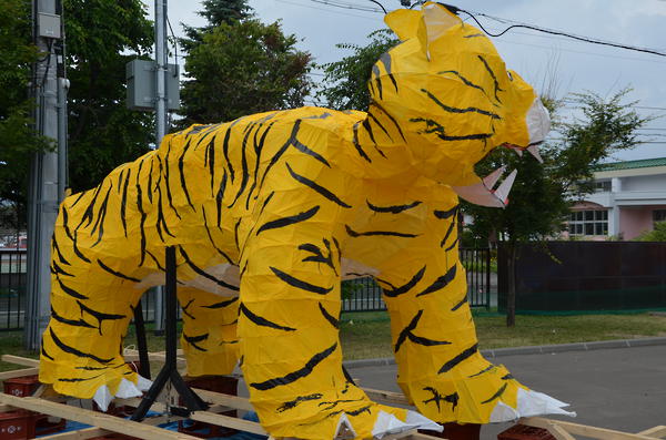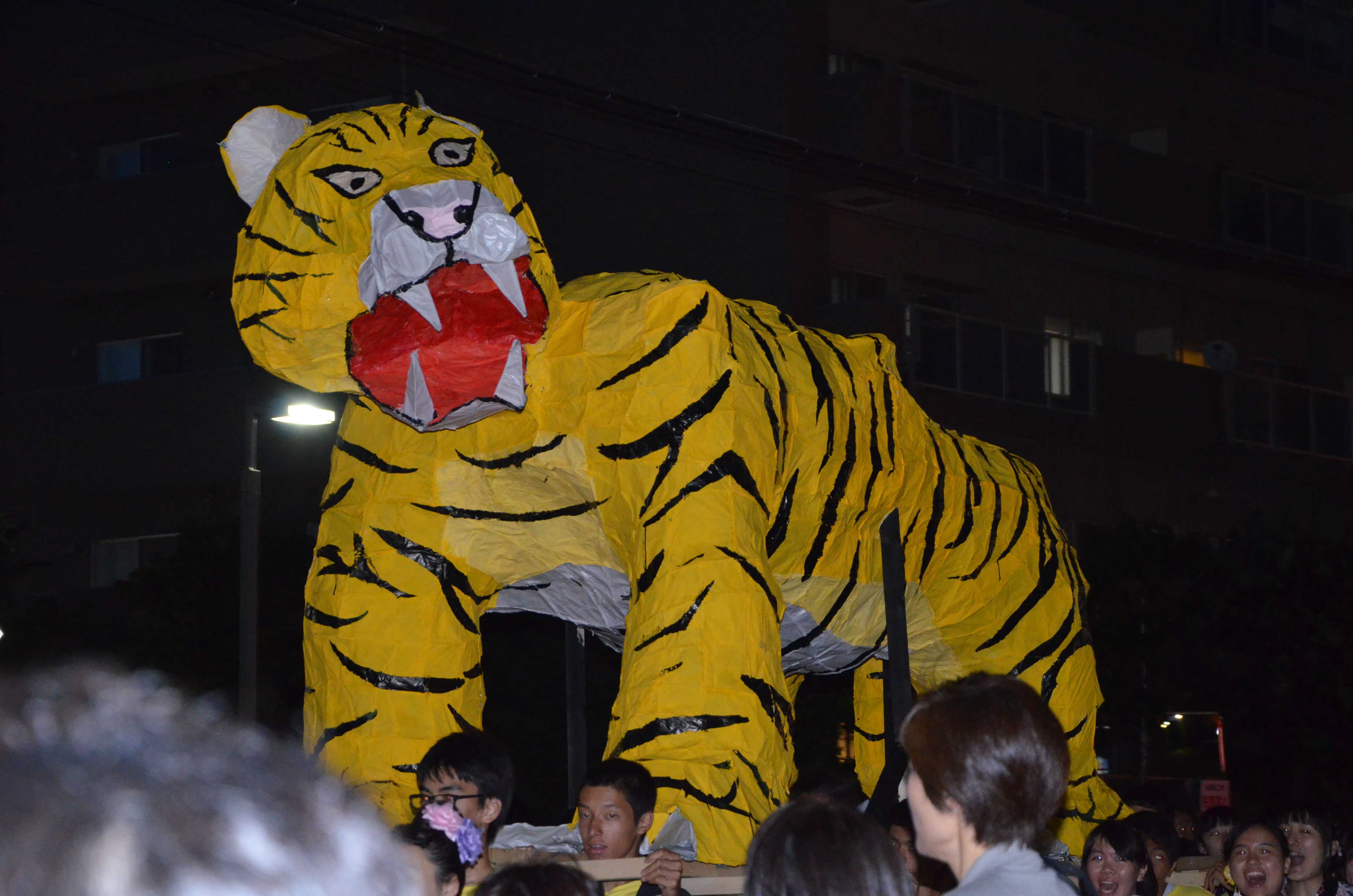 完全に下が空いている行灯を実際に見るのは初めてでした。虎の腹を作るとき上を向きながらやったのかな〜なんか落ちてきそうでこわいな〜とか想像してました。