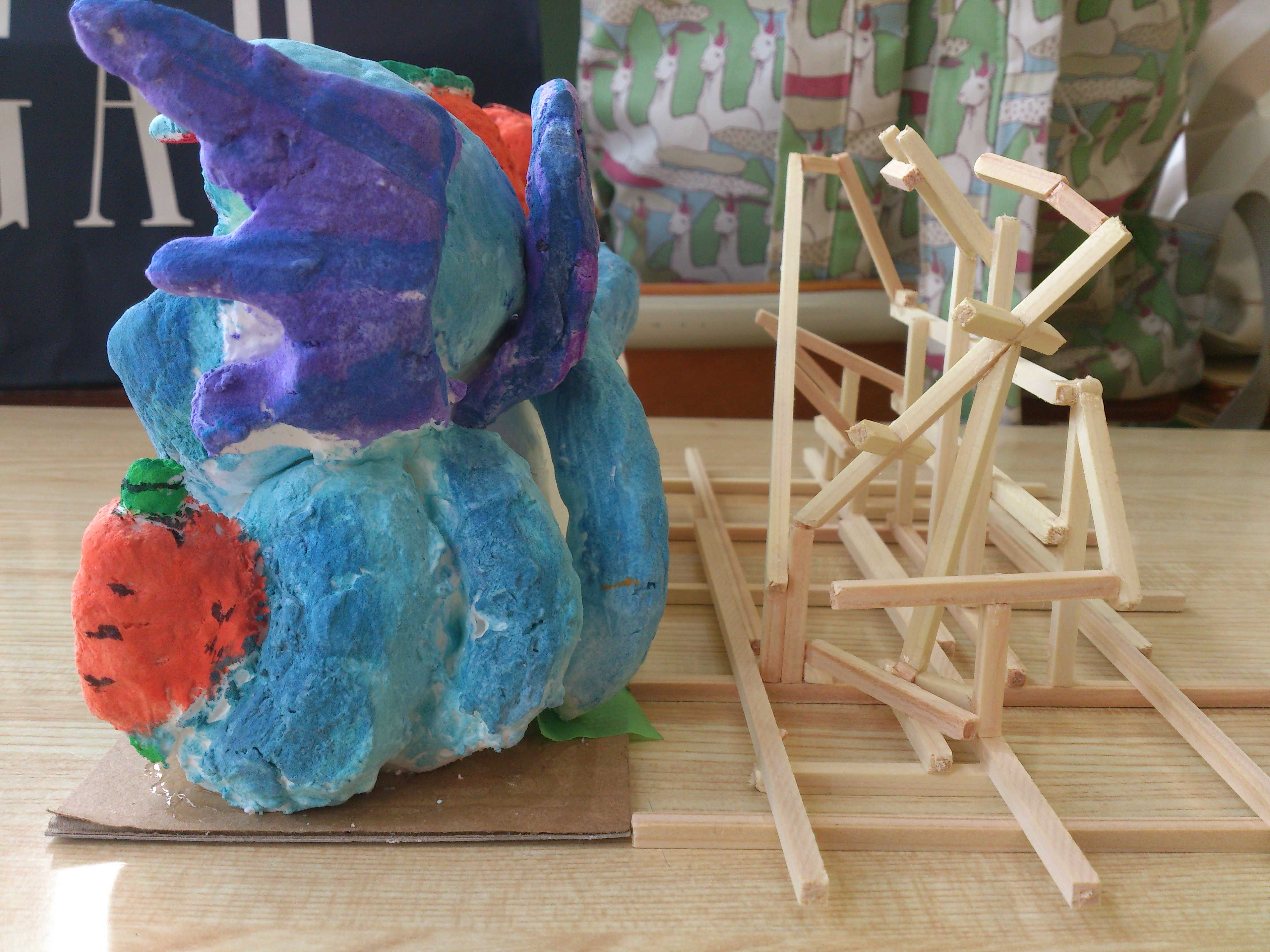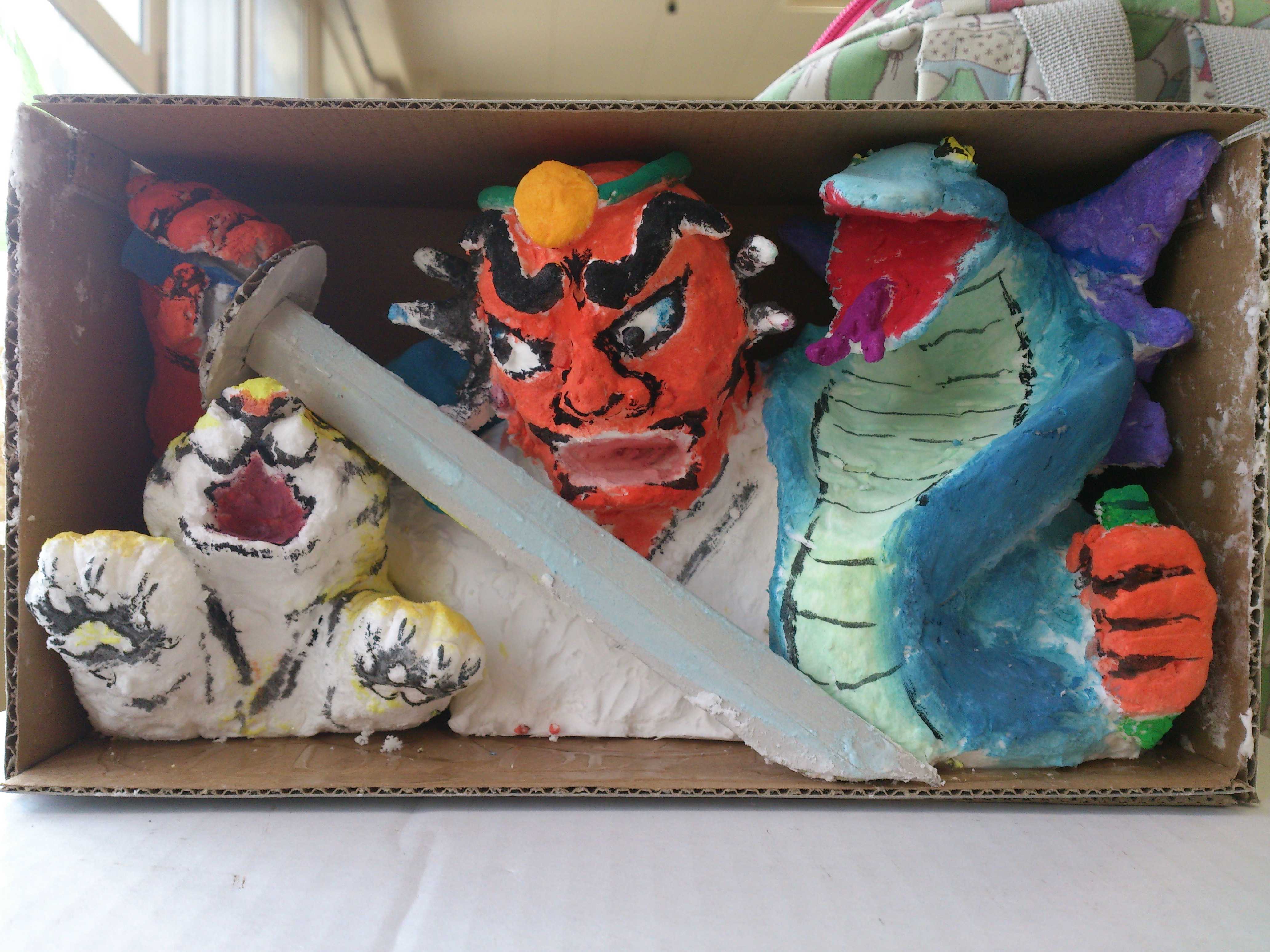 コブラの方は目が良かったです。不気味で狡猾な感じが表せていました。これから蛇を作るクラスはこの目を参考にして欲しいです。胴体の色は少し薄すぎて色が飛んでいて、翼との落差が大きかった気もしますが、綺麗でした。