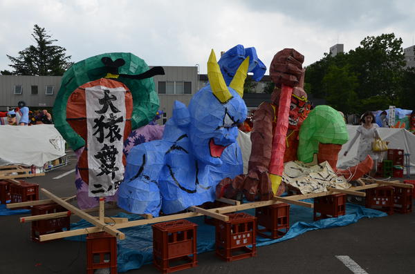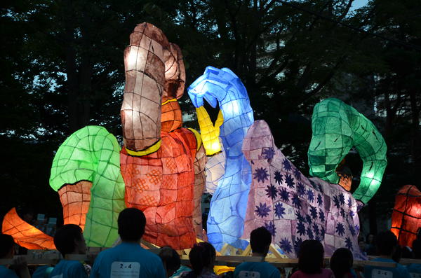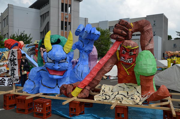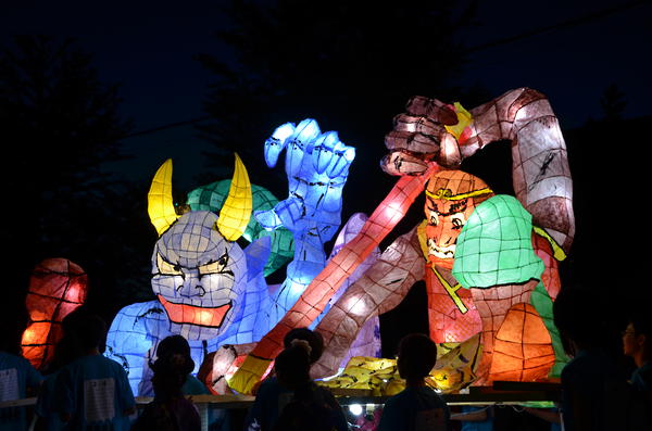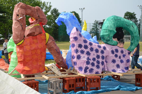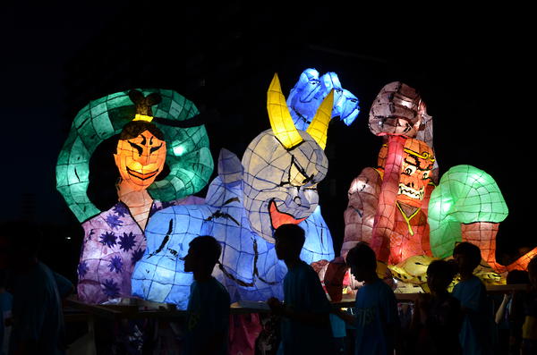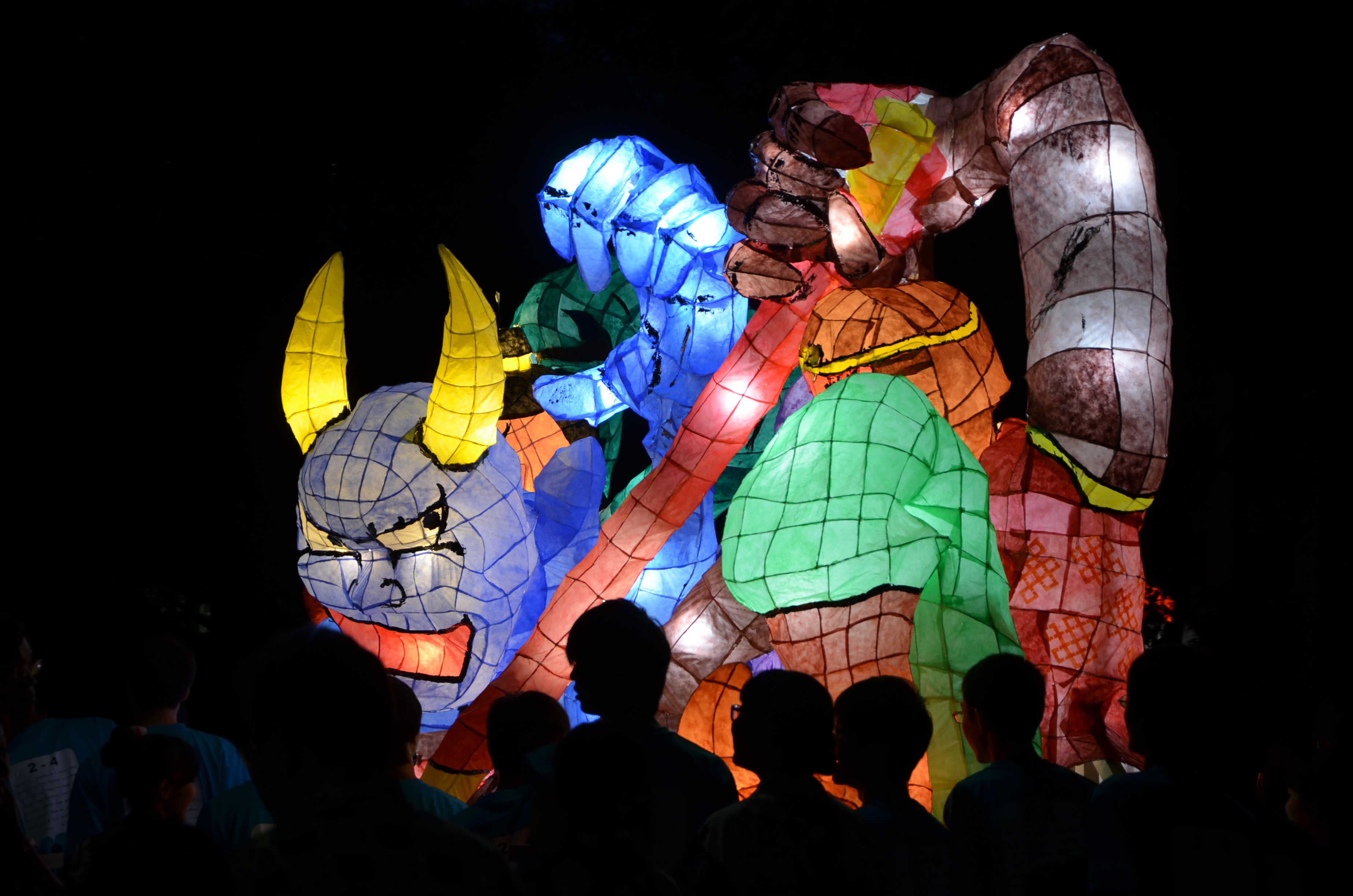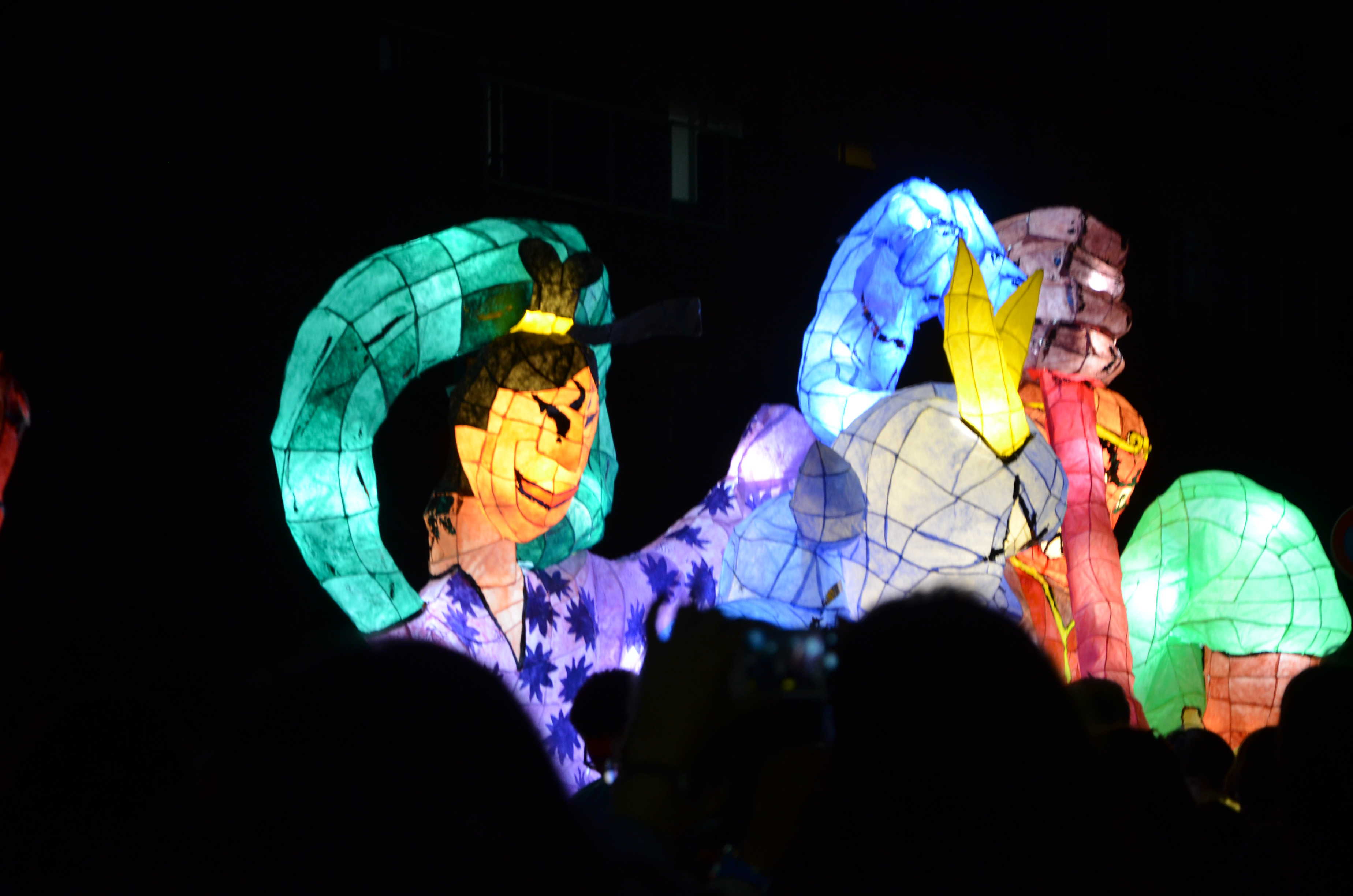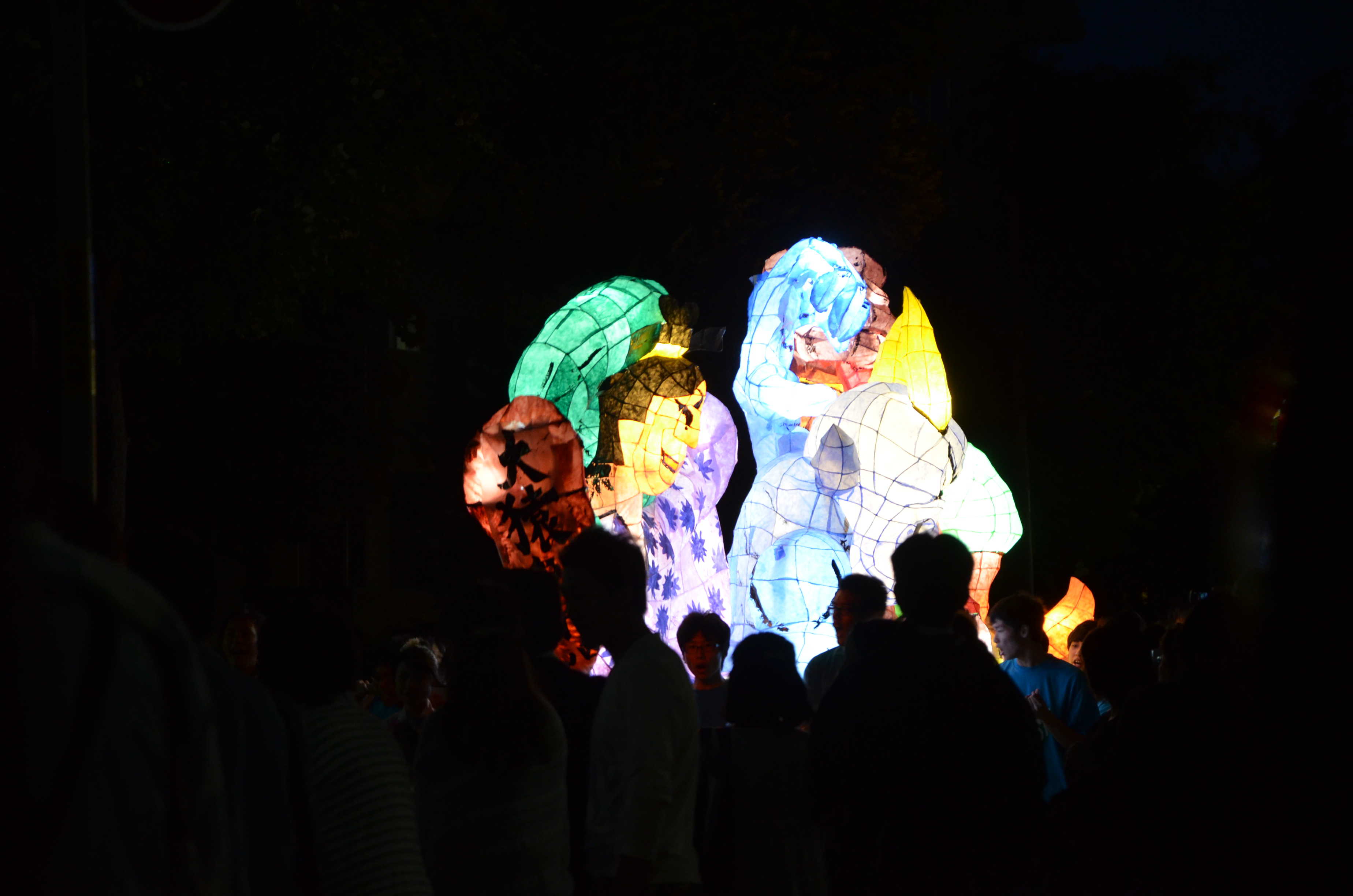 いろいろな色を使っており、3体それぞれの顔に個性があってにぎやかに見えました。また、手や足を動かして奥行きや勢いを表現しているのは良い点だと思うので、それをしつつ隙間が埋まればよりよい行灯になったと思います。棒立ちから動かすと隙間ができ、それを埋めると複雑でぱっと見なにかわからなくなり…と構図の検討はなかなか難しいですが、これがうまくいくと完成したときの見栄えだけでなく、作業そのものもしやすくなったりします。