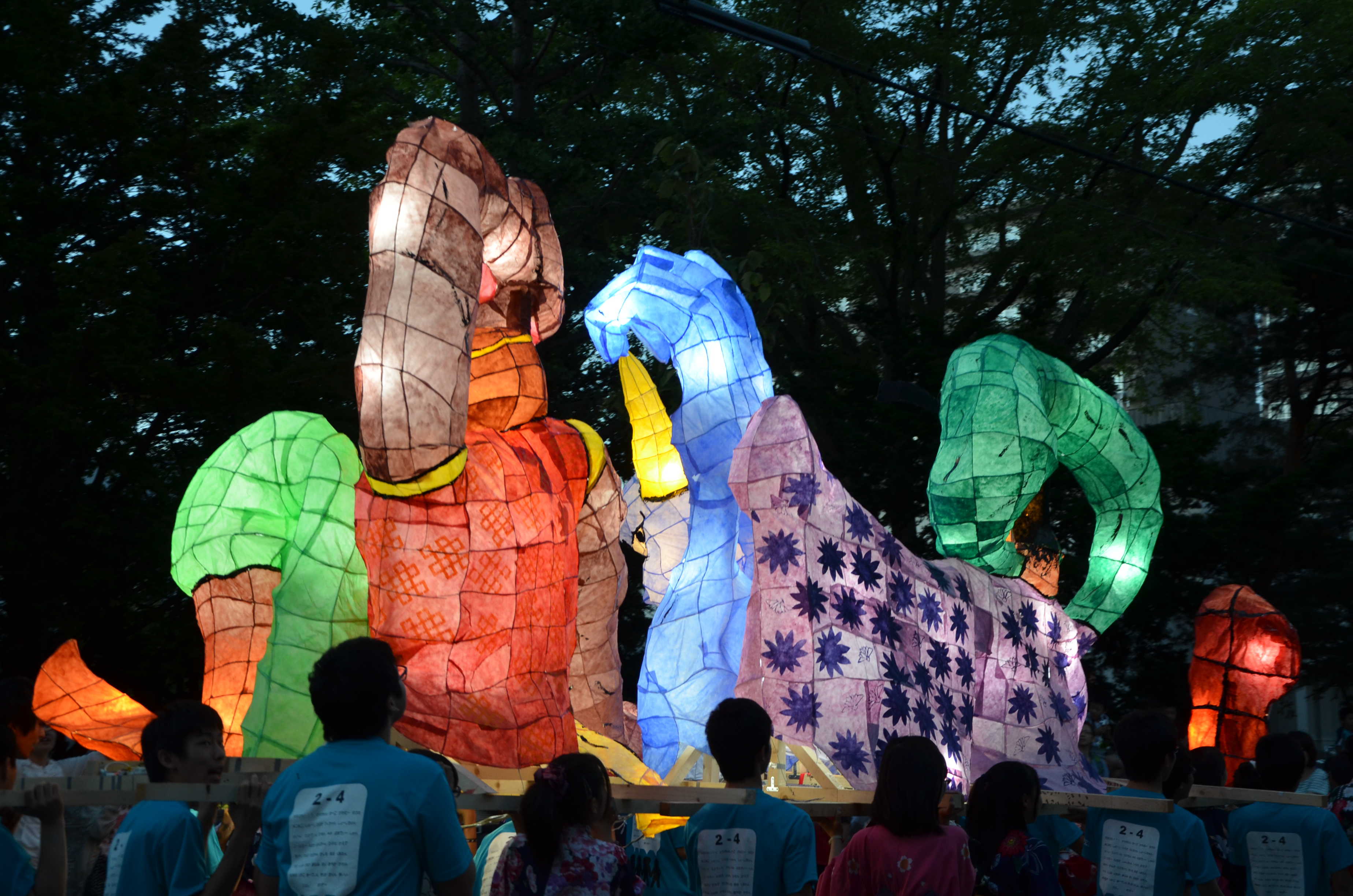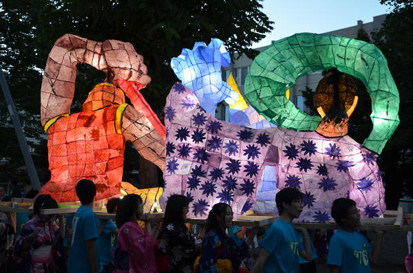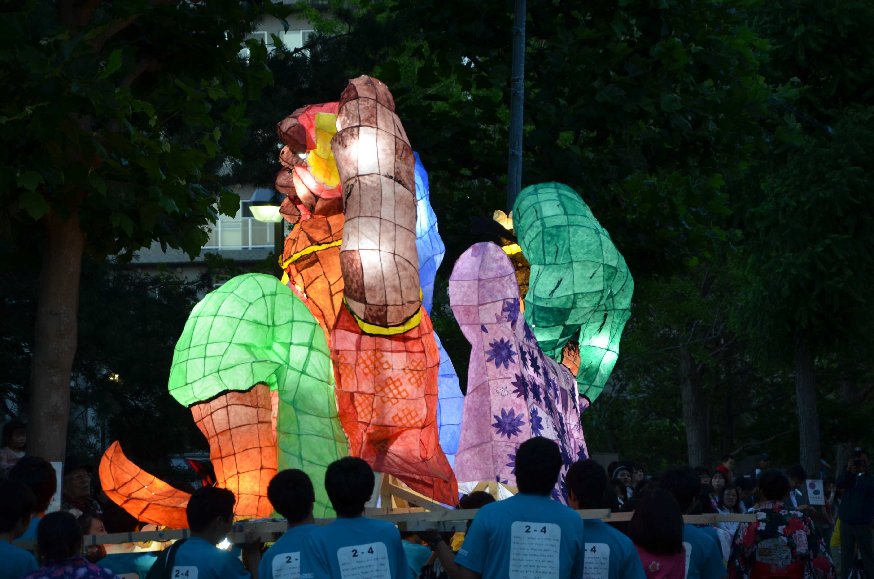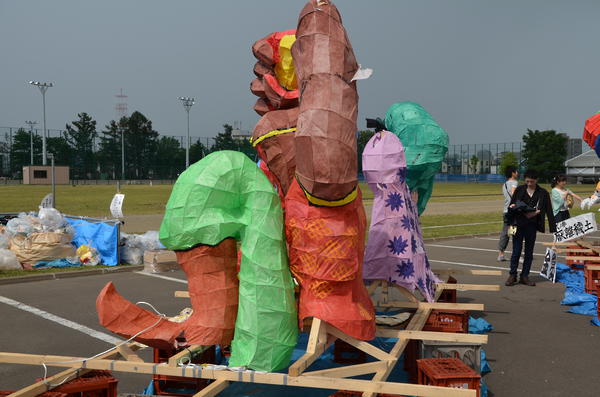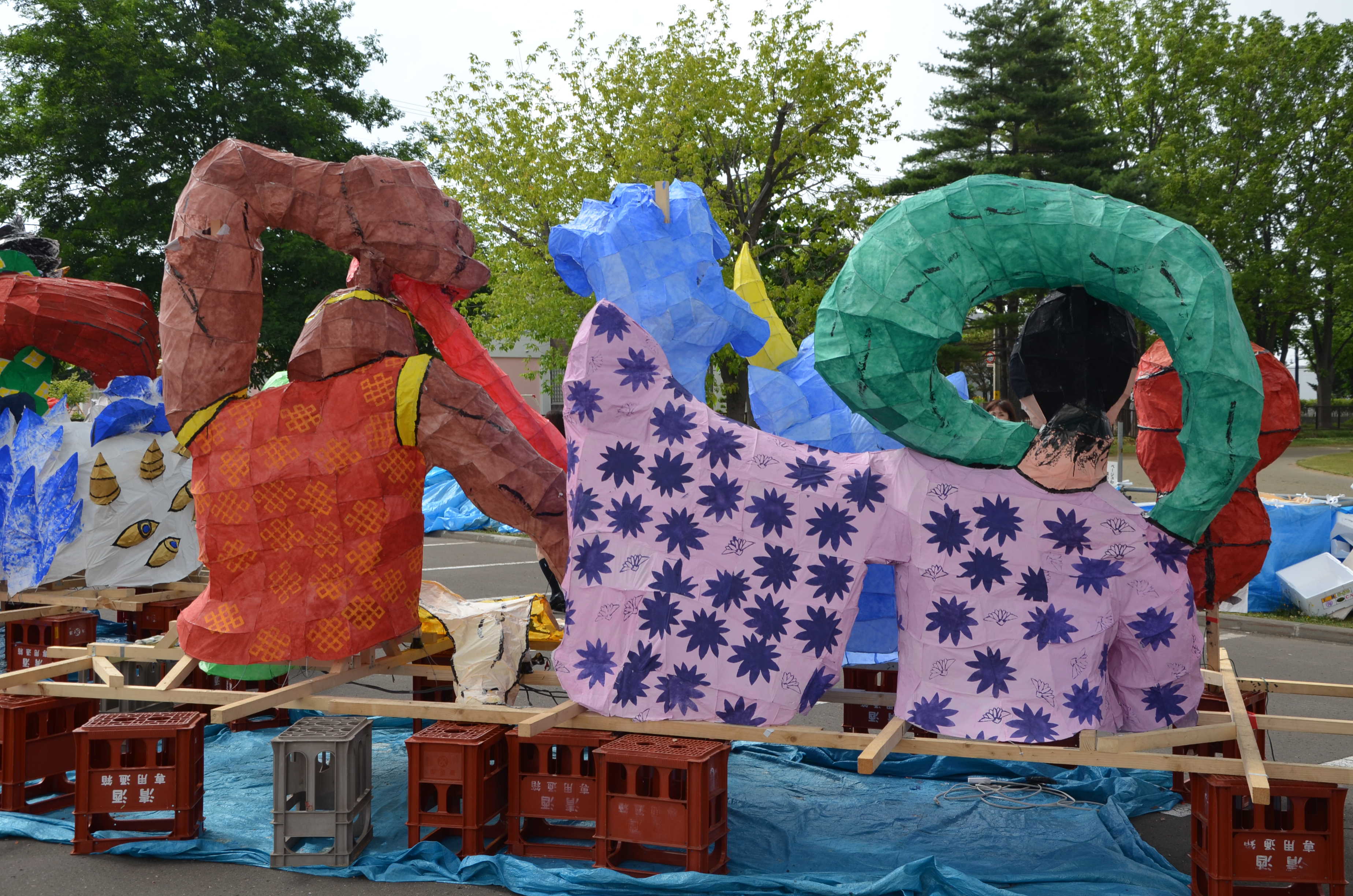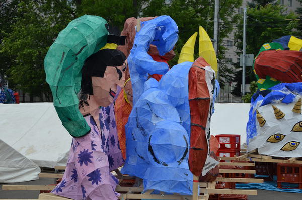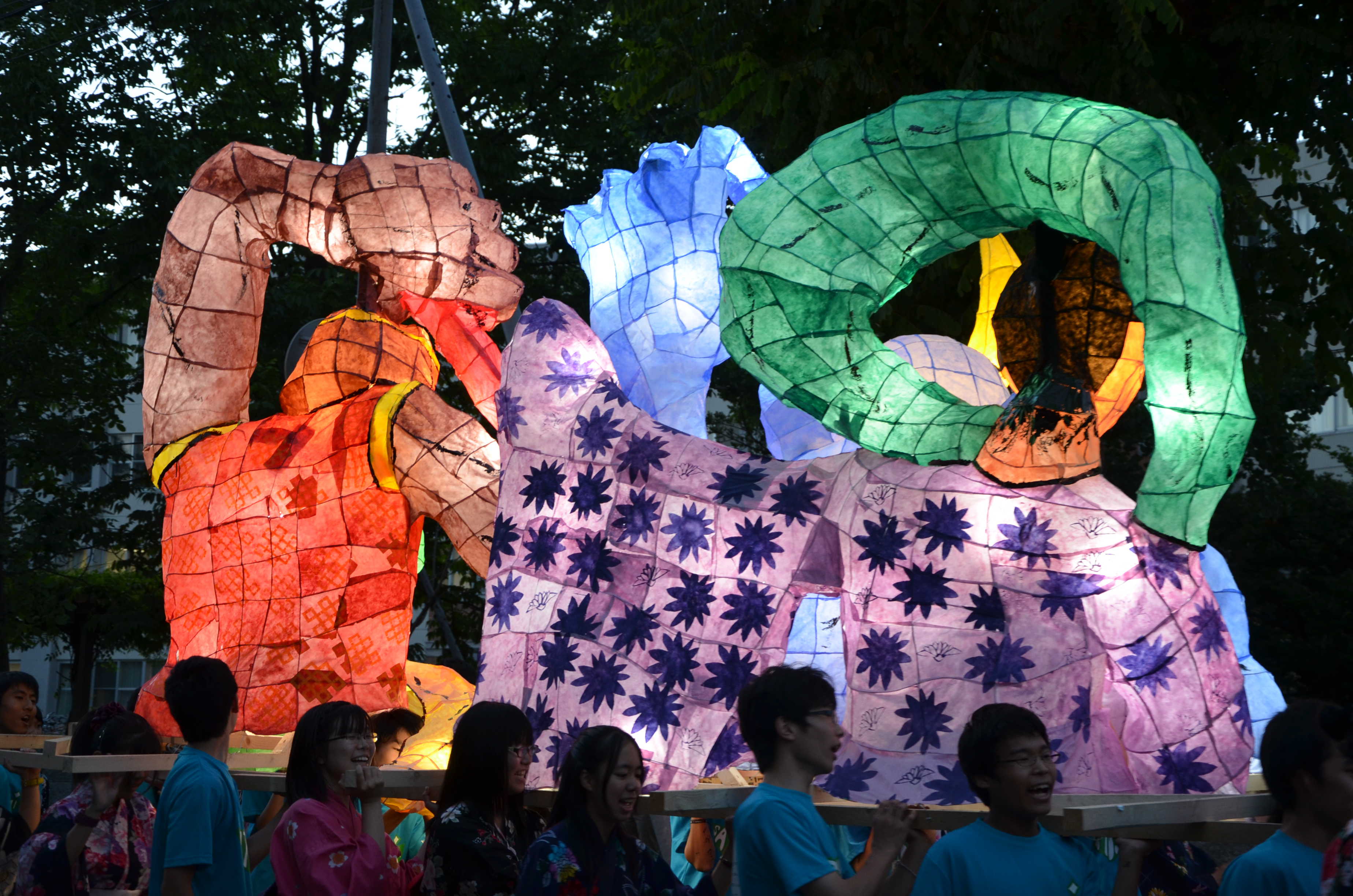 いろいろな色を使っており、3体それぞれの顔に個性があってにぎやかに見えました。また、手や足を動かして奥行きや勢いを表現しているのは良い点だと思うので、それをしつつ隙間が埋まればよりよい行灯になったと思います。棒立ちから動かすと隙間ができ、それを埋めると複雑でぱっと見なにかわからなくなり…と構図の検討はなかなか難しいですが、これがうまくいくと完成したときの見栄えだけでなく、作業そのものもしやすくなったりします。