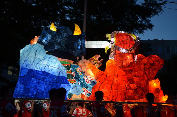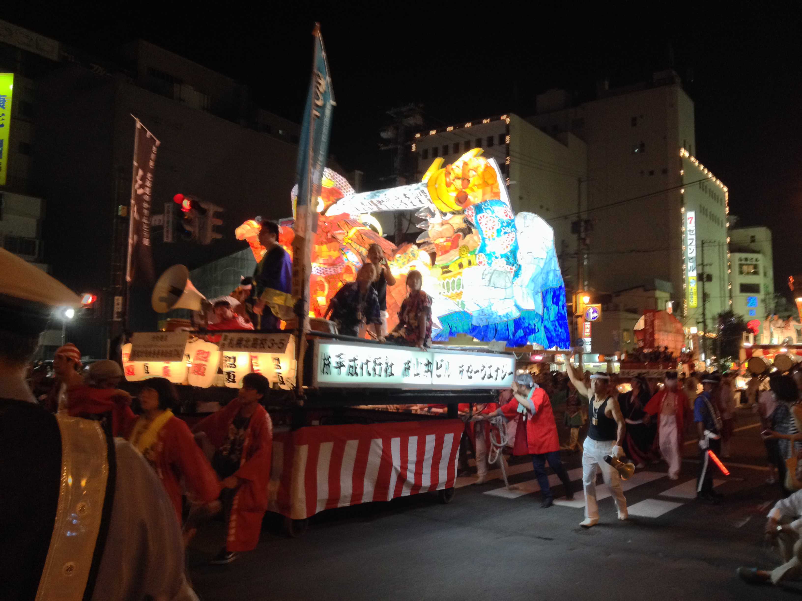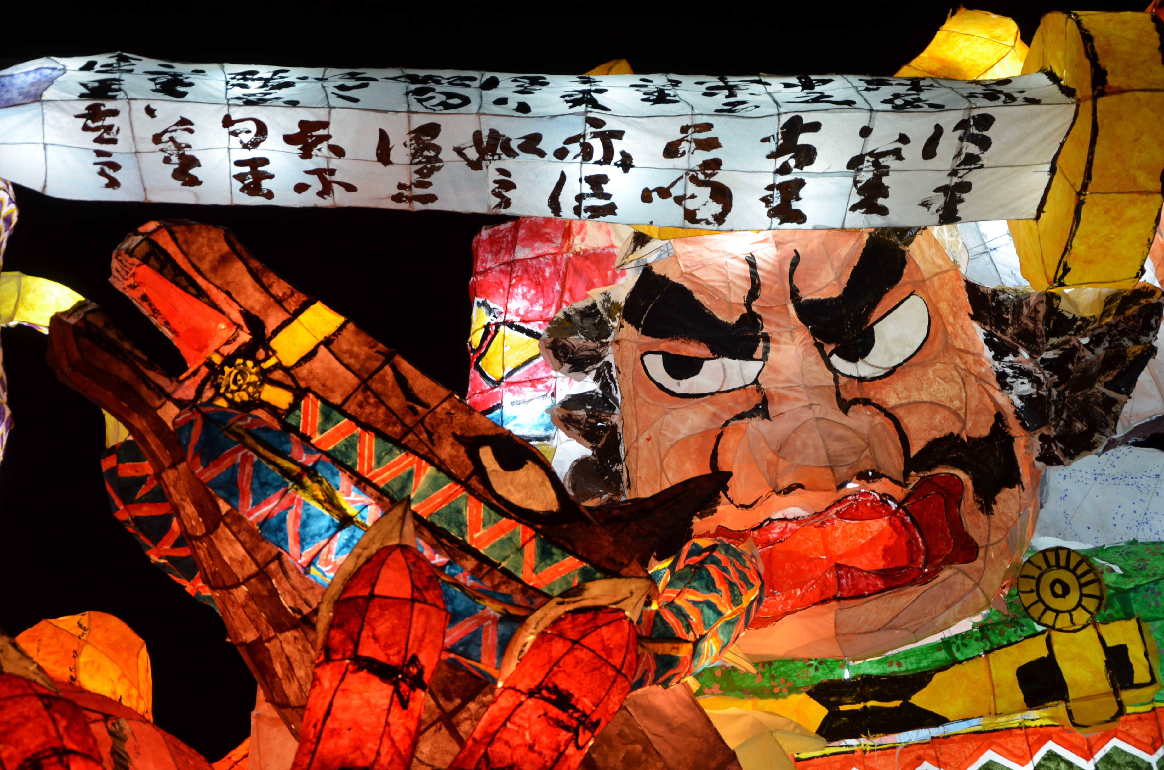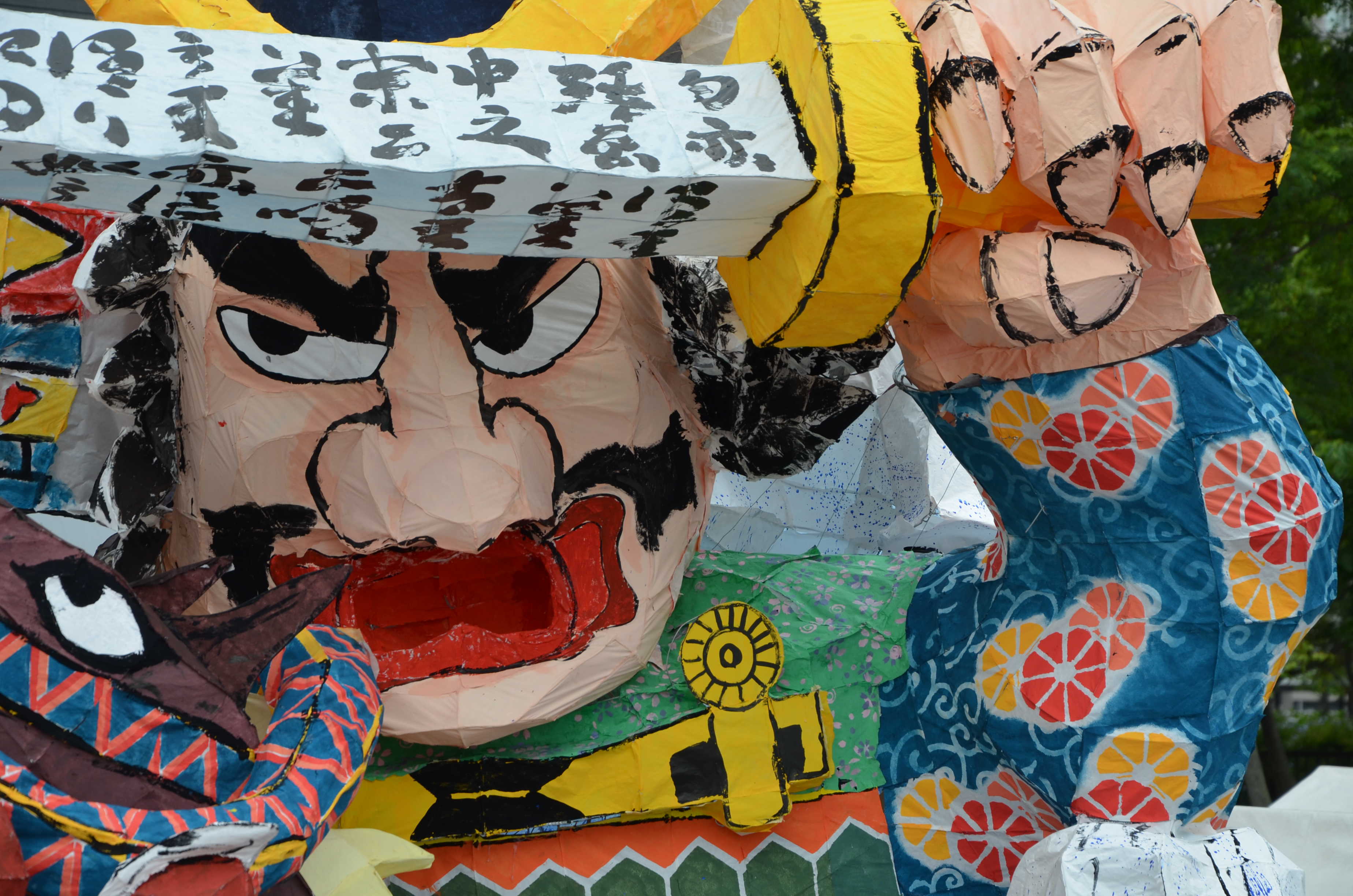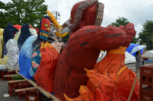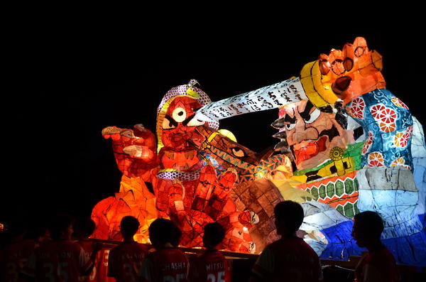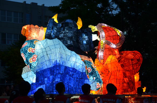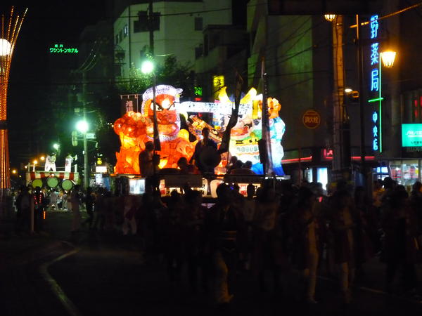 カラフルな行灯で、最もねぶたっぽかったと思います。柄も上手く、今年一番かなと思います。特に人の腕、馬の手綱、鬼に顔に巻きついた蛇の柄が良かったです。