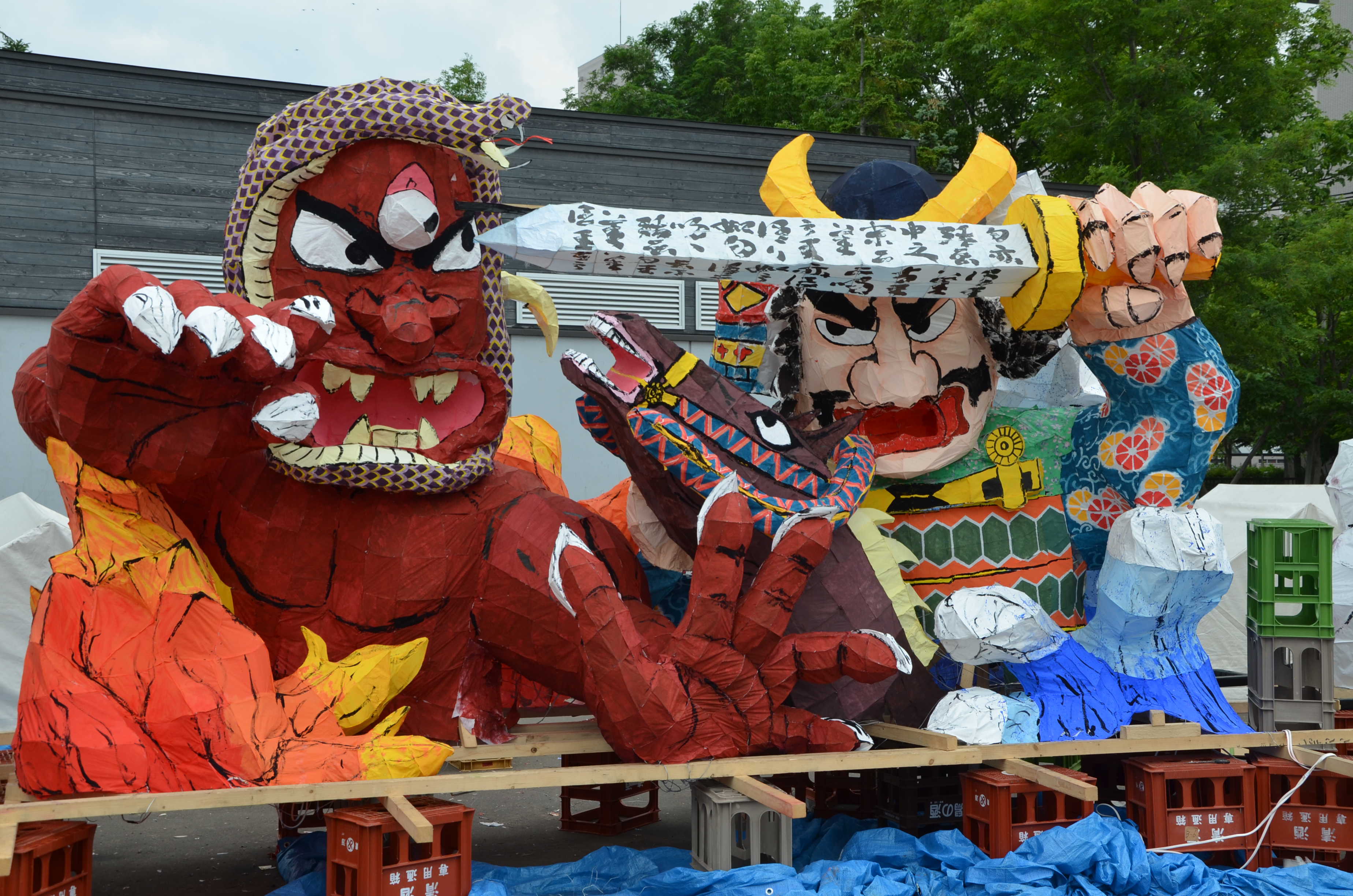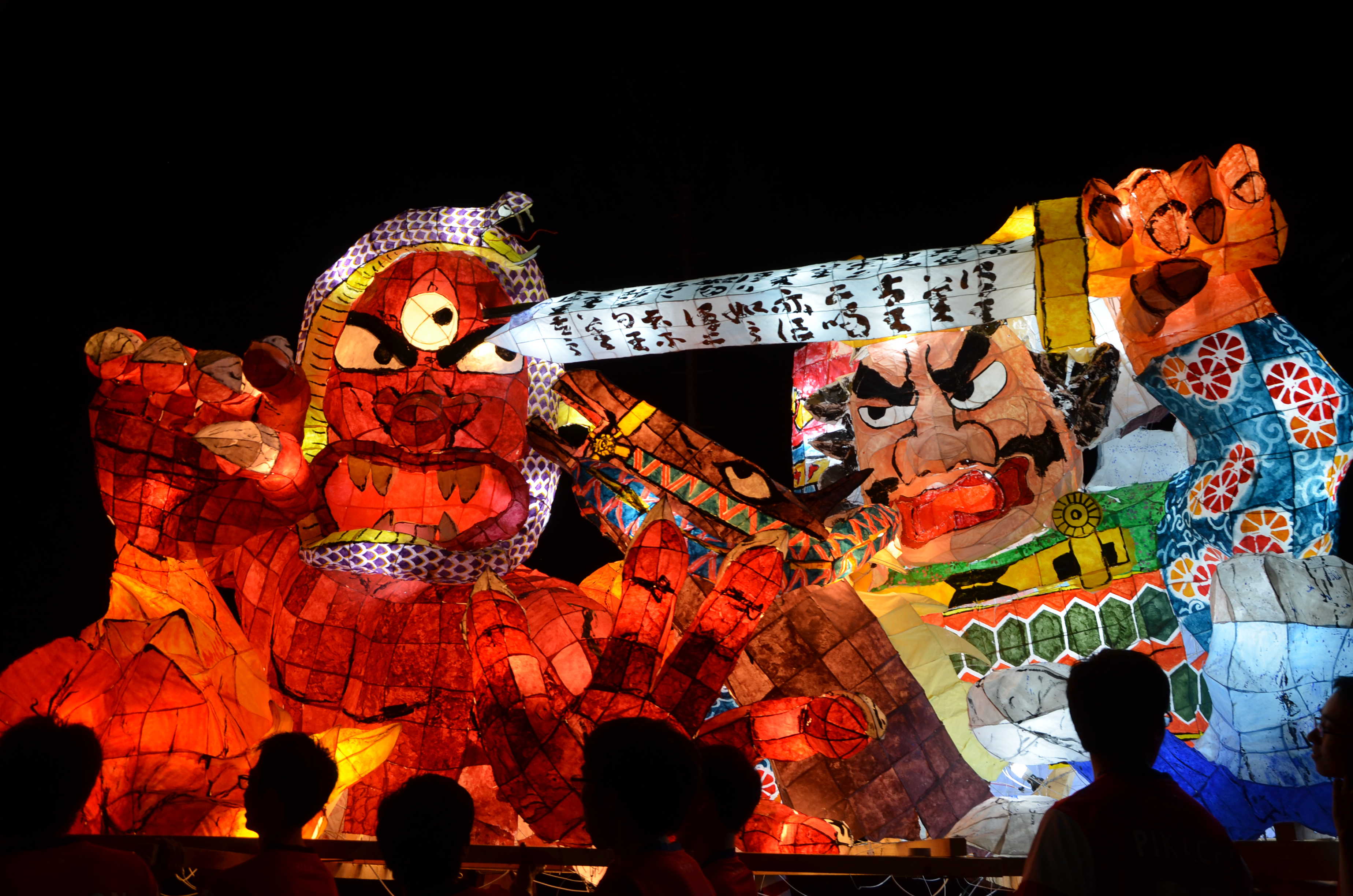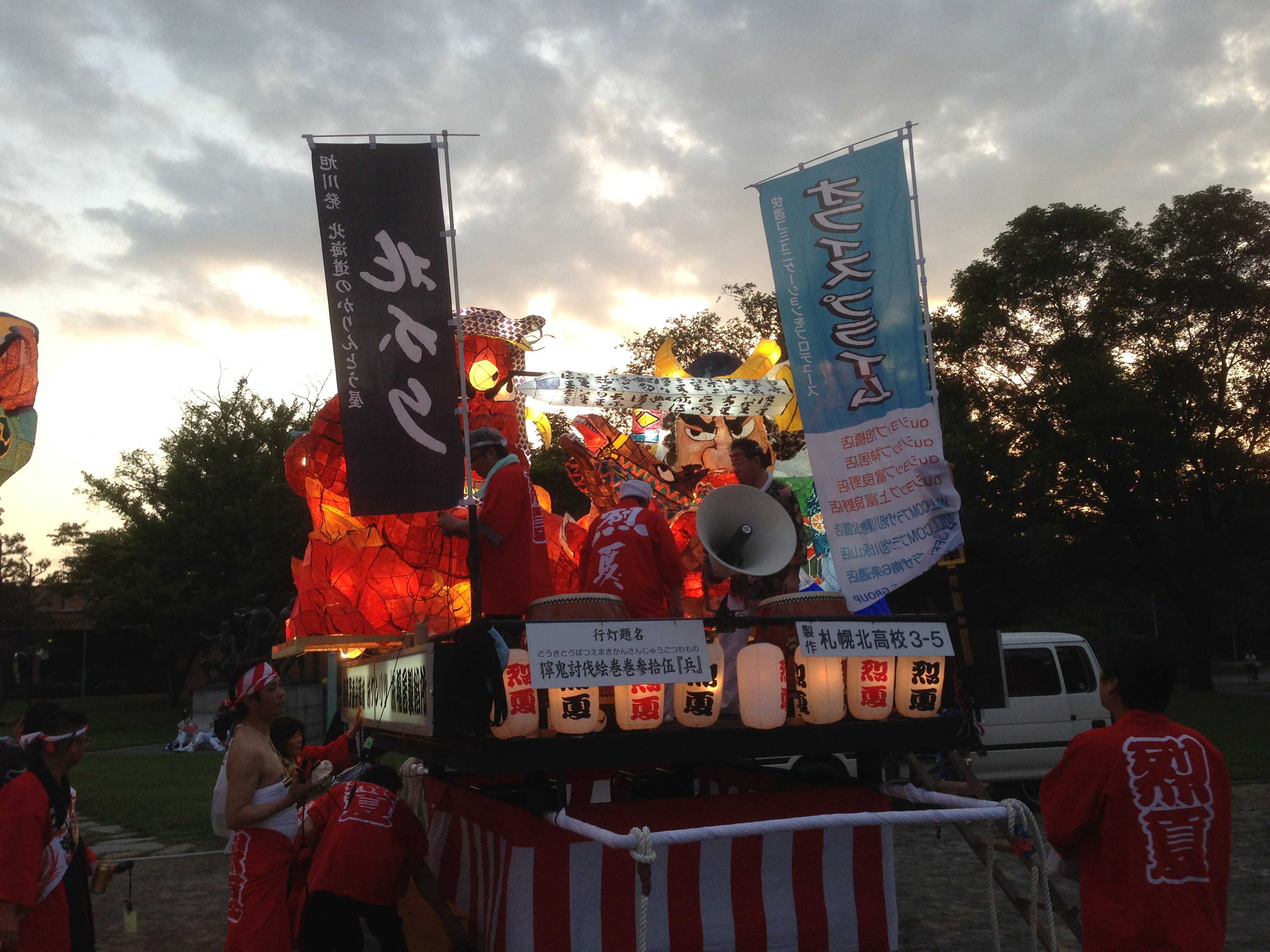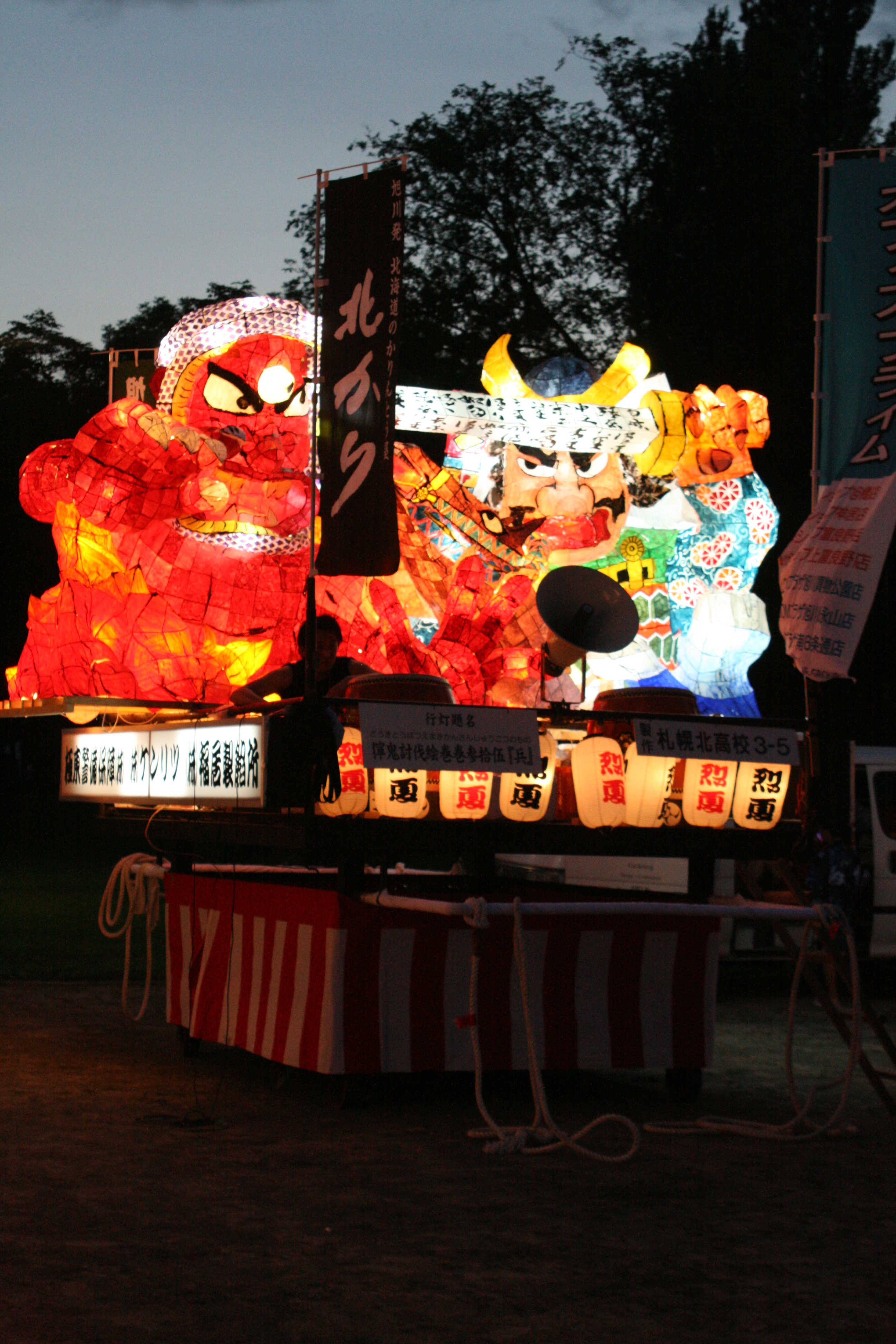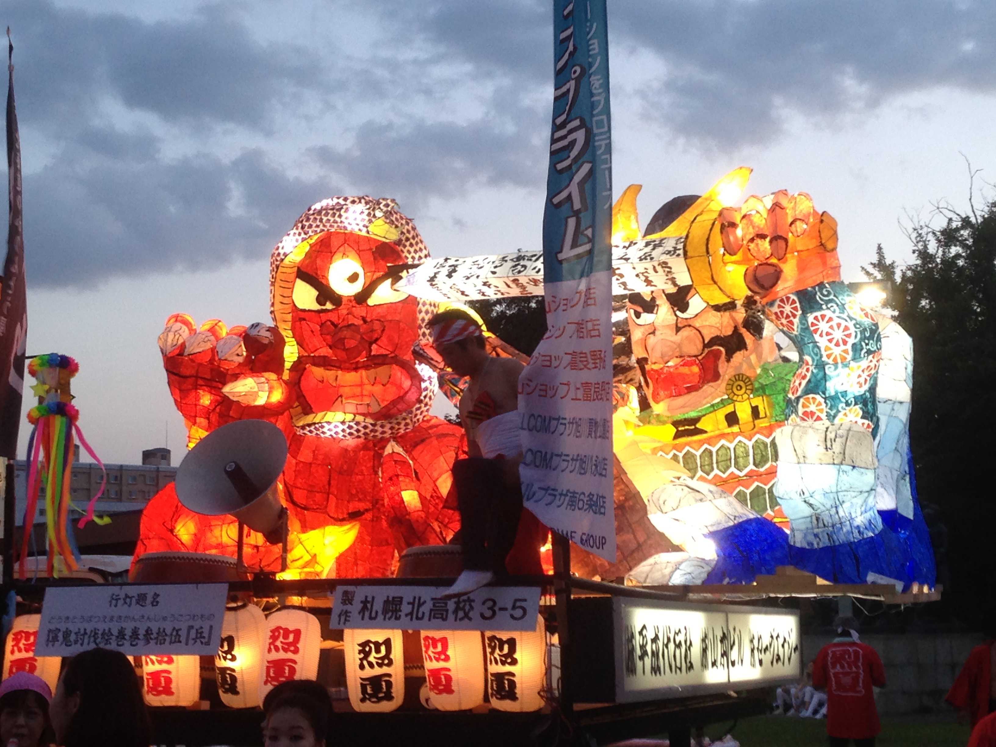 カラフルな行灯で、最もねぶたっぽかったと思います。柄も上手く、今年一番かなと思います。特に人の腕、馬の手綱、鬼に顔に巻きついた蛇の柄が良かったです。