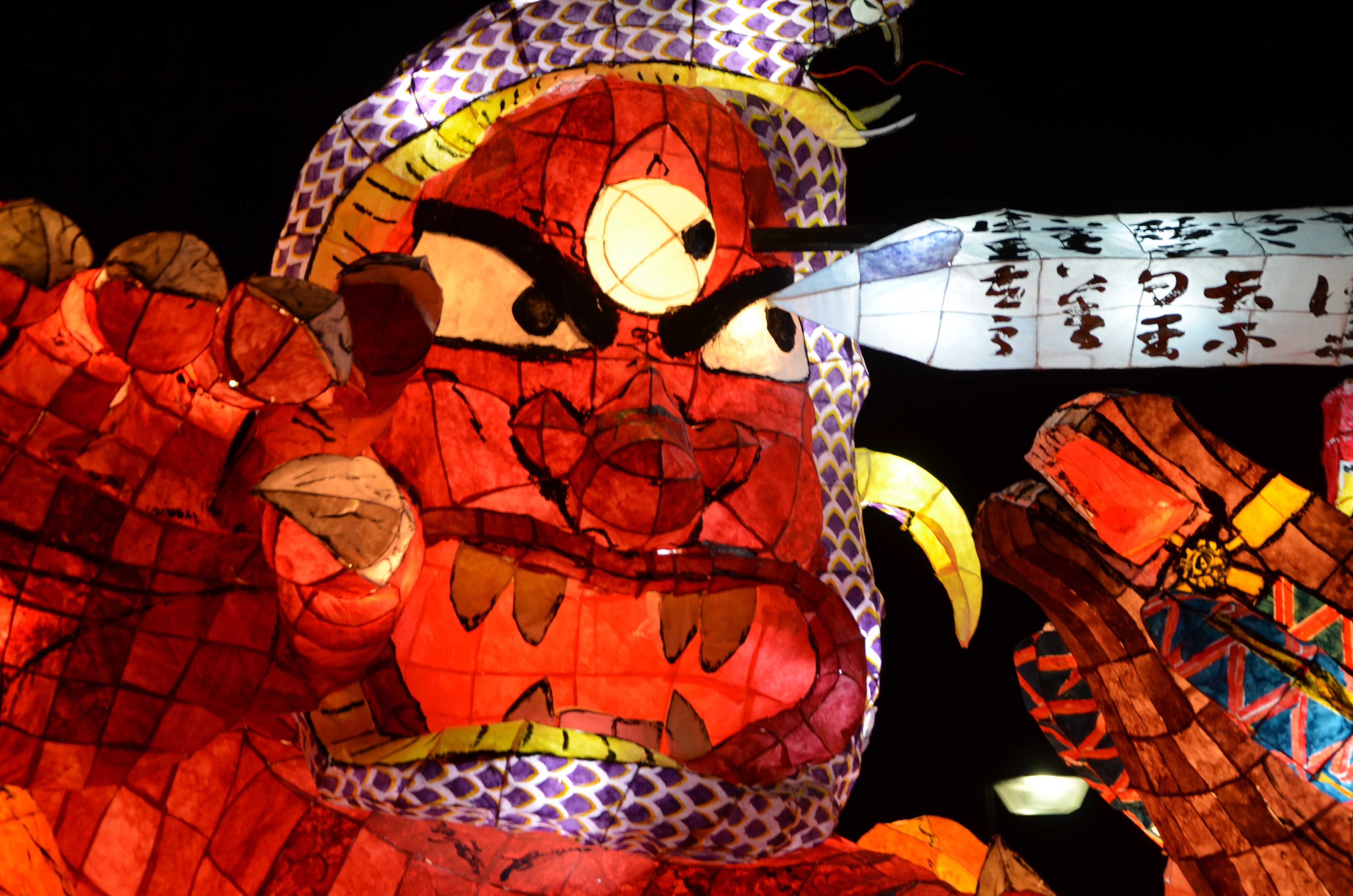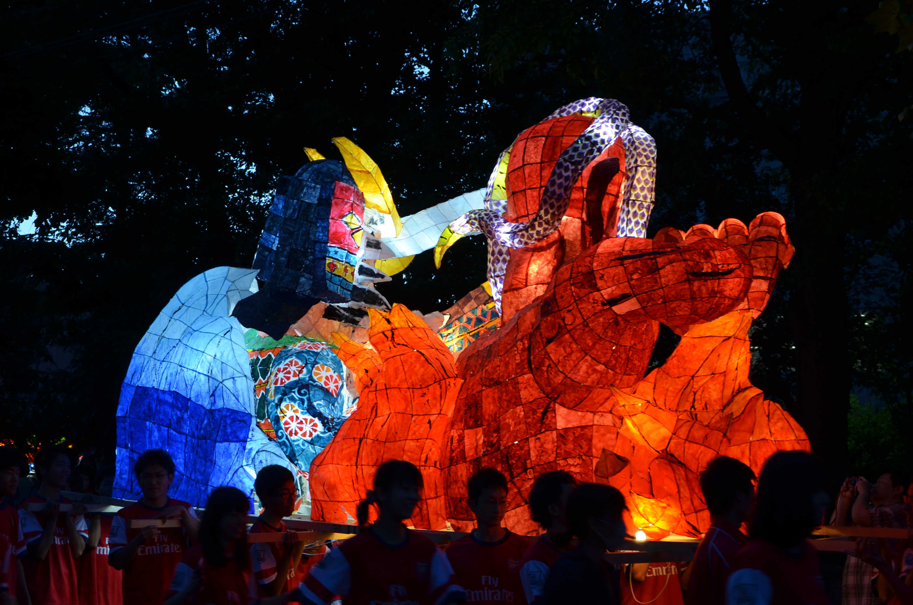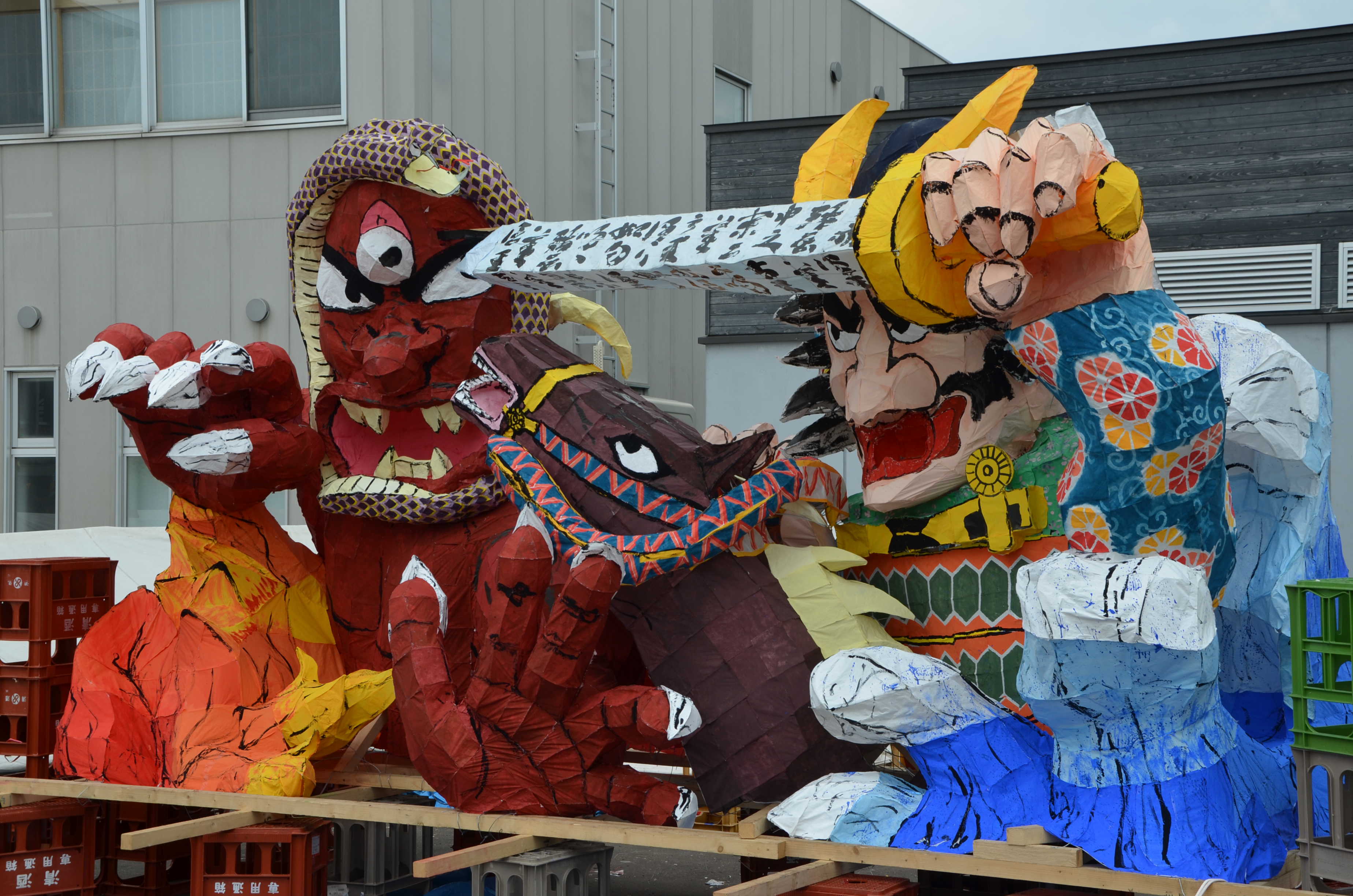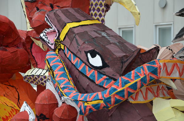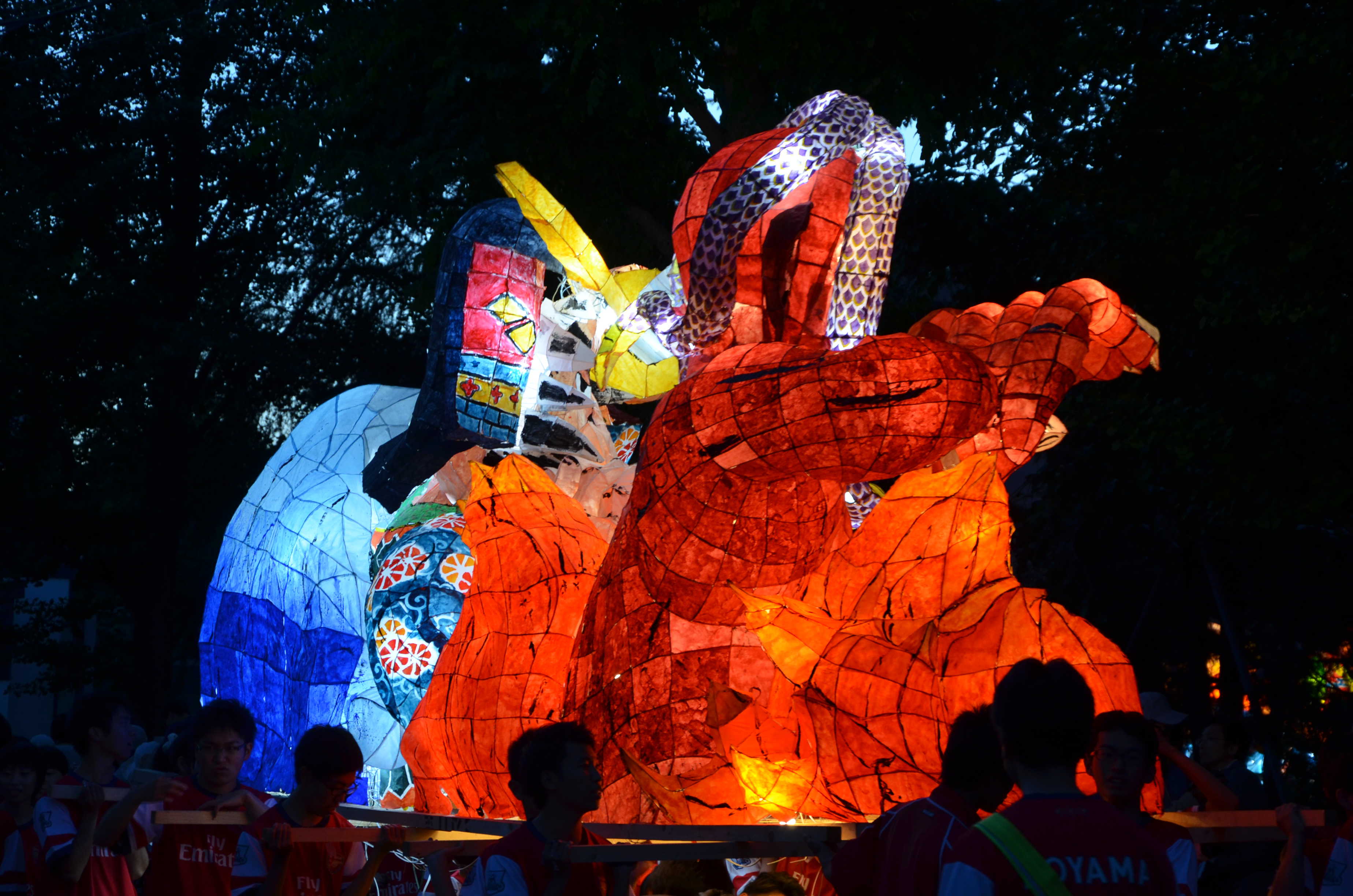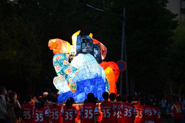 カラフルな行灯で、最もねぶたっぽかったと思います。柄も上手く、今年一番かなと思います。特に人の腕、馬の手綱、鬼に顔に巻きついた蛇の柄が良かったです。