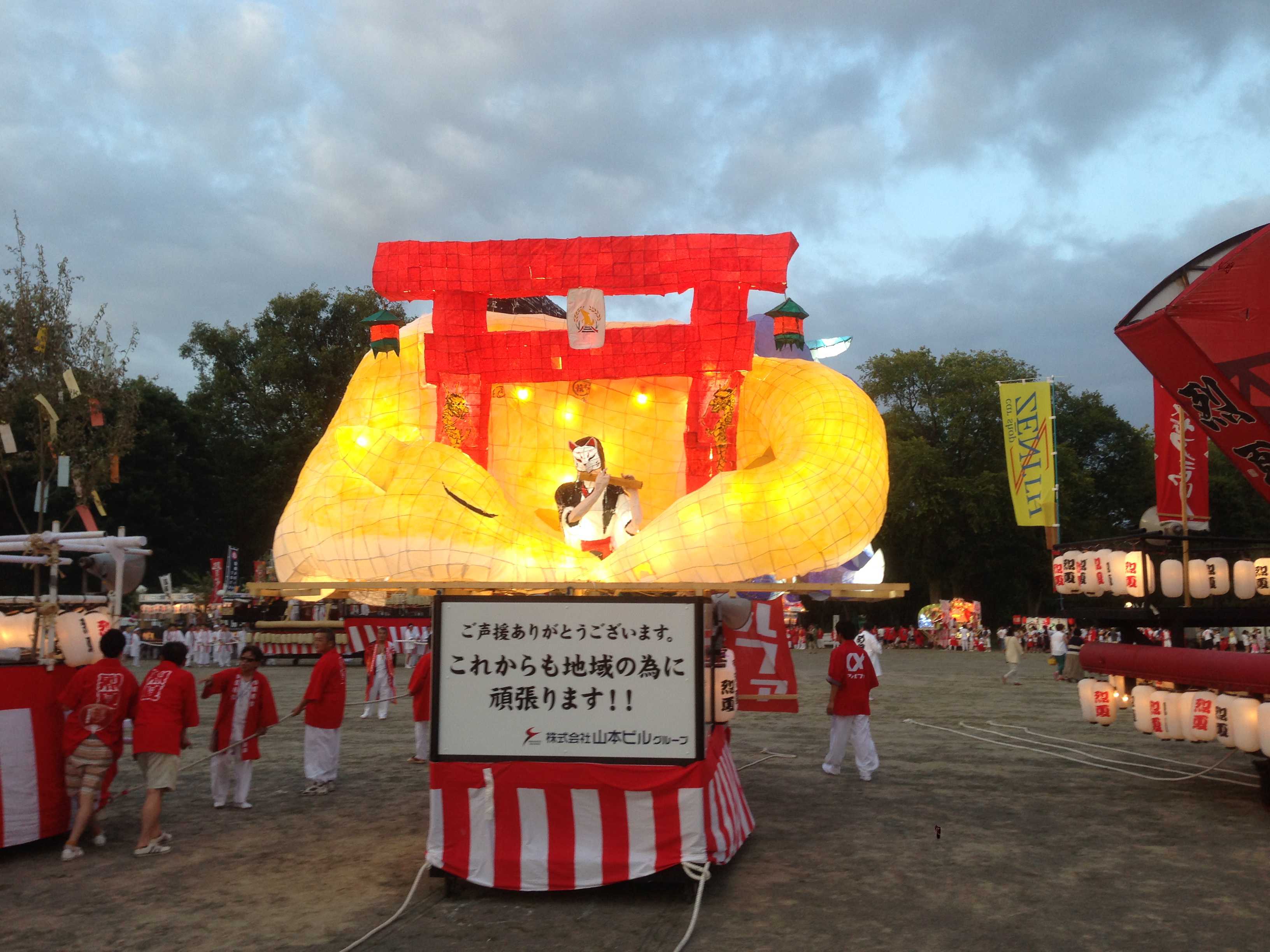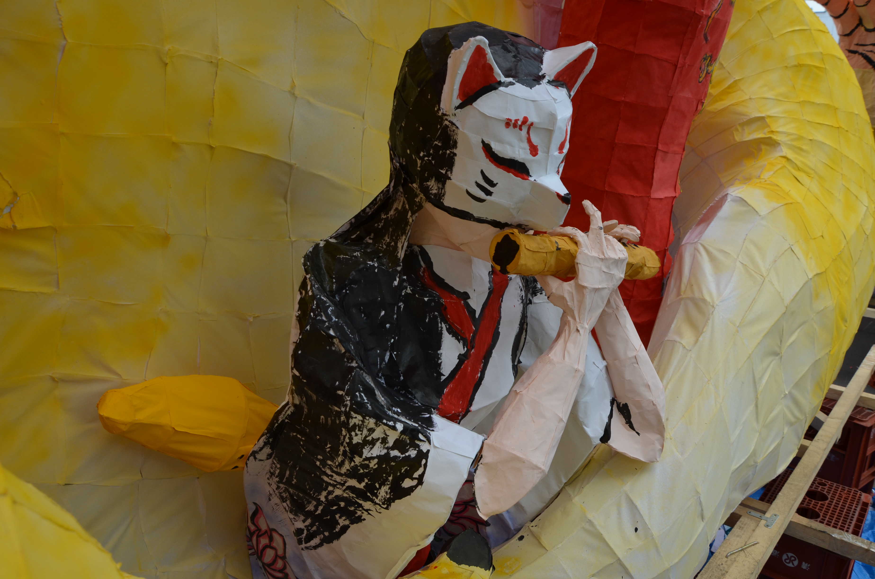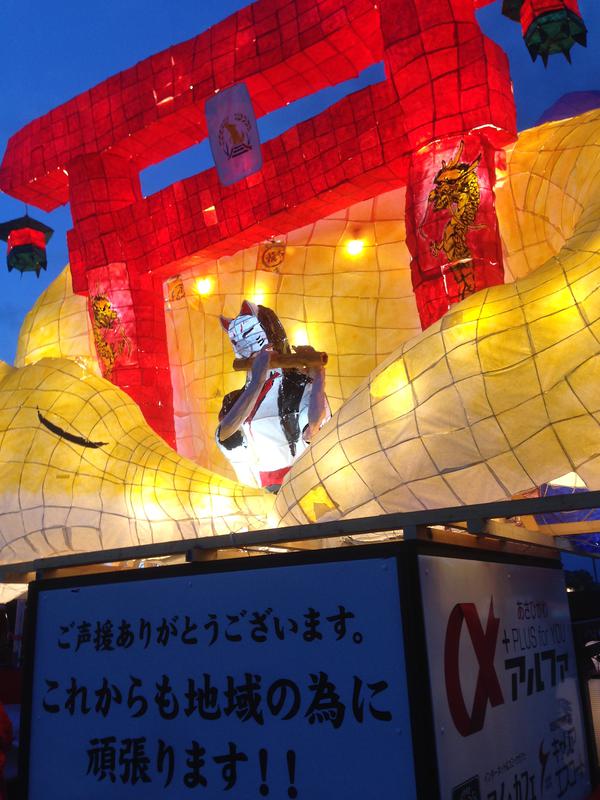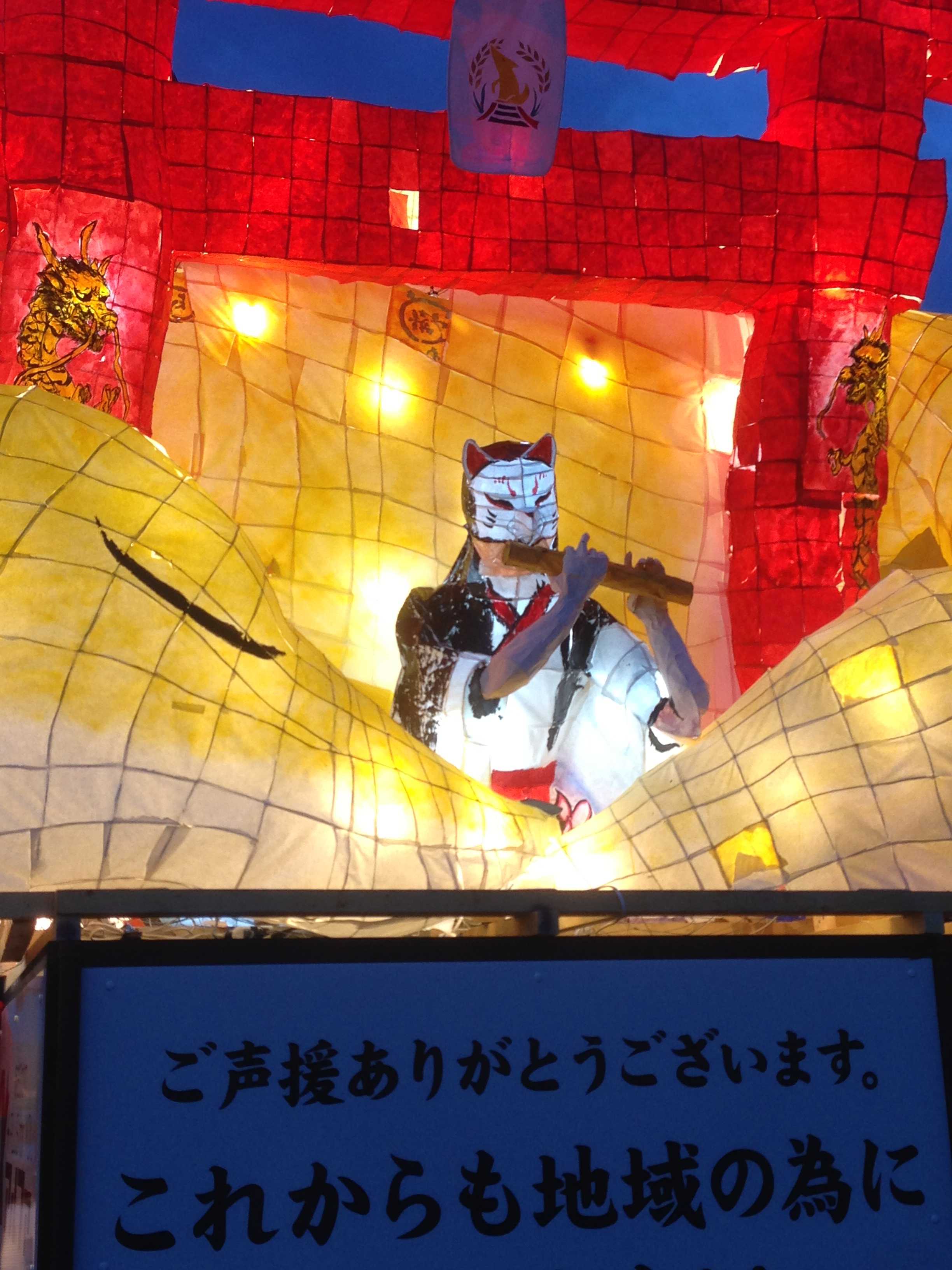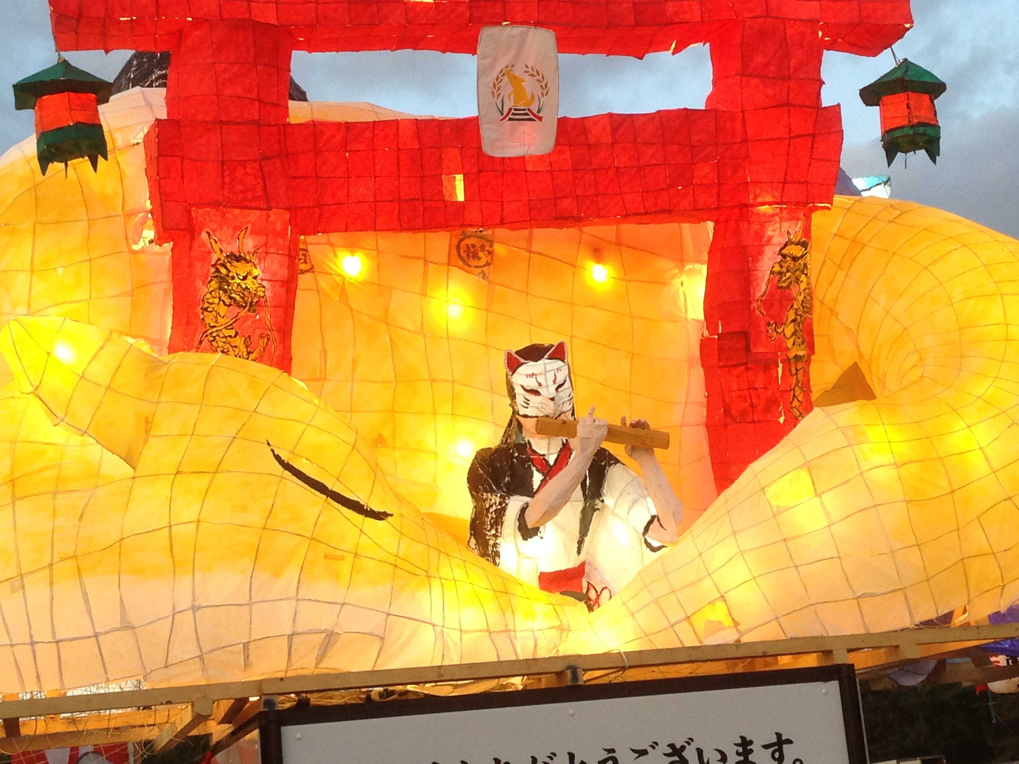 表側の狐の色と、顔をもうちょっと余裕を持ってつけることができたら、なんらかの賞は受賞していたんじゃないでしょうか。 でも記録ではなく記憶に残る行灯を作ってくれたと思います。ありがとうございました。